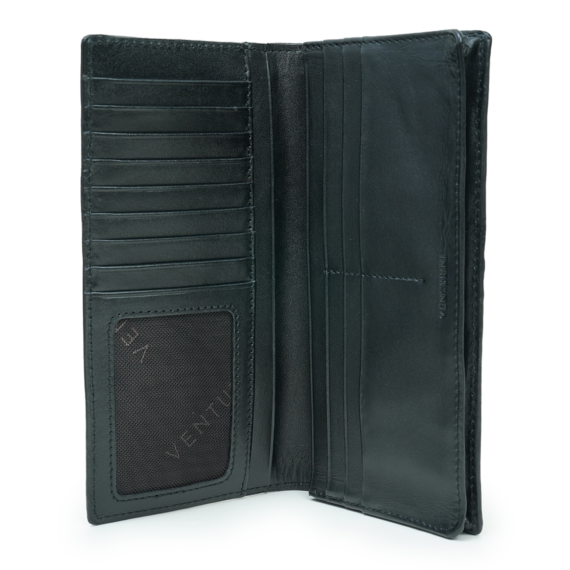 Venturini Men's Black Genuine Leather Long Wallet is crafted for men who value refined luxury and organized functionality. Made from high-quality genuine leather with a rich textured finish, this wallet reflects Venturini’s commitment to superior craftsmanship and timeless style. The sleek long design offers generous storage with multiple card slots, a clear ID window, and spacious bill compartments to keep essentials neatly arranged. Its classic black color enhances versatility, making it suitable for both professional and everyday use. Elegant yet practical, this Venturini leather long wallet is designed to deliver sophistication, durability and effortless organization for the modern gentleman.