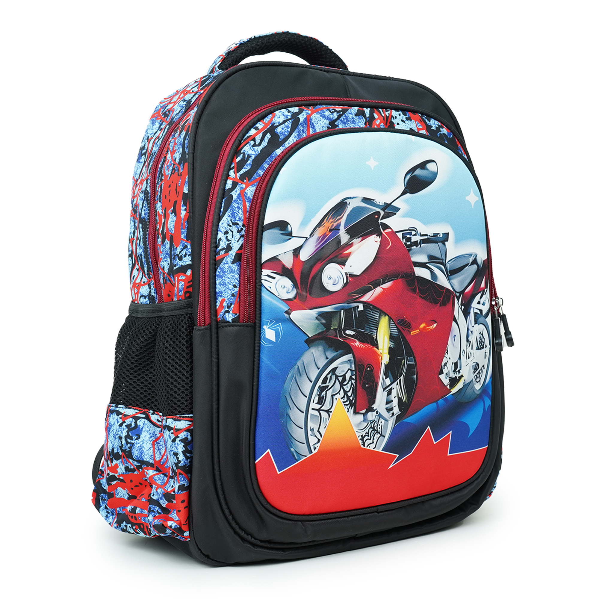 Gear up for adventure with this bold black school bag featuring an energetic sports bike design. Built for young riders and dreamers, it combines playful style with practical functionality—offering plenty of space for books, tech, and treasures. Durable, lightweight, and designed for comfort, it’s the perfect pack for daily rides to school and beyond.