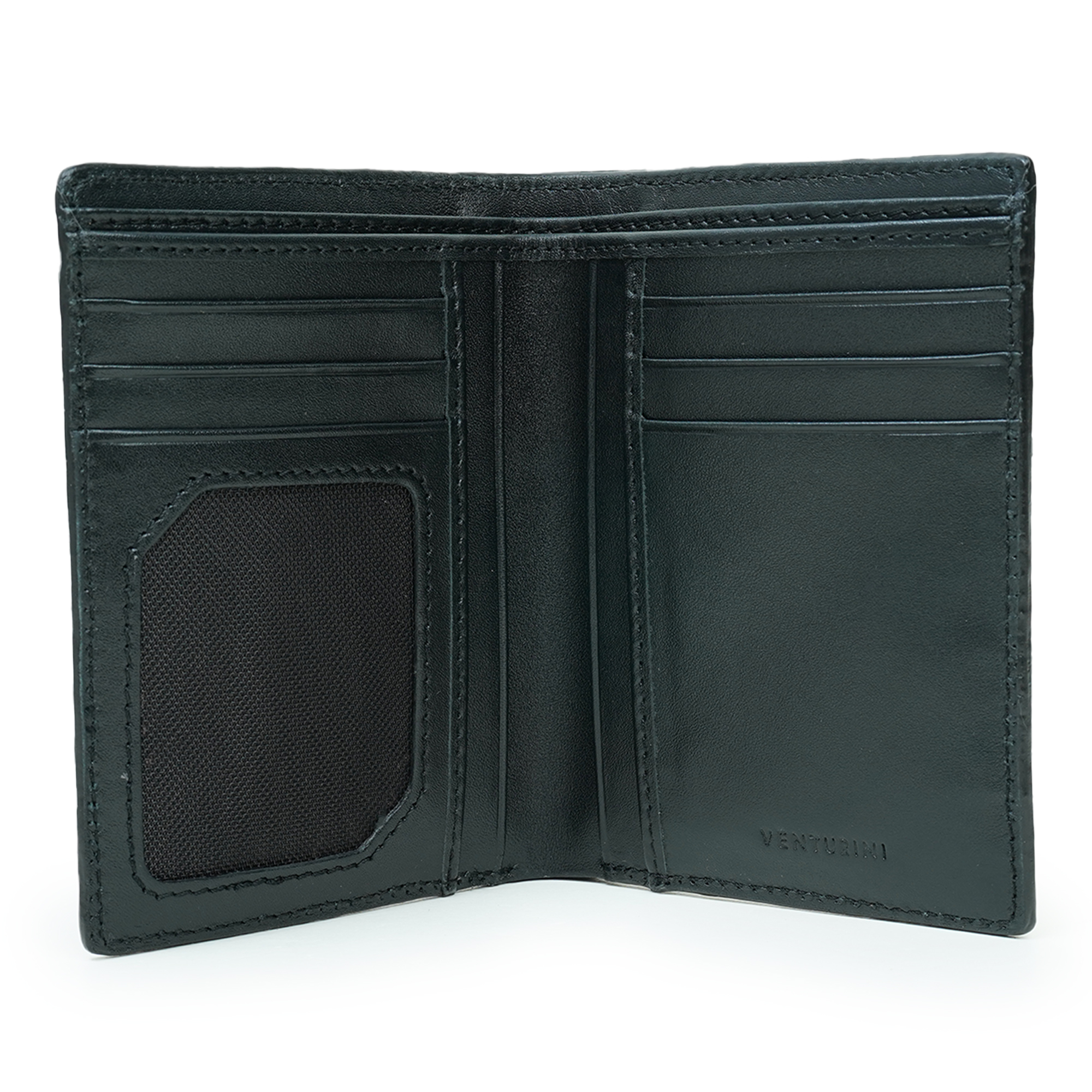 The Venturini Men's Black Textured Genuine Leather Wallet showcases refined craftsmanship, timeless elegance, and modern functionality. Made from premium genuine leather with a distinctive textured finish, this wallet delivers durability while maintaining a sophisticated appearance. Designed for the modern gentleman, it features multiple card slots, a convenient ID window, and well-organized compartments to keep essentials secure and easily accessible. The classic black color enhances its versatility, making it suitable for both professional and everyday use. With its slim and structured design, this Venturini leather wallet offers the perfect balance of luxury style, practical storage and long-lasting quality.