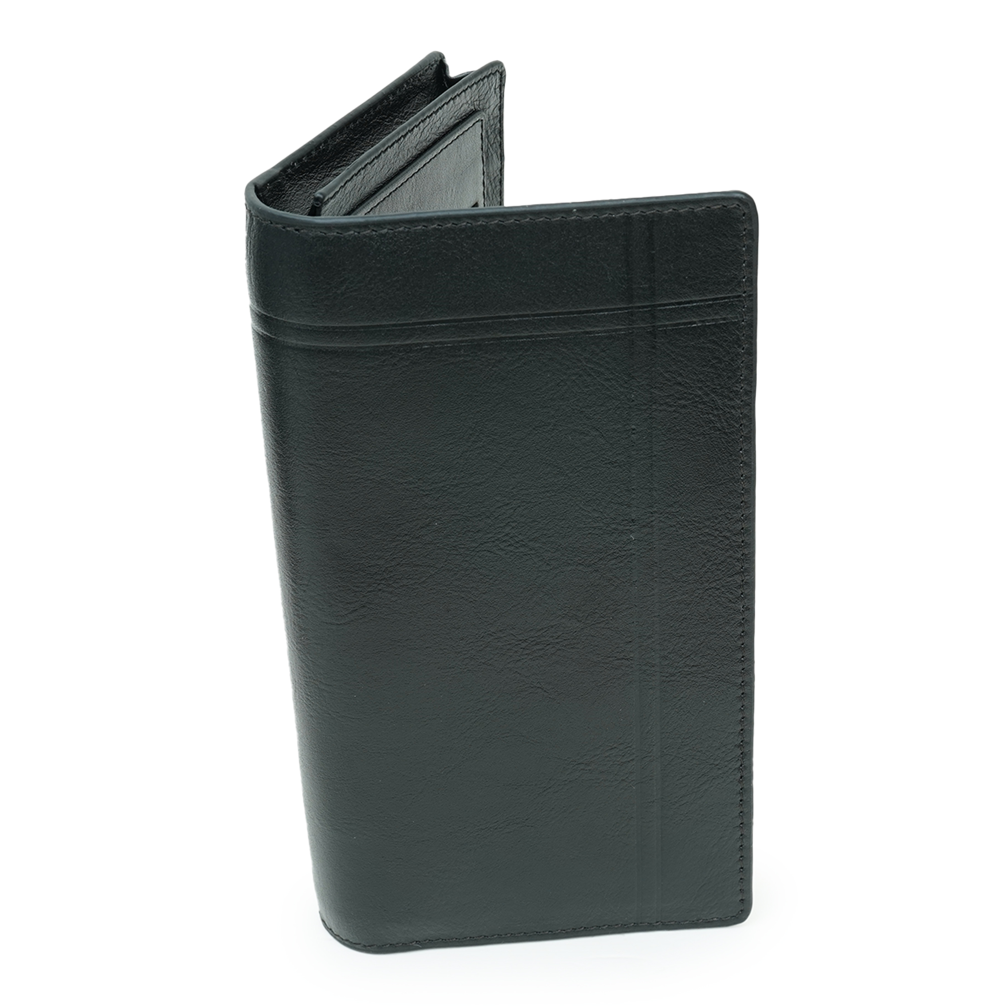 Designed for everyday reliability and organized ease, this black leather long wallet from Apex offers ample space without compromising on a clean, masculine style. Crafted from durable leather with subtle texturing, it keeps cards, cash, and essentials securely in place—perfect for the man who values function, durability, and understated sophistication in his daily carry.