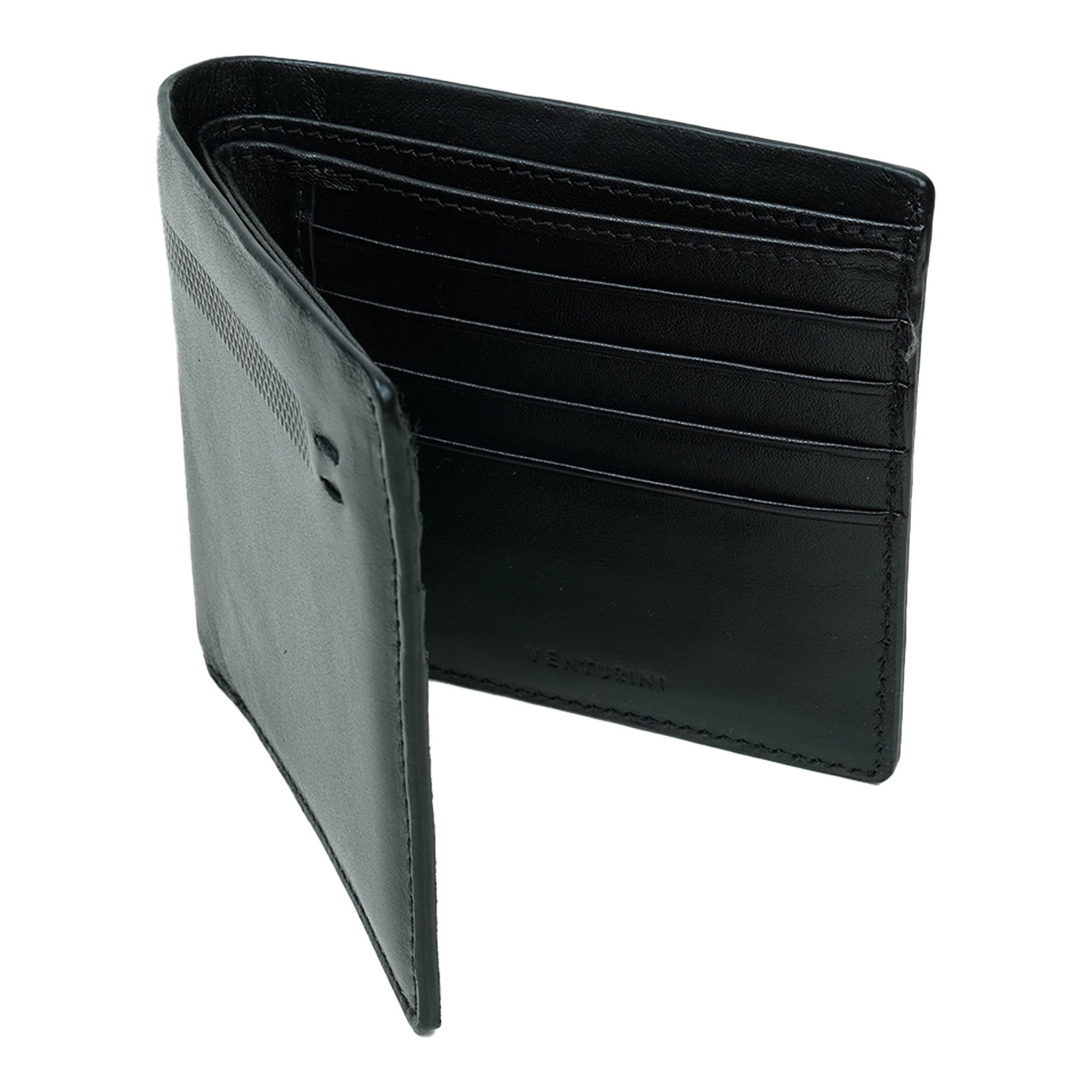 Designed for the modern gentleman, the VENTURINI Men's Black Genuine Leather Wallet offers a perfect blend of elegance, durability, and everyday functionality. Crafted from premium genuine leather, this bifold wallet features a smooth finish and refined craftsmanship that elevates your daily essentials. Its slim yet practical structure fits comfortably in your pocket while providing organized storage for cards and cash. With multiple card slots and spacious compartments, it keeps everything neatly arranged and easily accessible. The timeless black design reflects Venturini’s signature sophistication and luxury, making it a reliable and stylish accessory for both professional and casual occasions.