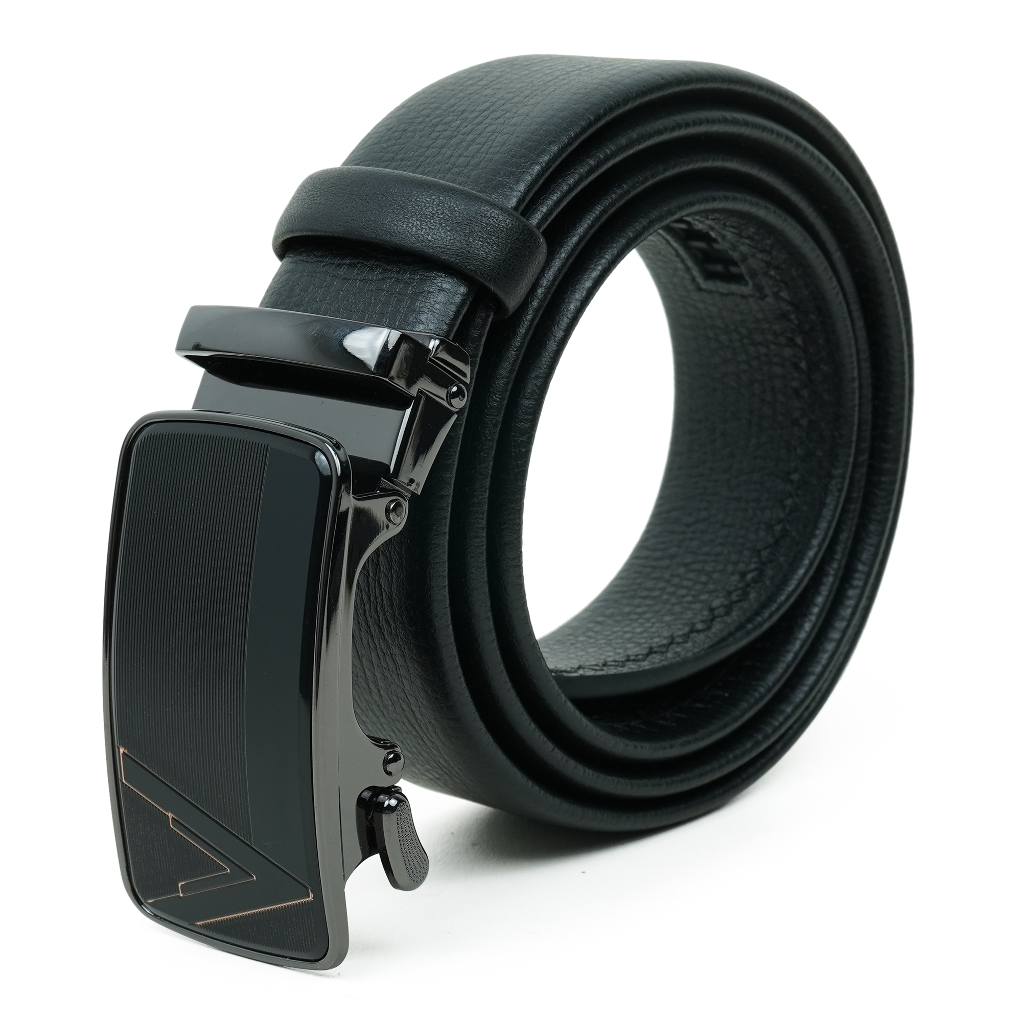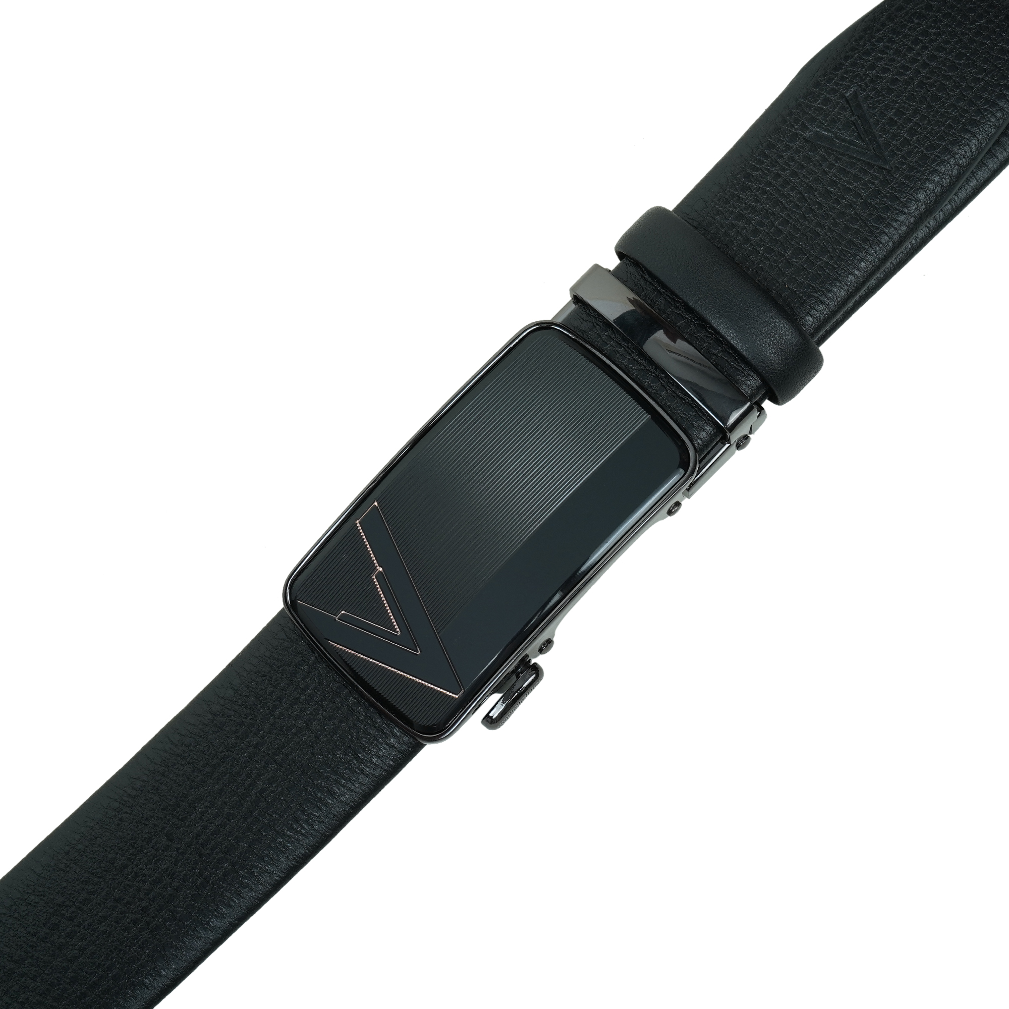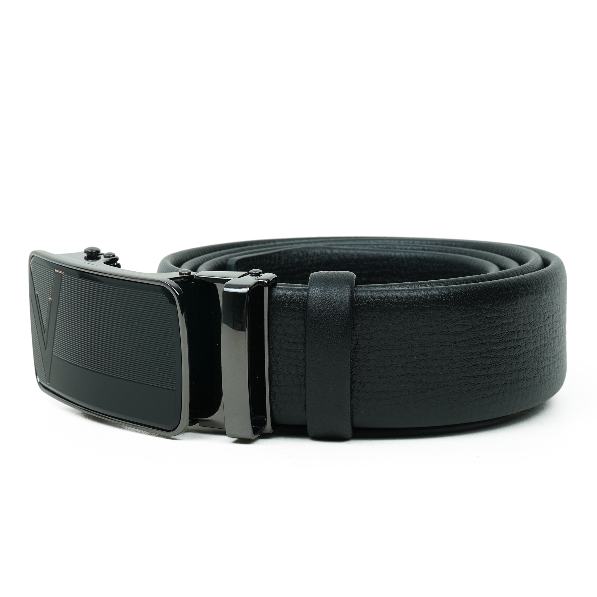 Elevate your everyday style with this Venturini men’s black leather belt, designed with a modern automatic buckle and a sleek signature plate design. Crafted from high-quality leather, this belt offers durability along with a refined, polished look. The adjustable mechanism ensures a perfect fit, making it ideal for both formal and smart-casual outfits. A sophisticated accessory that adds a sharp finishing touch to any wardrobe