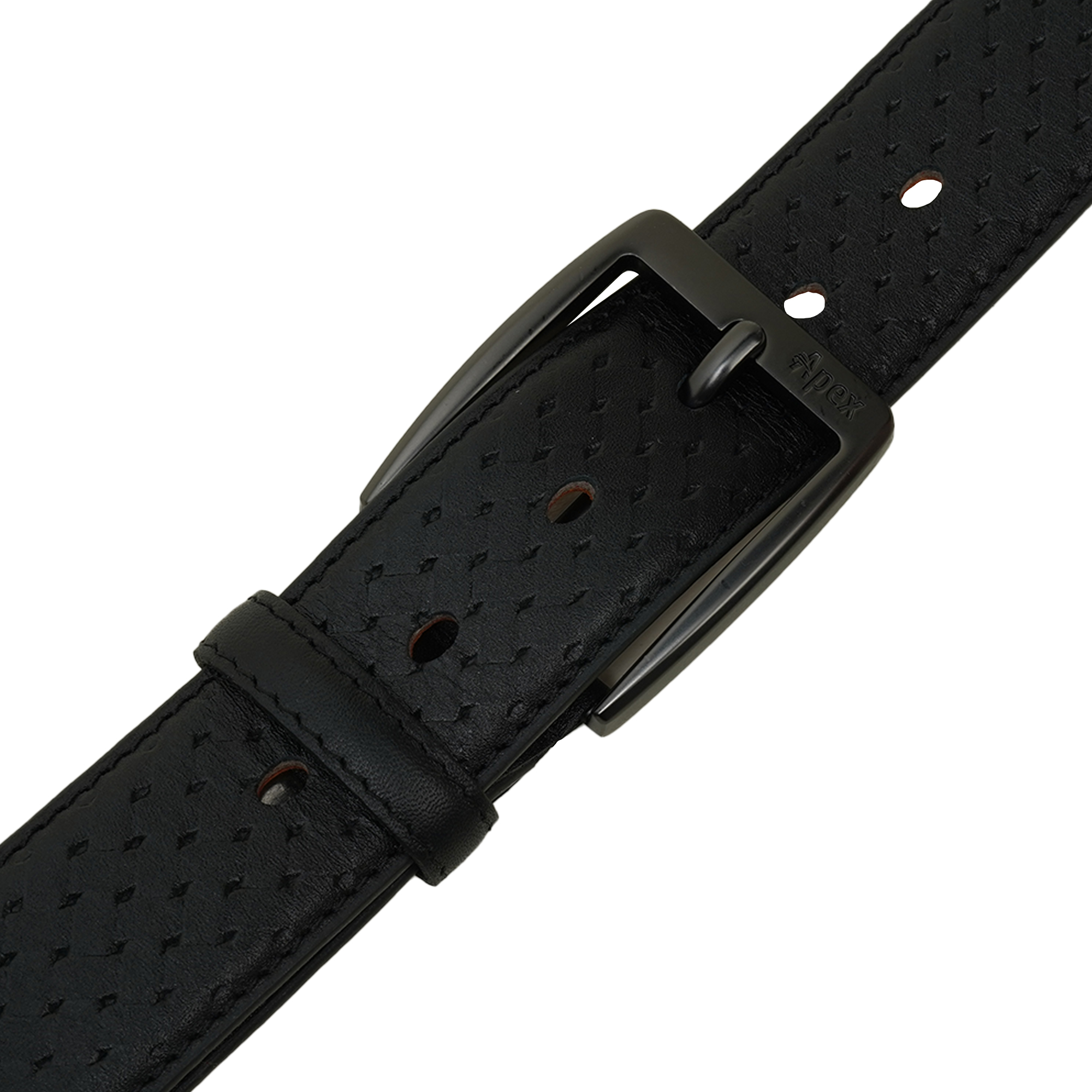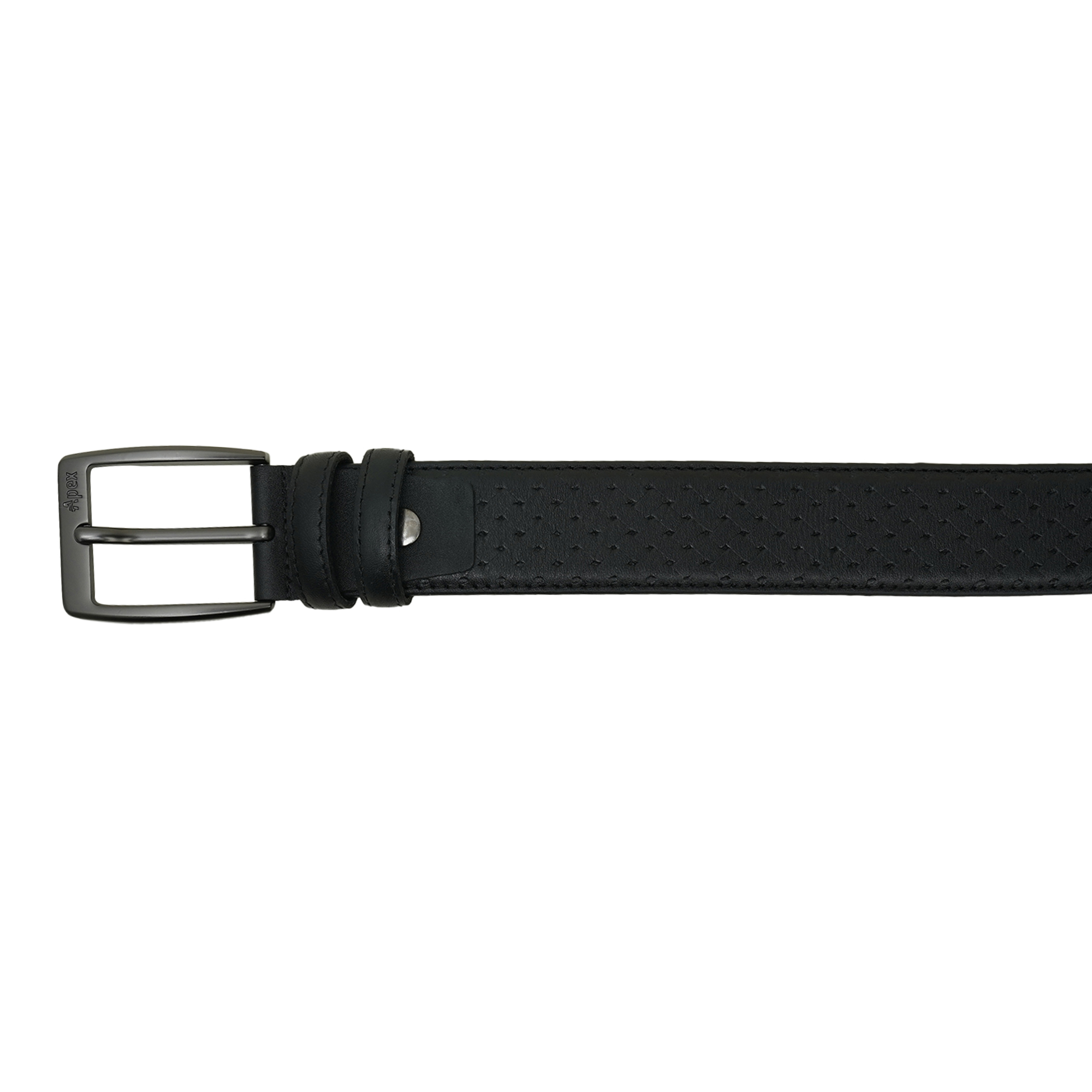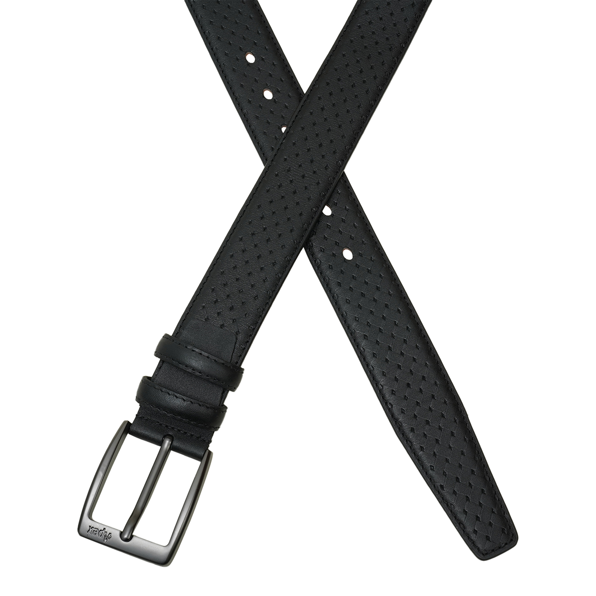 Upgrade your formal and casual look with the Nino Rossi Men’s Black Leather Belt. Crafted from premium quality leather, this belt features a sleek textured finish that adds a refined touch to any outfit. The sturdy matte black buckle ensures a secure fit while enhancing its modern appeal. Designed for durability and everyday comfort, this belt pairs perfectly with jeans, trousers or formal wear, making it a versatile essential for every man’s wardrobe.