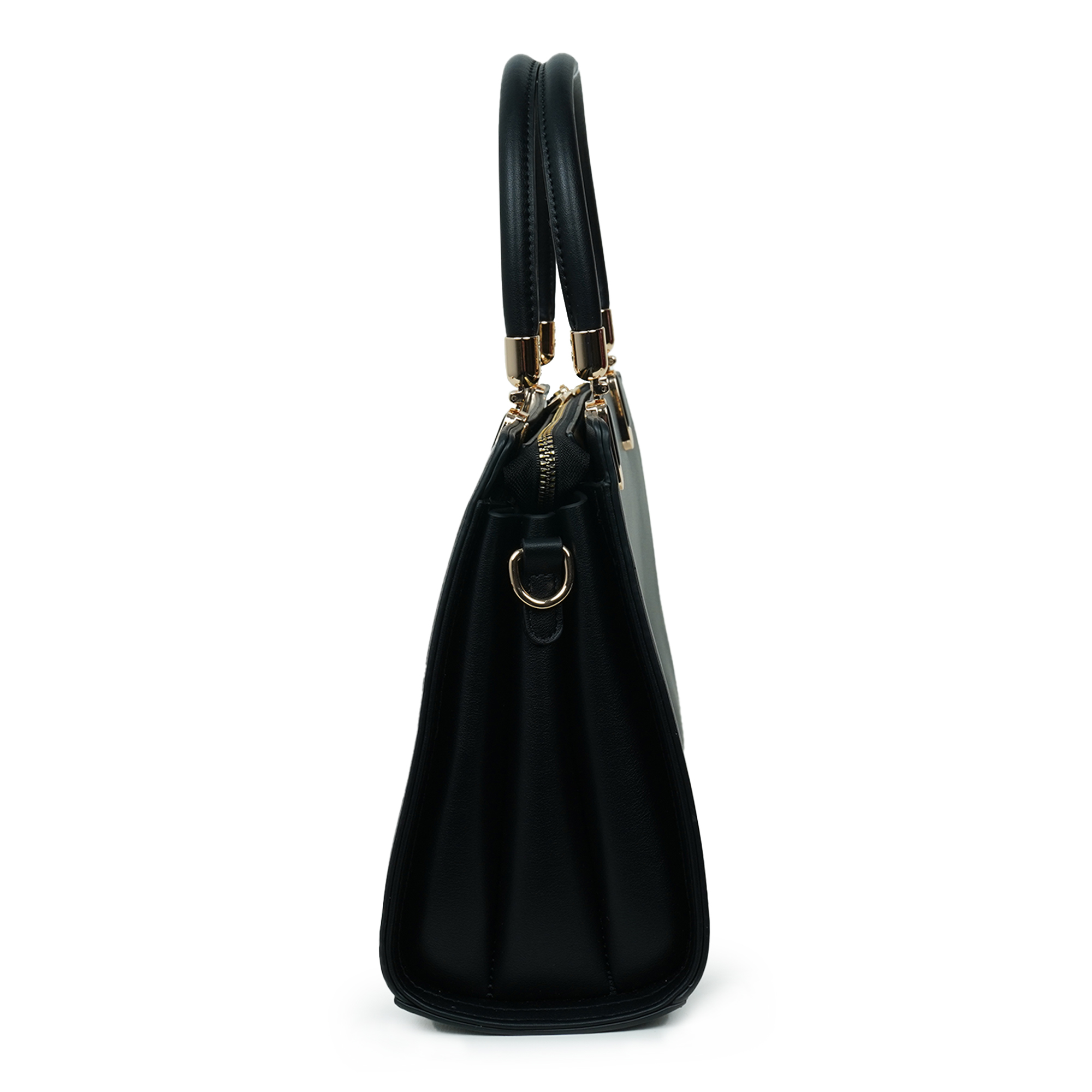Elegant and versatile, this Moochie women’s handbag is designed to elevate both everyday and formal styles. Made from high-quality PU leather, the bag features a sleek black finish that reflects modern sophistication and timeless fashion. Its structured design helps keep your belongings organized while maintaining a refined and polished look. The sturdy double top handles ensure comfortable carrying, making it perfect for office use, meetings, shopping trips, or evening outings. With a spacious interior that easily fits essentials like your phone, wallet, cosmetics, and accessories, this Moochie handbag offers the perfect balance of style, convenience and everyday practicality.