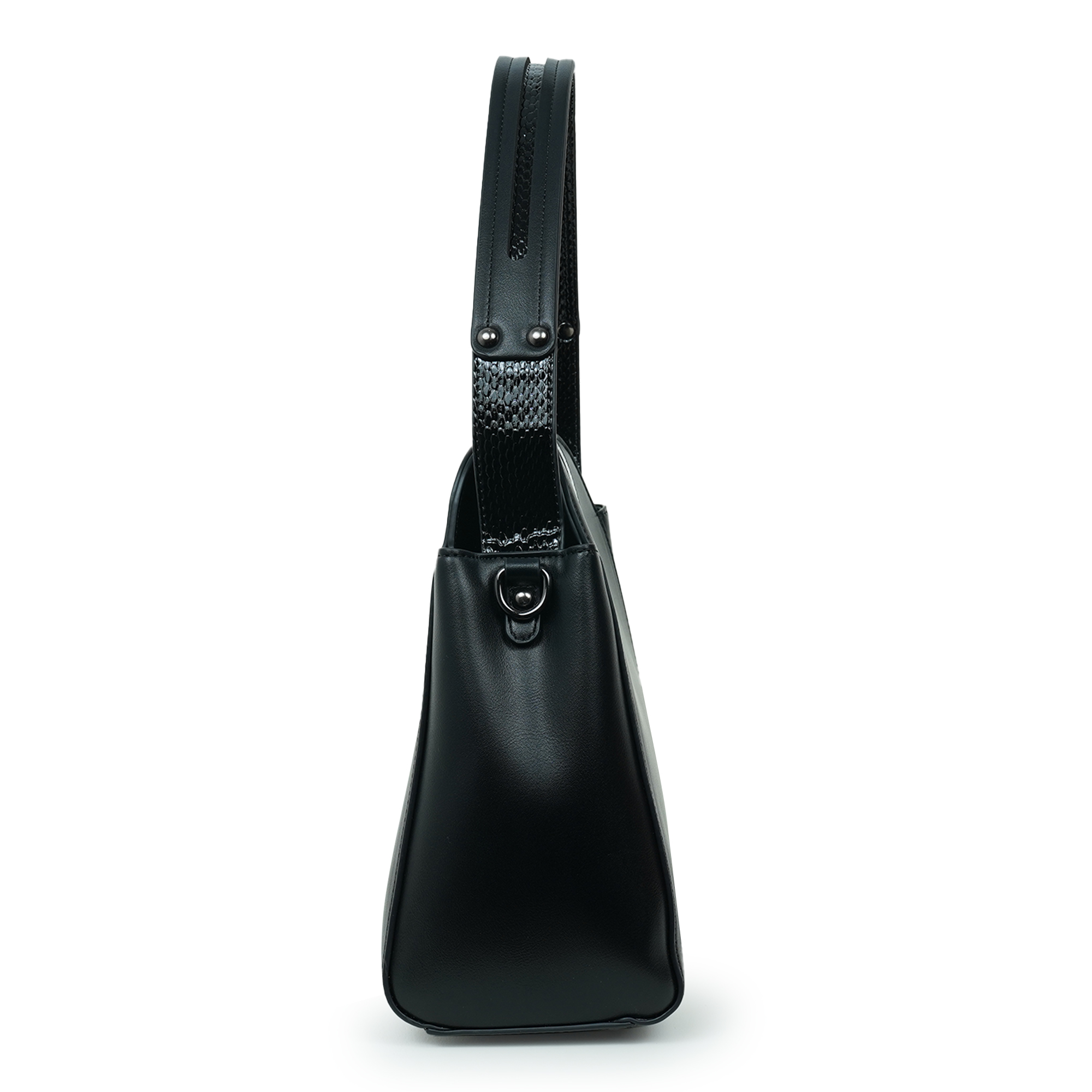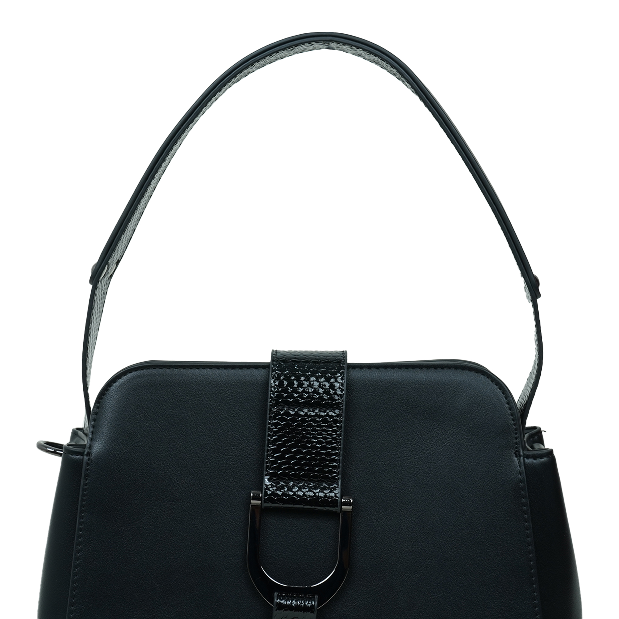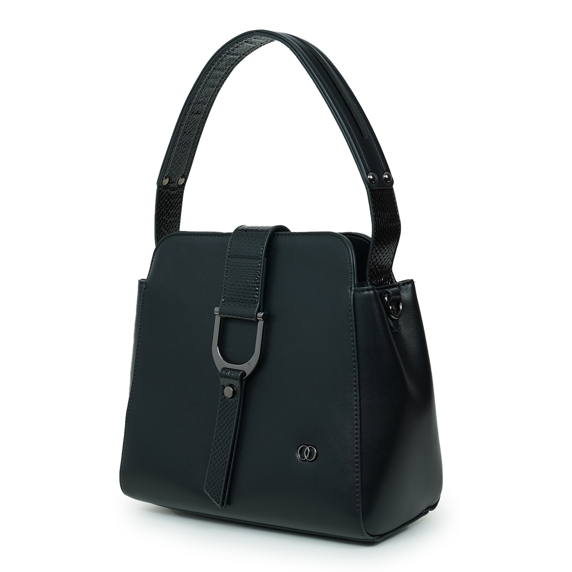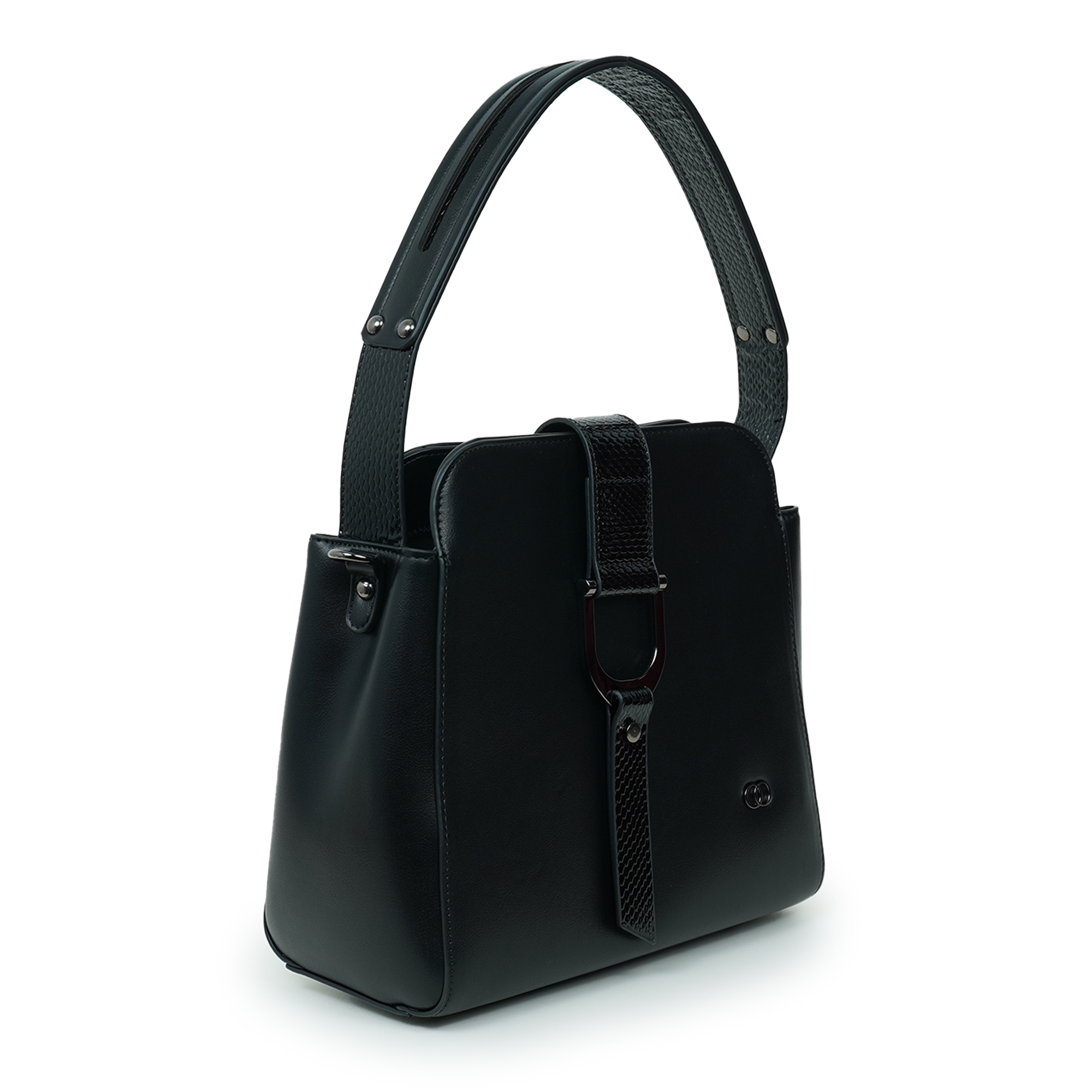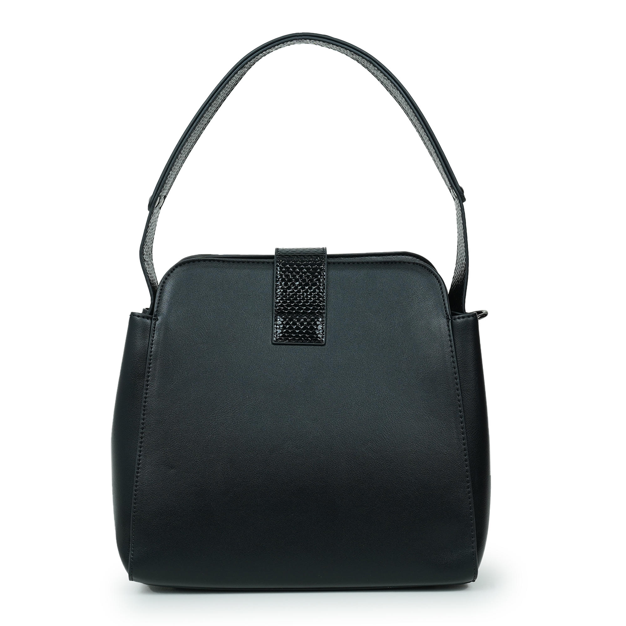 Elegant and versatile, this Moochie black women’s handbag is designed to elevate everyday fashion with a modern touch. Crafted from high-quality PU material, the bag features a smooth finish complemented by a stylish textured strap detail that enhances its sophisticated look. The structured silhouette keeps your belongings neatly organized while maintaining a refined appearance suitable for work, casual outings, or special occasions. Its comfortable shoulder handle allows easy carrying throughout the day, while the spacious interior offers enough room for essentials like your phone, wallet, cosmetics and accessories. With its timeless black tone and sleek hardware accents, this handbag effortlessly completes any outfit.