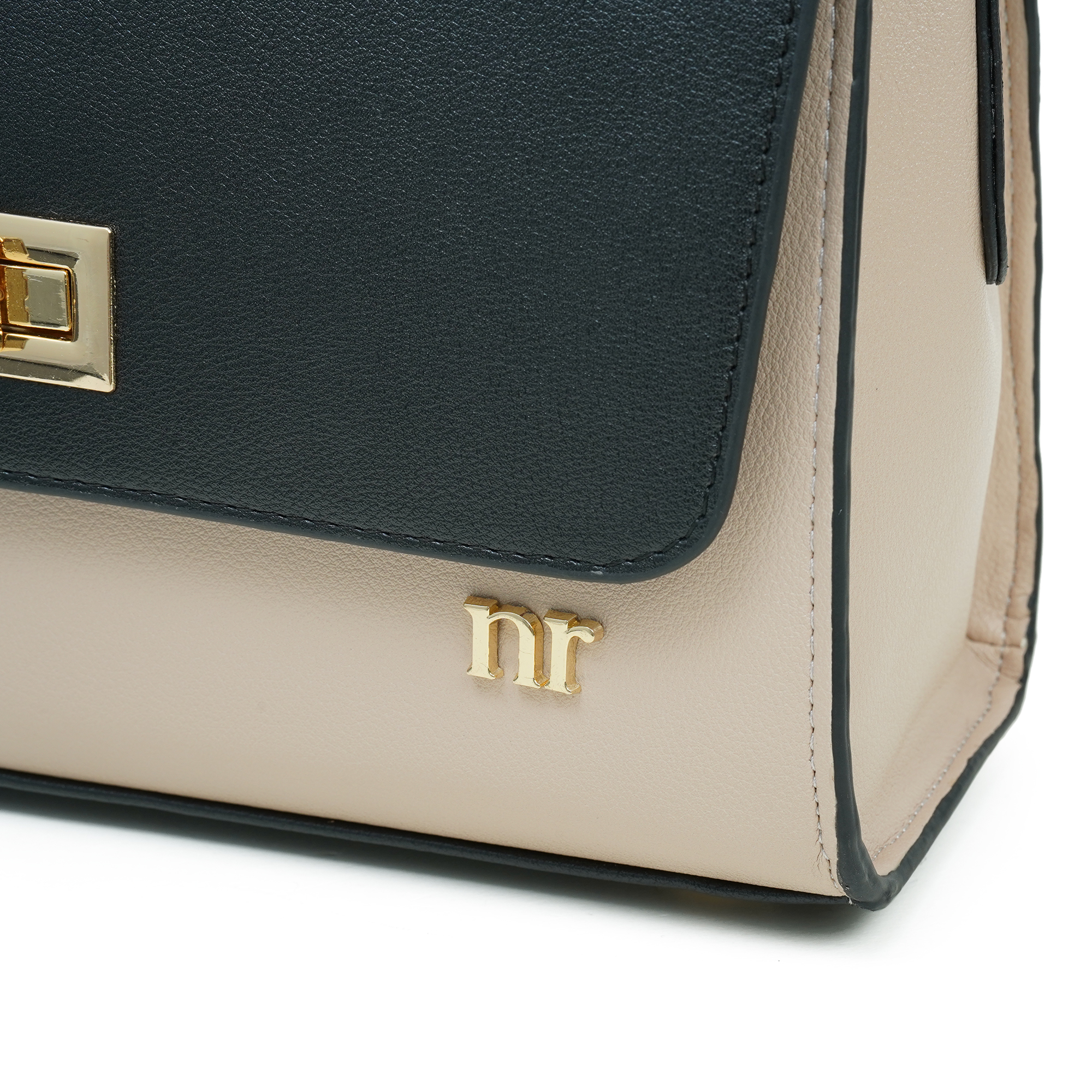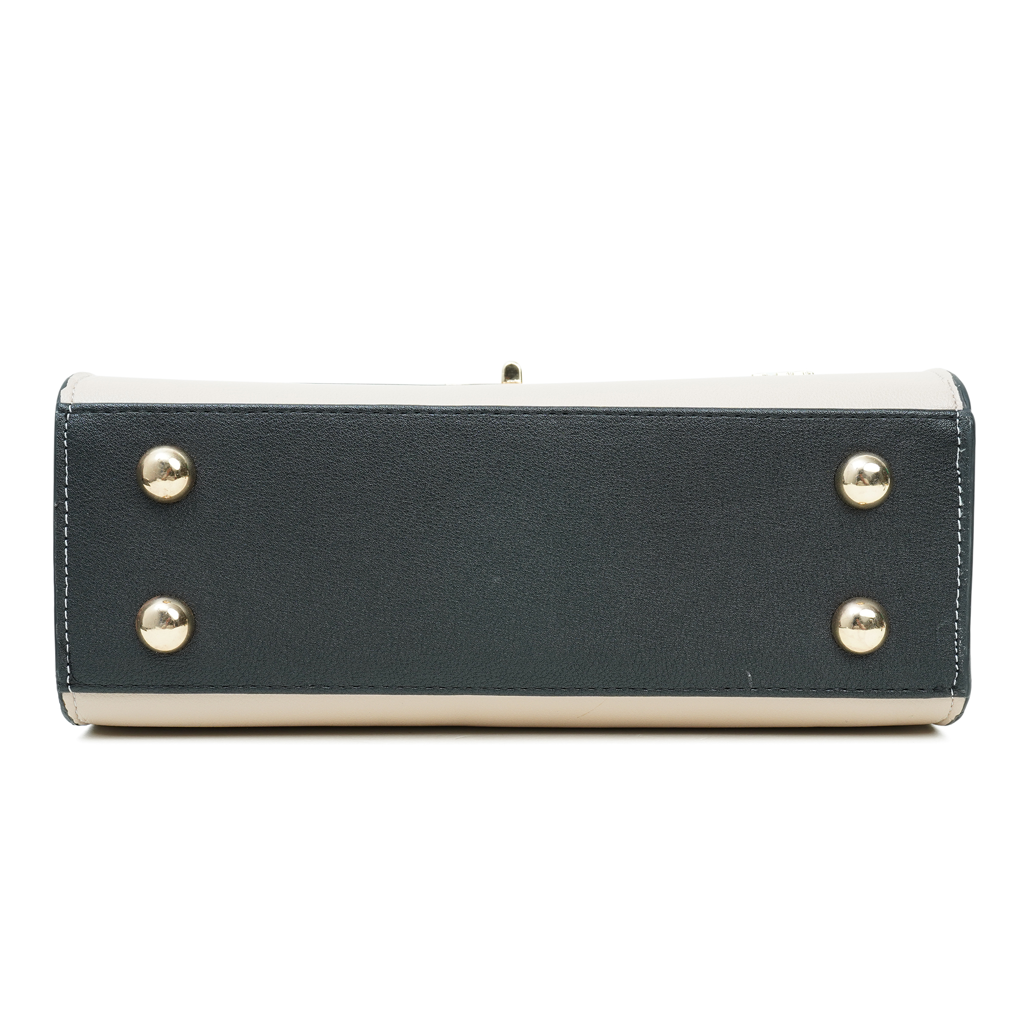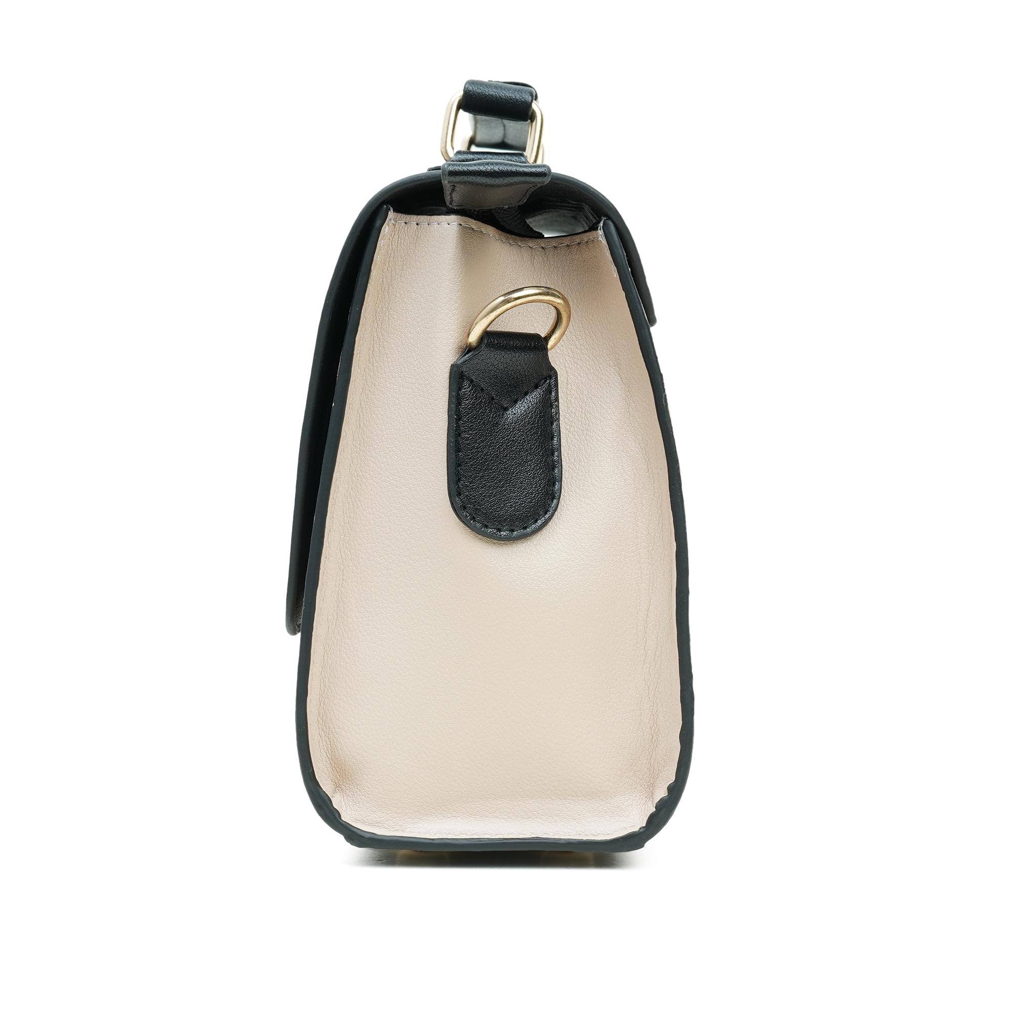 - Golden metal hardware with elegant beige accent trim