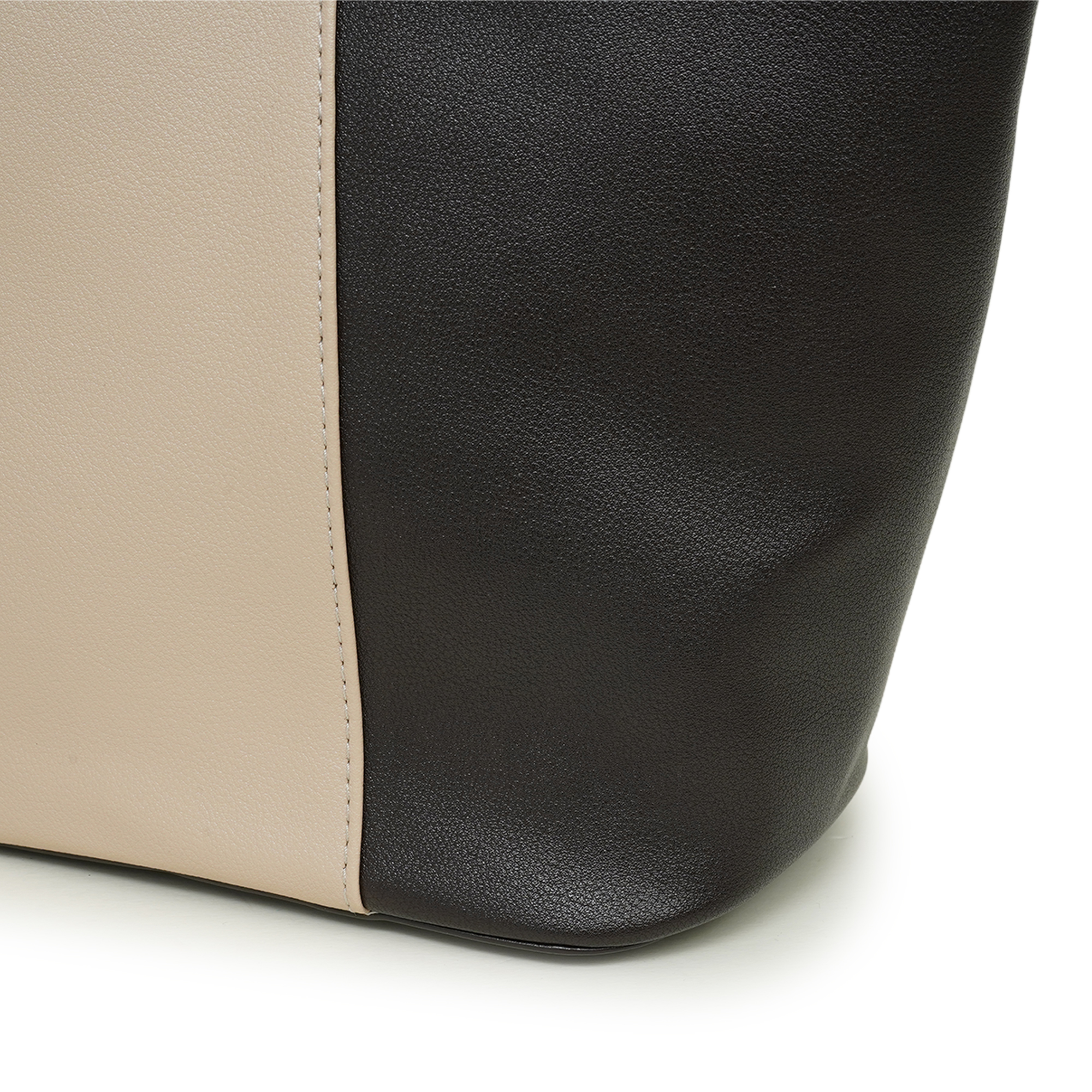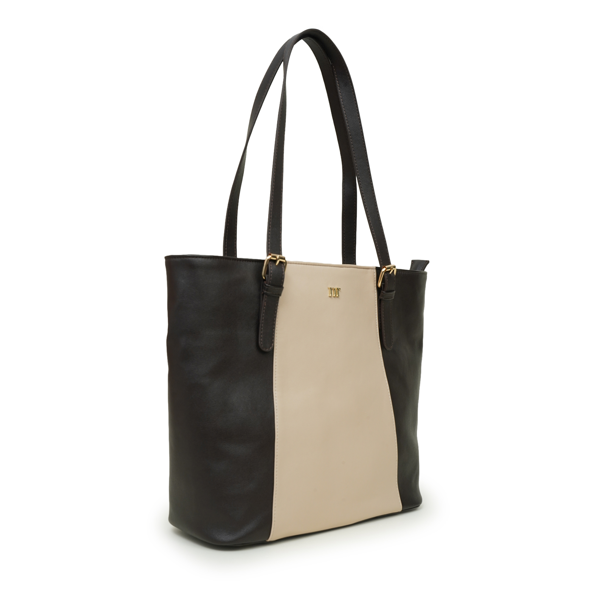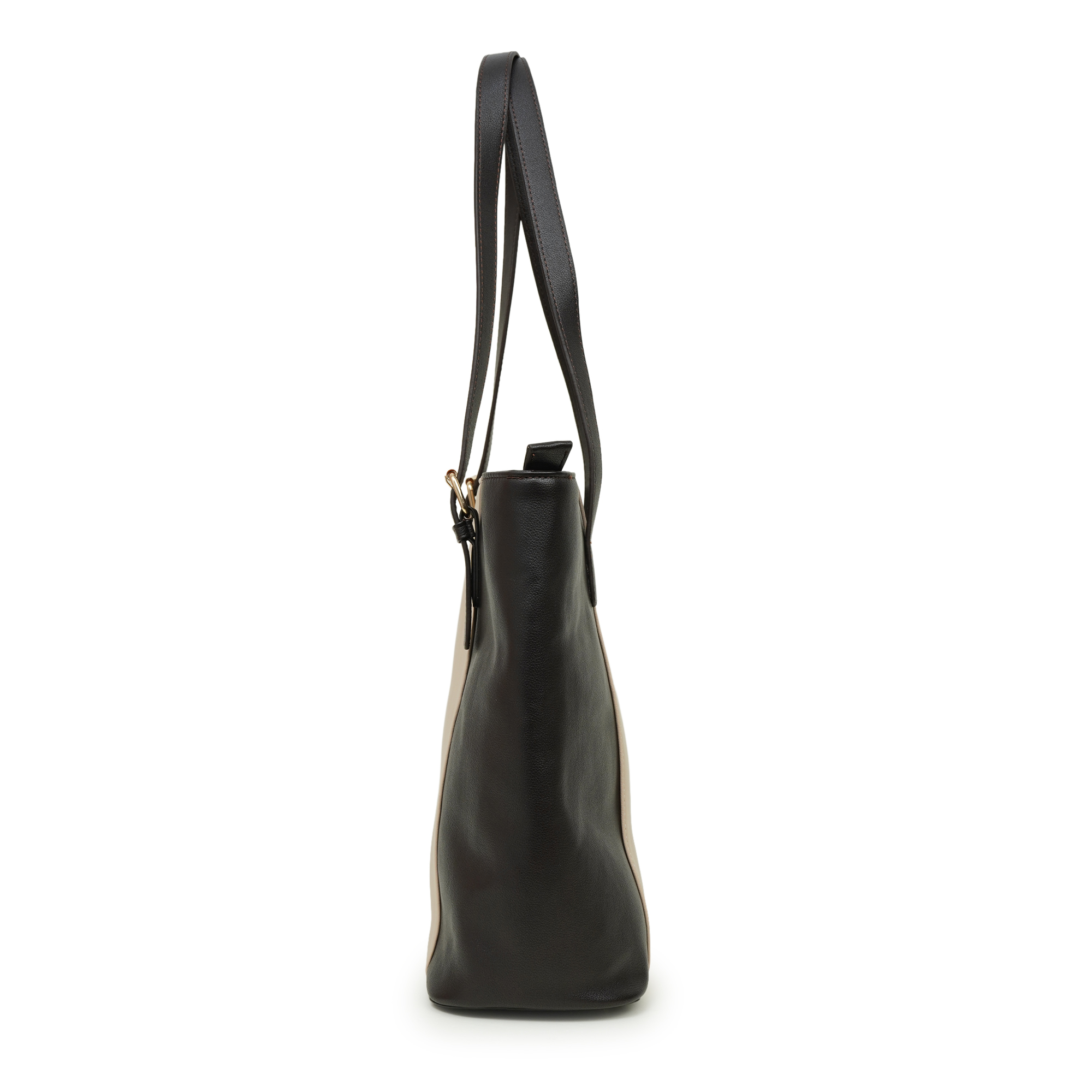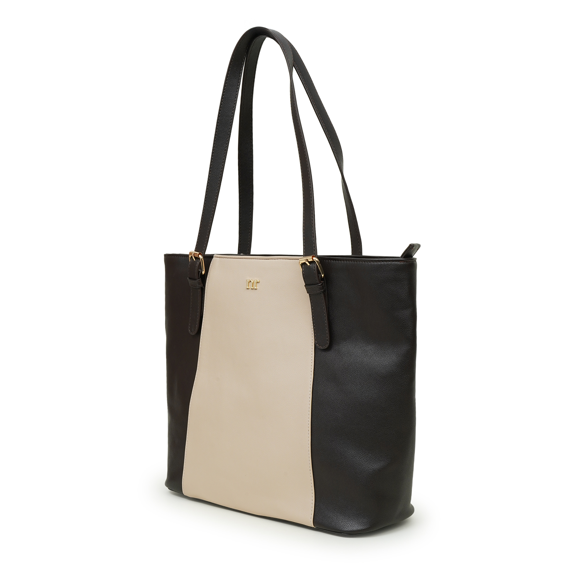Add a modern touch to your collection with the Nino Rossi Women’s Tote Bag in elegant Beige and Black. Crafted from premium PU with a soft fabric lining, this stylish tote features a chic color-block design that stands out effortlessly. The spacious interior provides ample room for daily essentials, while the secure zip closure keeps your belongings safe. Finished with sturdy shoulder straps and refined gold-tone logo detailing, this bag is perfect for office, shopping or everyday outings.