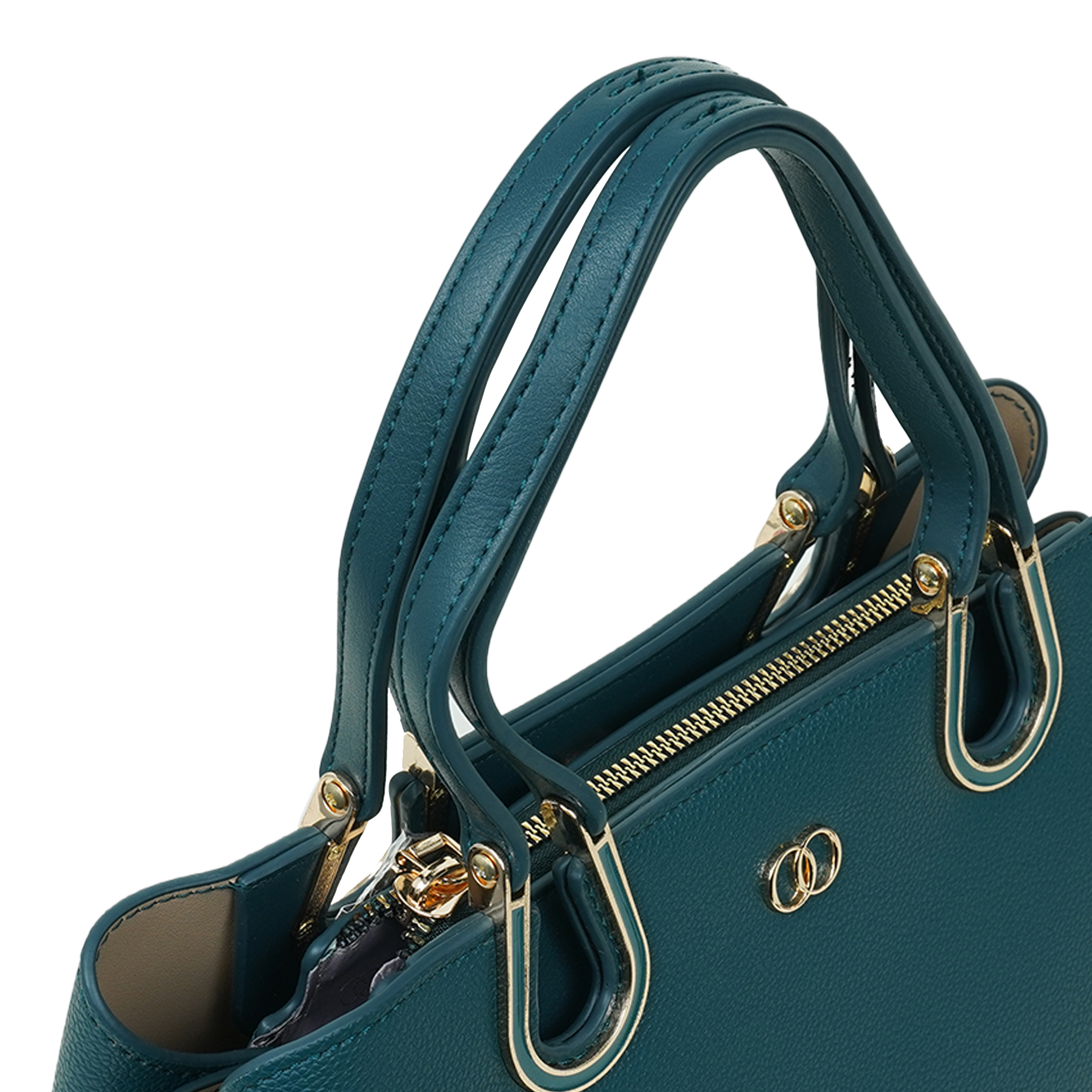 • Stylish teal color with premium gold-tone hardware