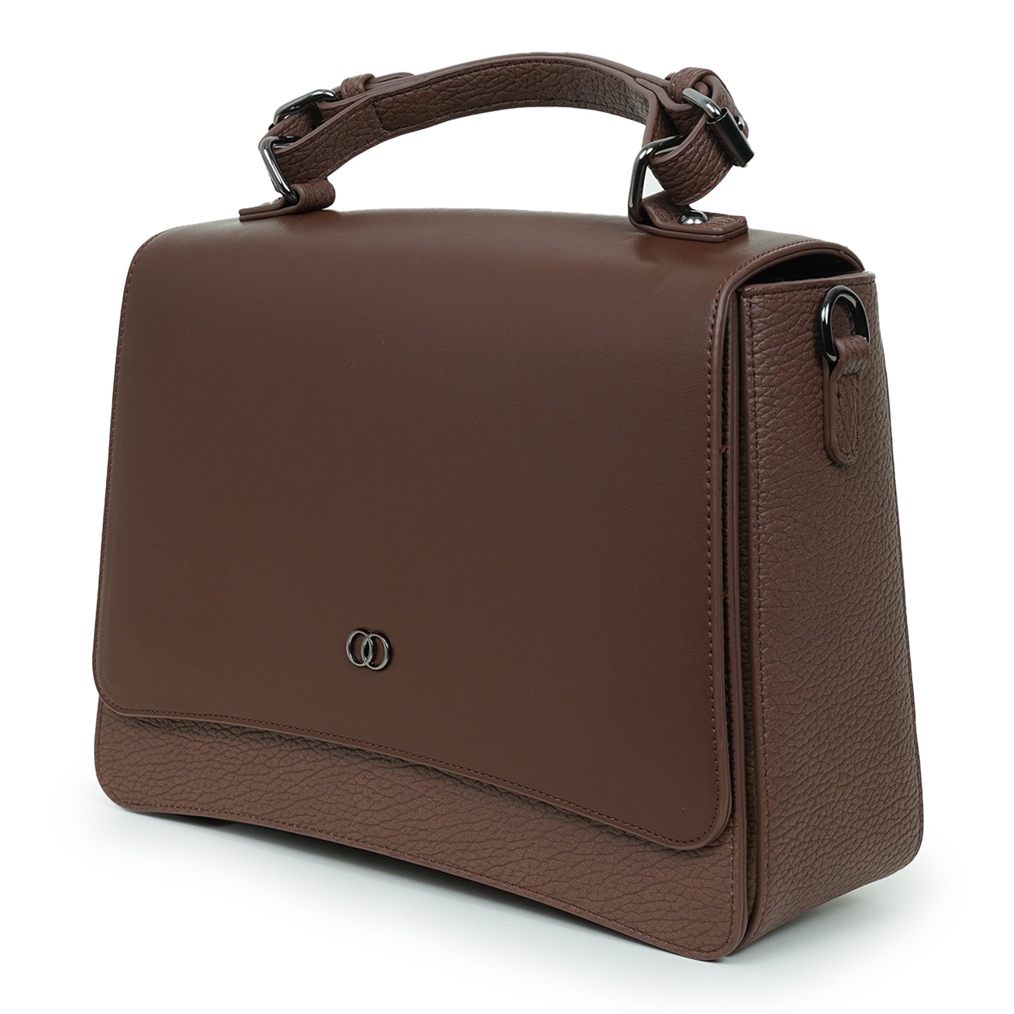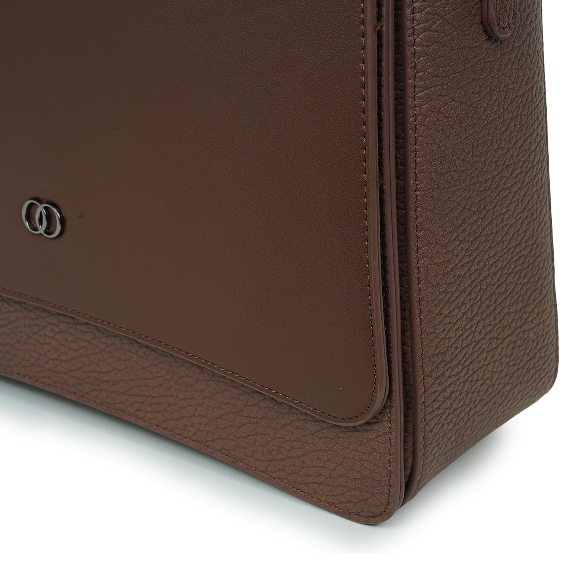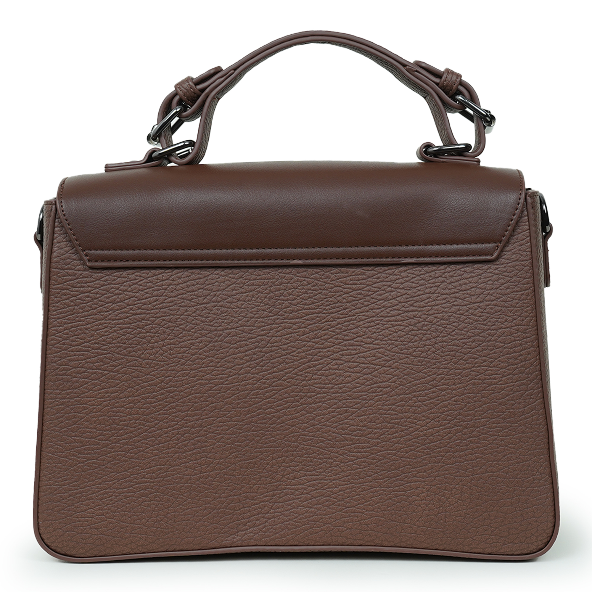 Designed to complement modern style, this Moochie coffee-colored handbag brings elegance and practicality together in one refined piece. Crafted from high-quality PU upper material, the bag offers a smooth finish with a sophisticated textured base that enhances its premium look. The structured design keeps your essentials organized while maintaining a sleek silhouette suitable for both formal and casual occasions. Its sturdy top handle ensures comfortable carrying, and the spacious interior provides enough room for daily essentials like a wallet, phone, makeup, and small accessories. With its timeless coffee tone and polished hardware, this handbag is a stylish choice for work, outings or everyday fashion.