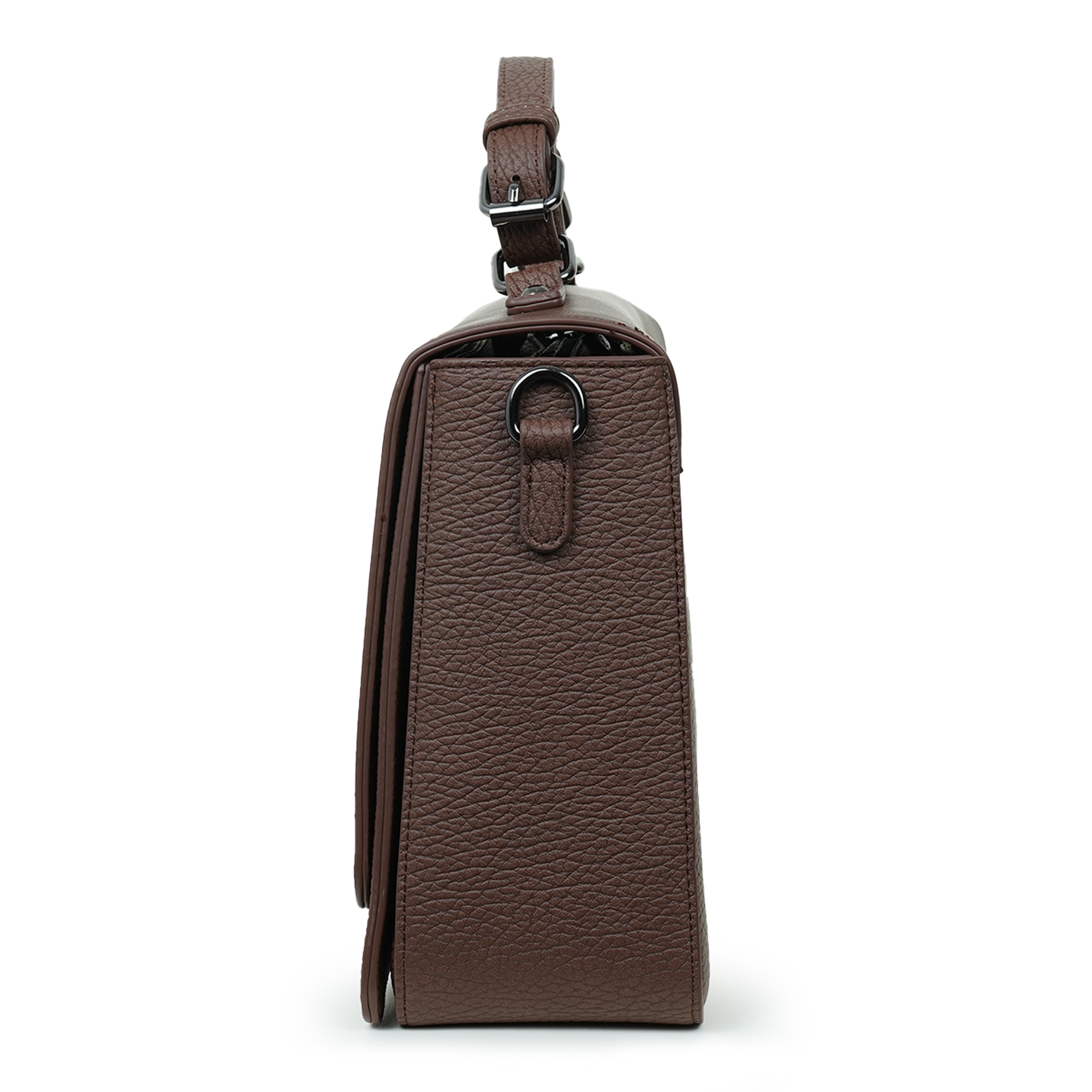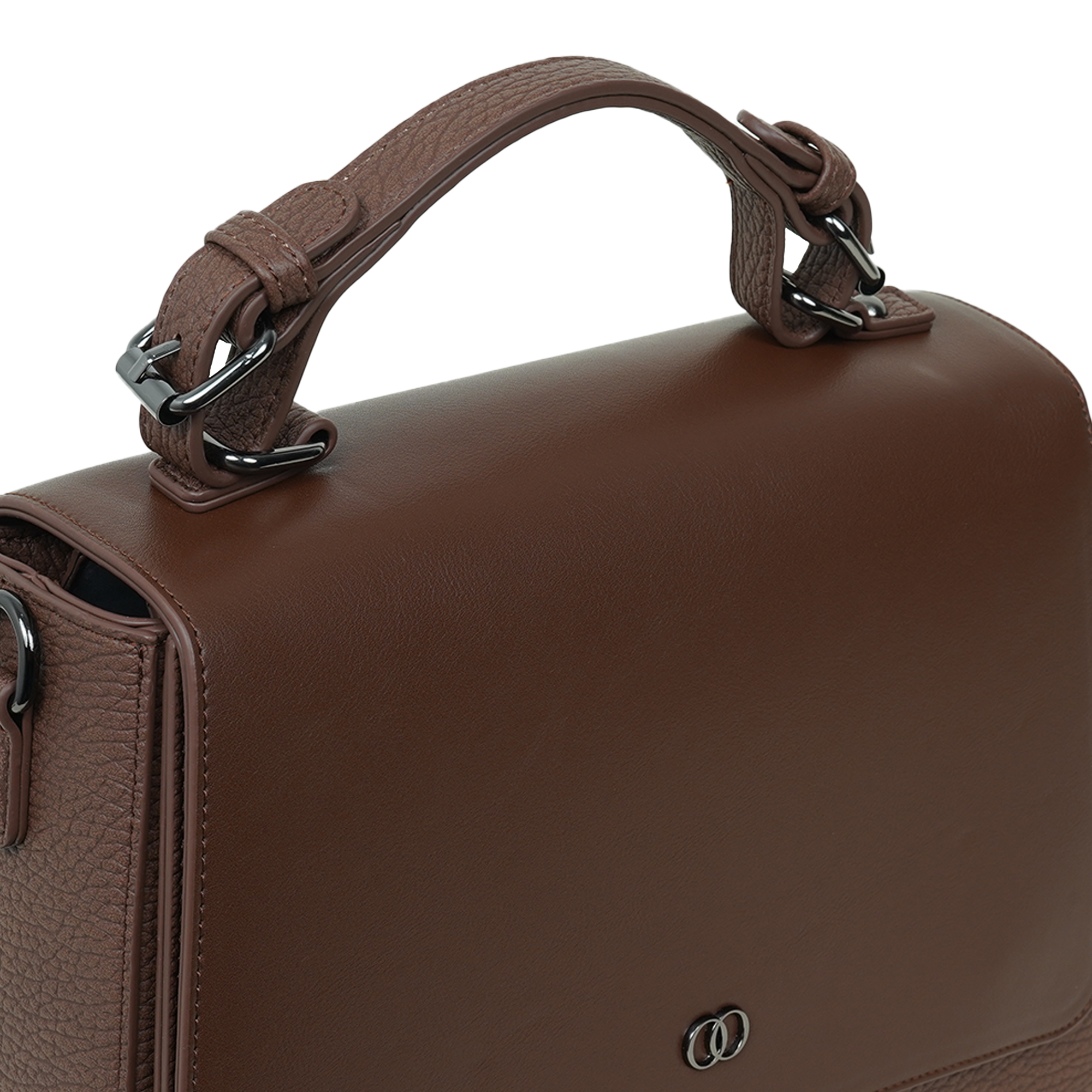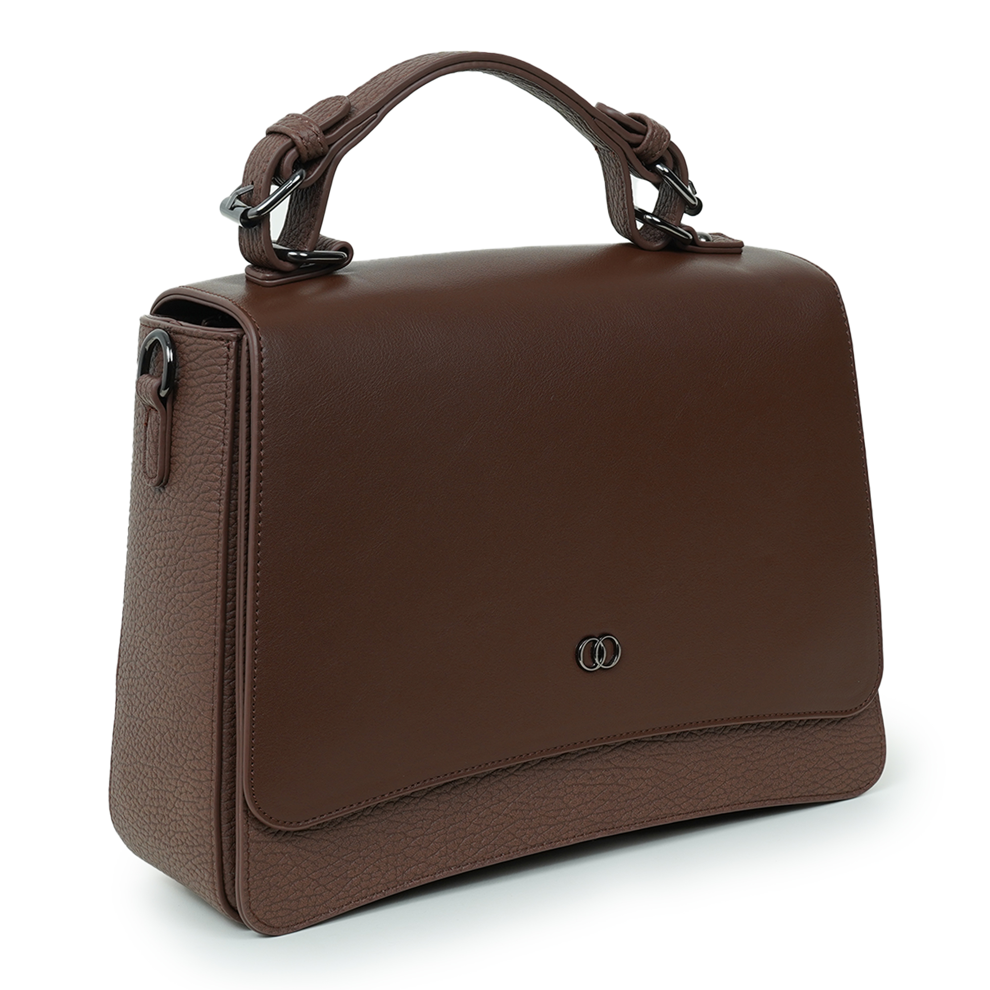 Designed to complement modern style, this Moochie coffee-colored handbag brings elegance and practicality together in one refined piece. Crafted from high-quality PU upper material, the bag offers a smooth finish with a sophisticated textured base that enhances its premium look. The structured design keeps your essentials organized while maintaining a sleek silhouette suitable for both formal and casual occasions. Its sturdy top handle ensures comfortable carrying, and the spacious interior provides enough room for daily essentials like a wallet, phone, makeup, and small accessories. With its timeless coffee tone and polished hardware, this handbag is a stylish choice for work, outings or everyday fashion.