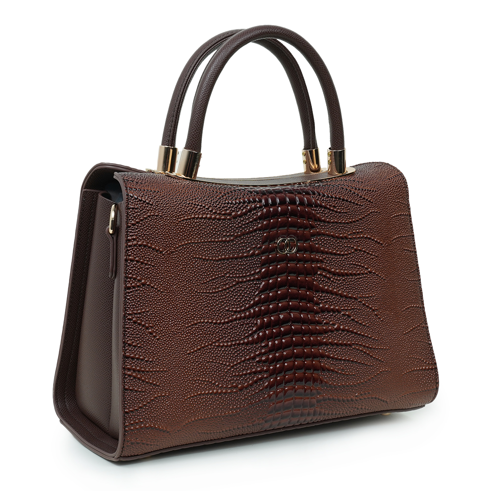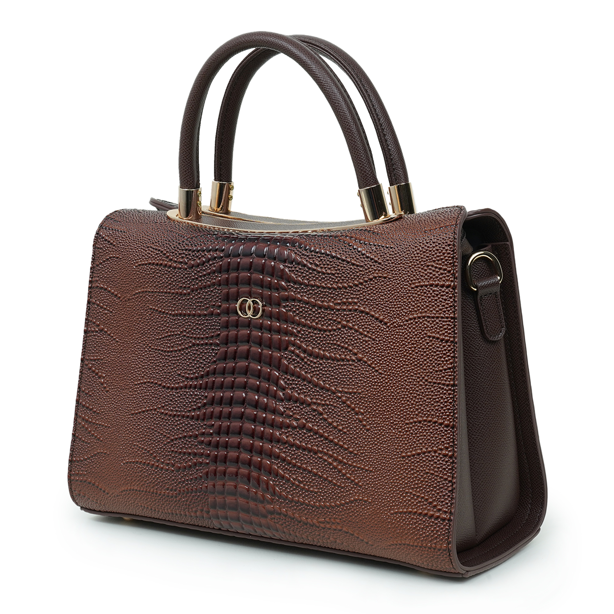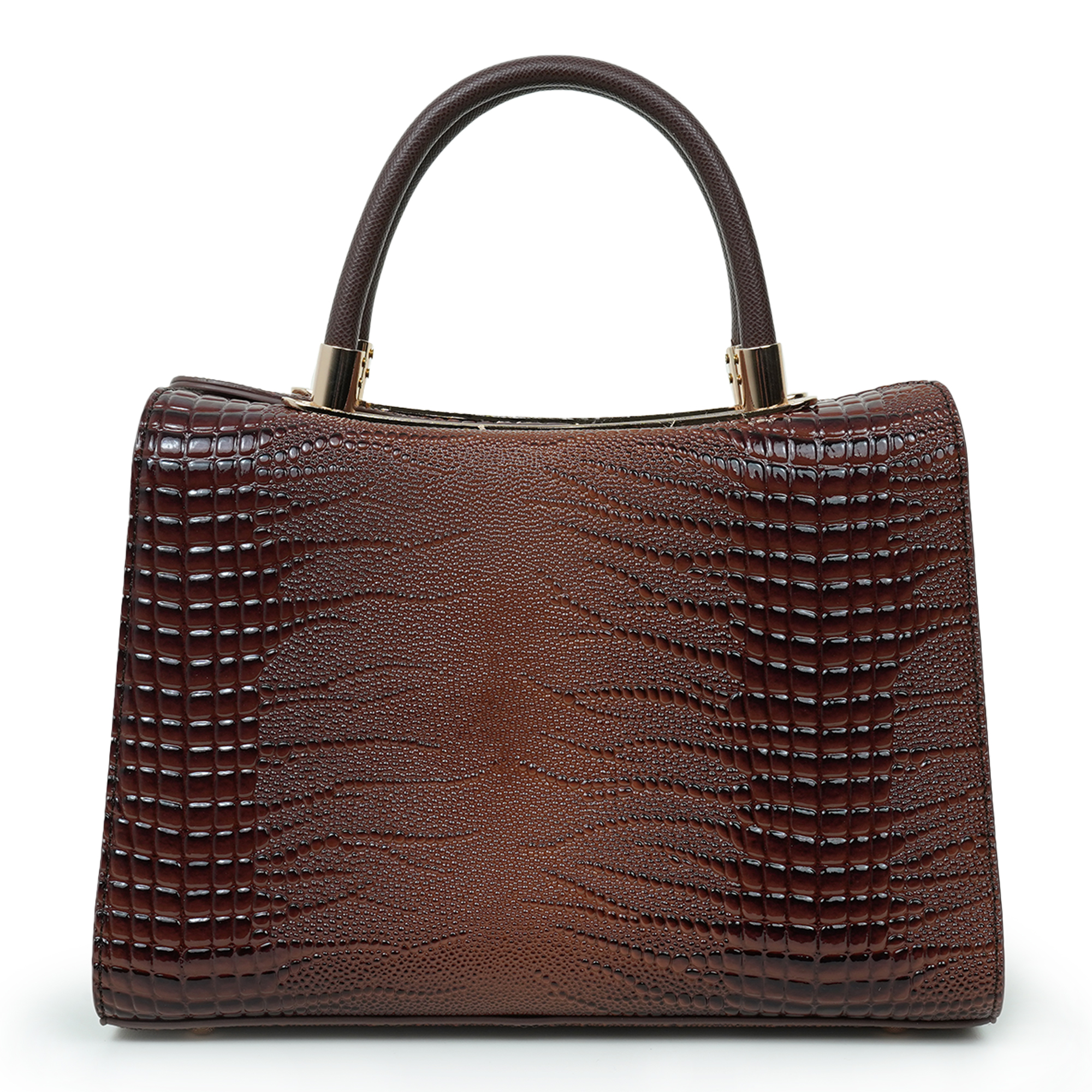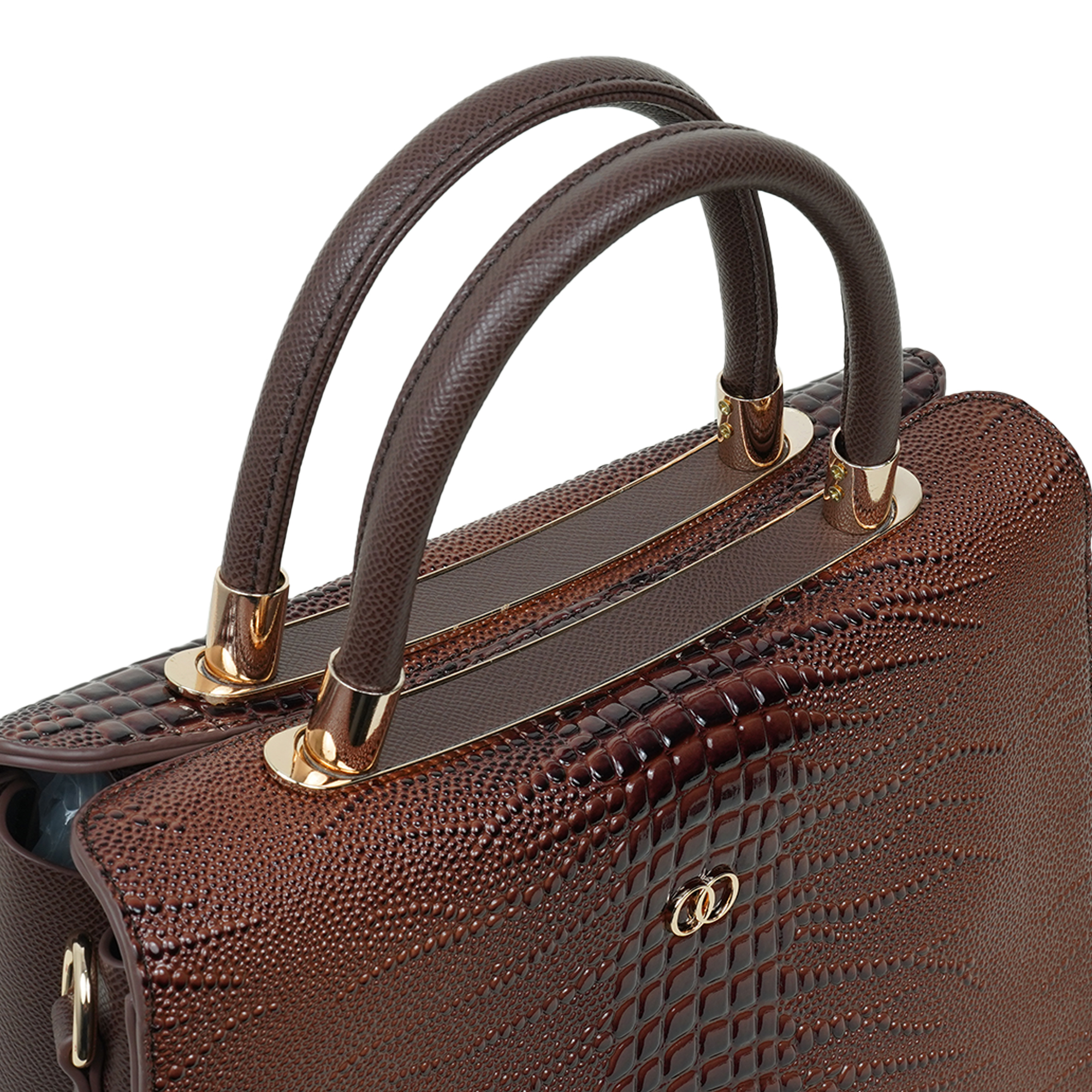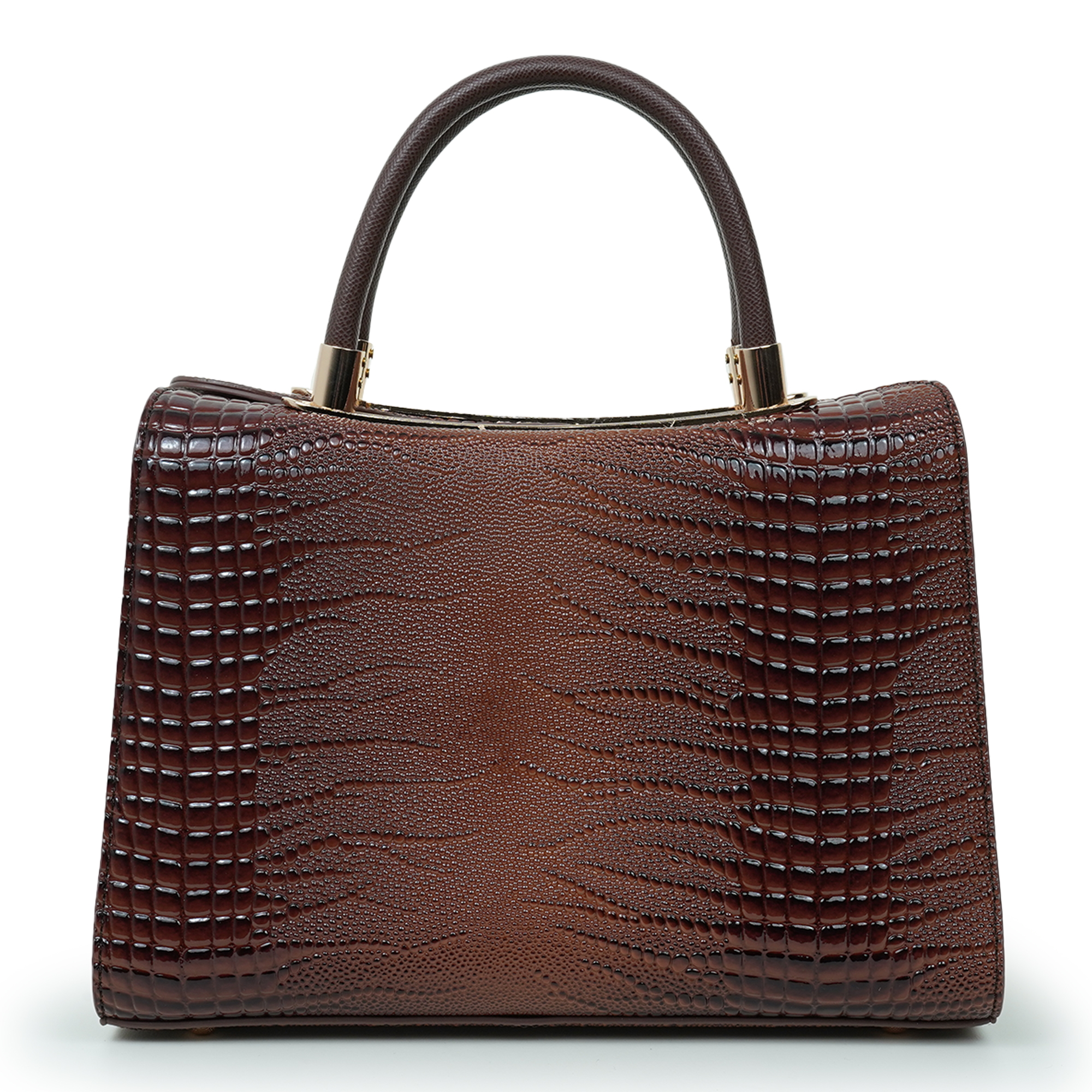 Elegant and sophisticated, this Nino Rossi women’s handbag is designed to add a refined statement to your everyday style. Crafted from premium PU leather, the bag features a rich dark brown tone with a distinctive textured pattern that enhances its luxurious appearance. The structured silhouette keeps the bag looking polished while helping you organize your daily essentials with ease. Finished with subtle gold-tone hardware and sturdy dual top handles, it offers both style and practicality. The spacious interior provides ample room for items such as your phone, wallet, cosmetics, and accessories, making it perfect for work, shopping or special outings.