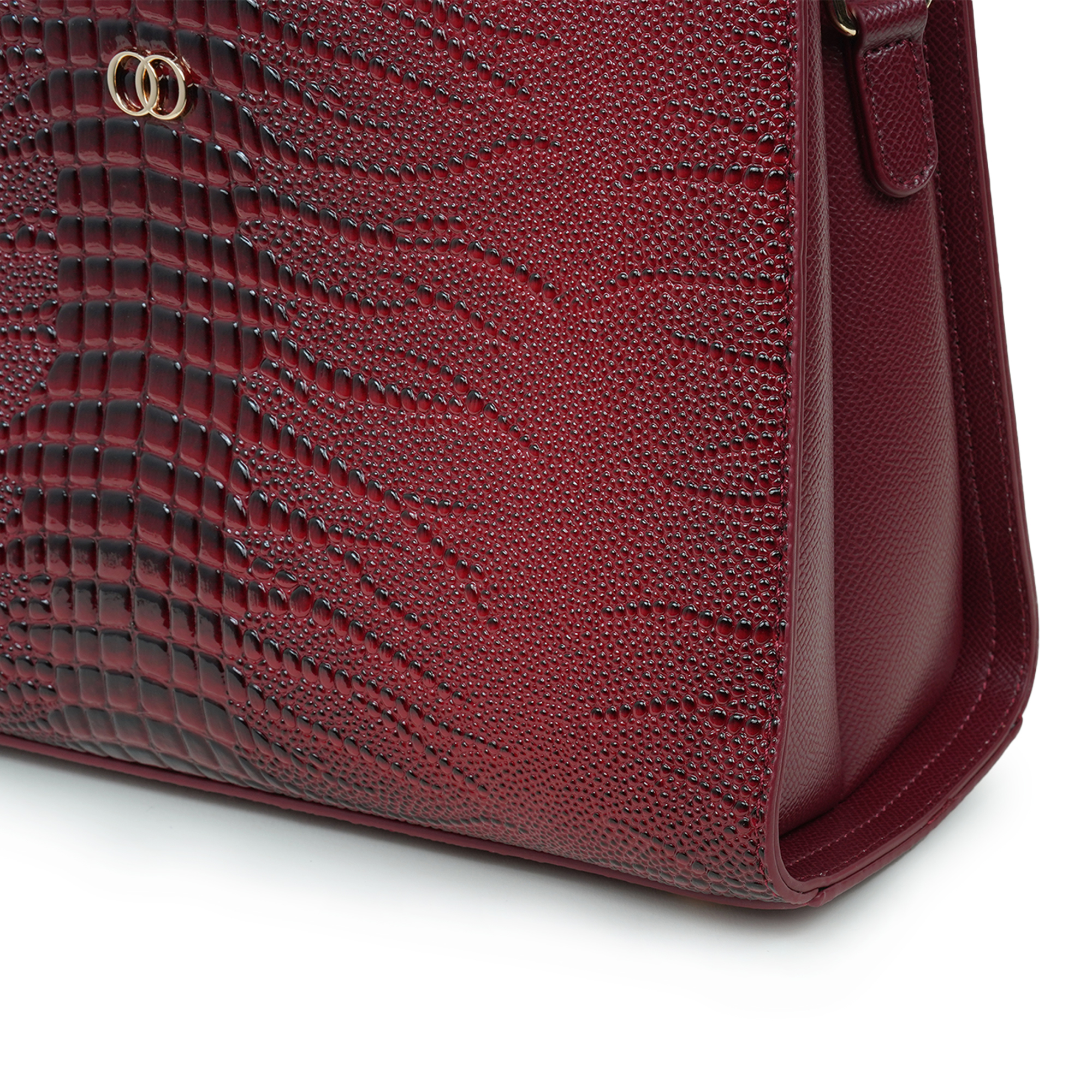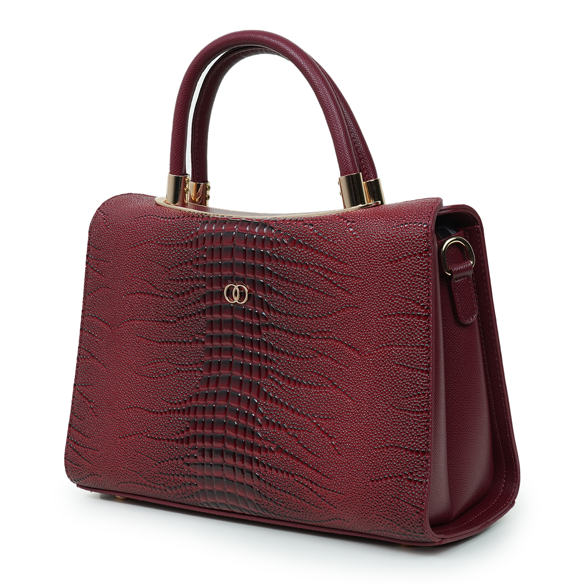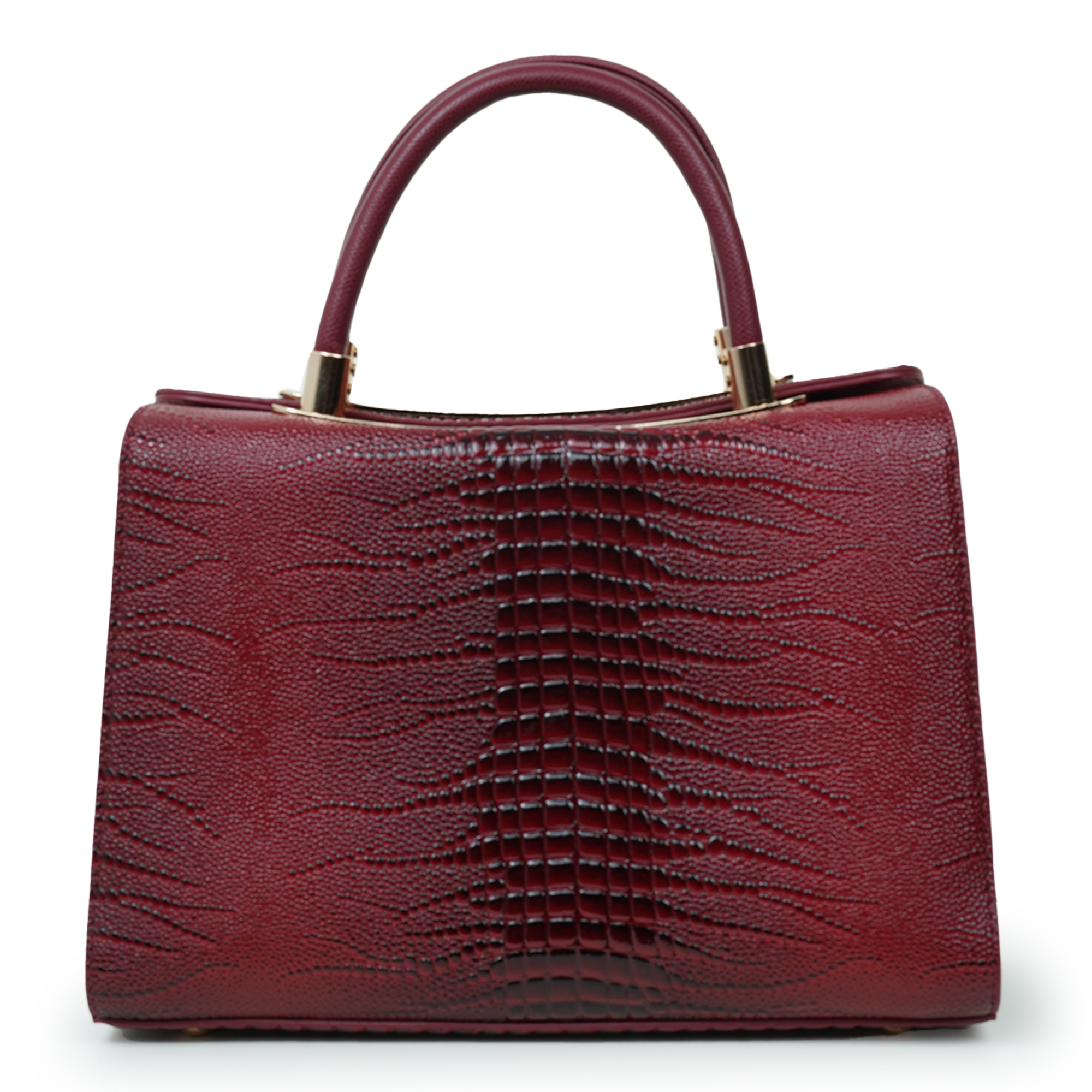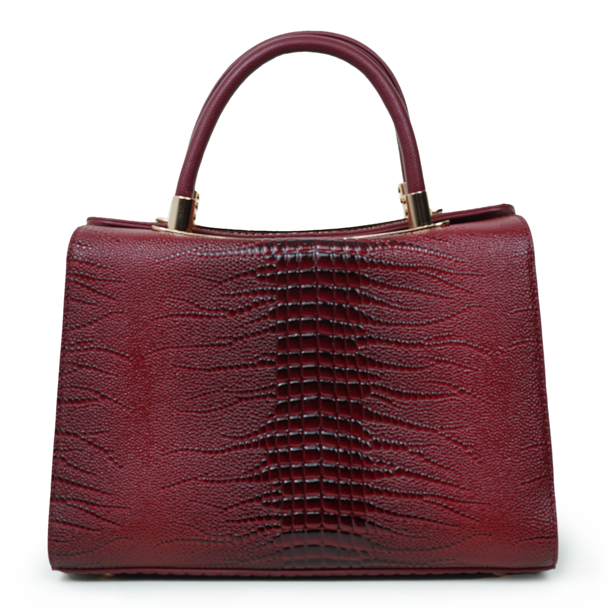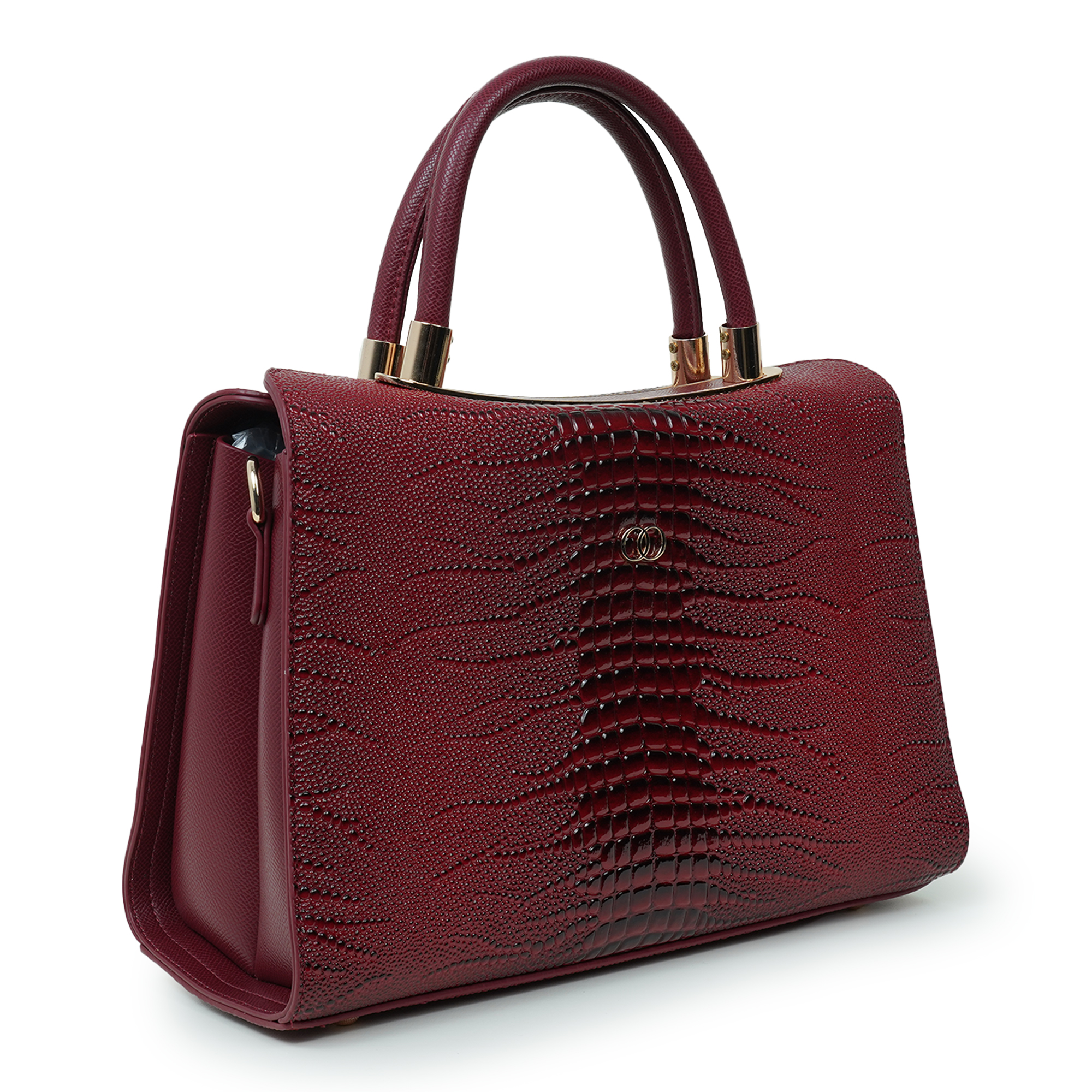 Stylish and sophisticated, this Moochie women’s handbag is designed to add a bold and elegant touch to your everyday look. Crafted from high-quality PU leather, the bag features a distinctive textured pattern that enhances its luxurious appeal. The rich maroon shade paired with subtle gold-tone hardware creates a striking yet refined appearance, making it perfect for both formal occasions and casual outings. Its structured silhouette helps keep your belongings organized while maintaining a polished shape. The comfortable dual top handles ensure easy carrying, while the spacious interior provides room for essentials such as your phone, wallet, cosmetics and accessories.