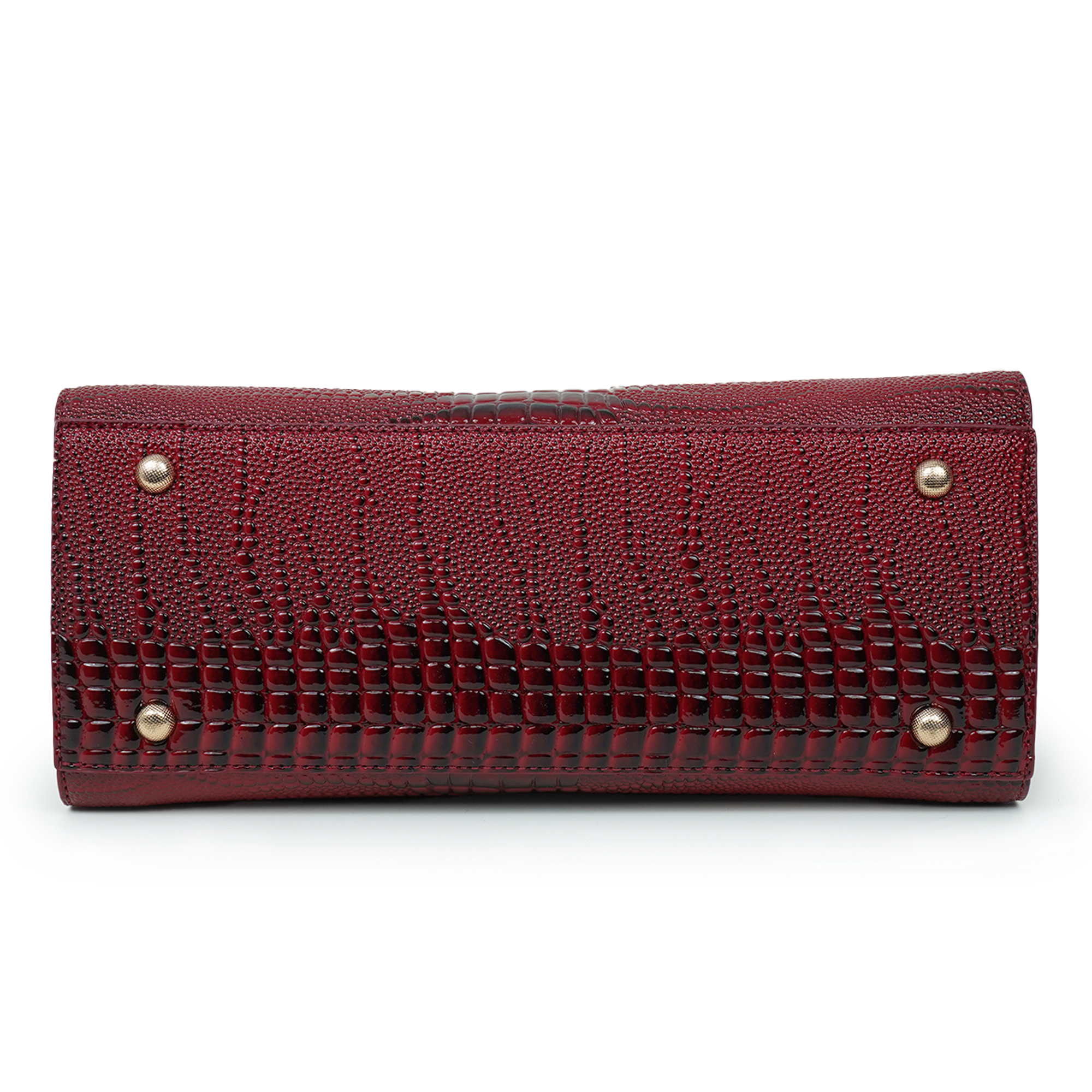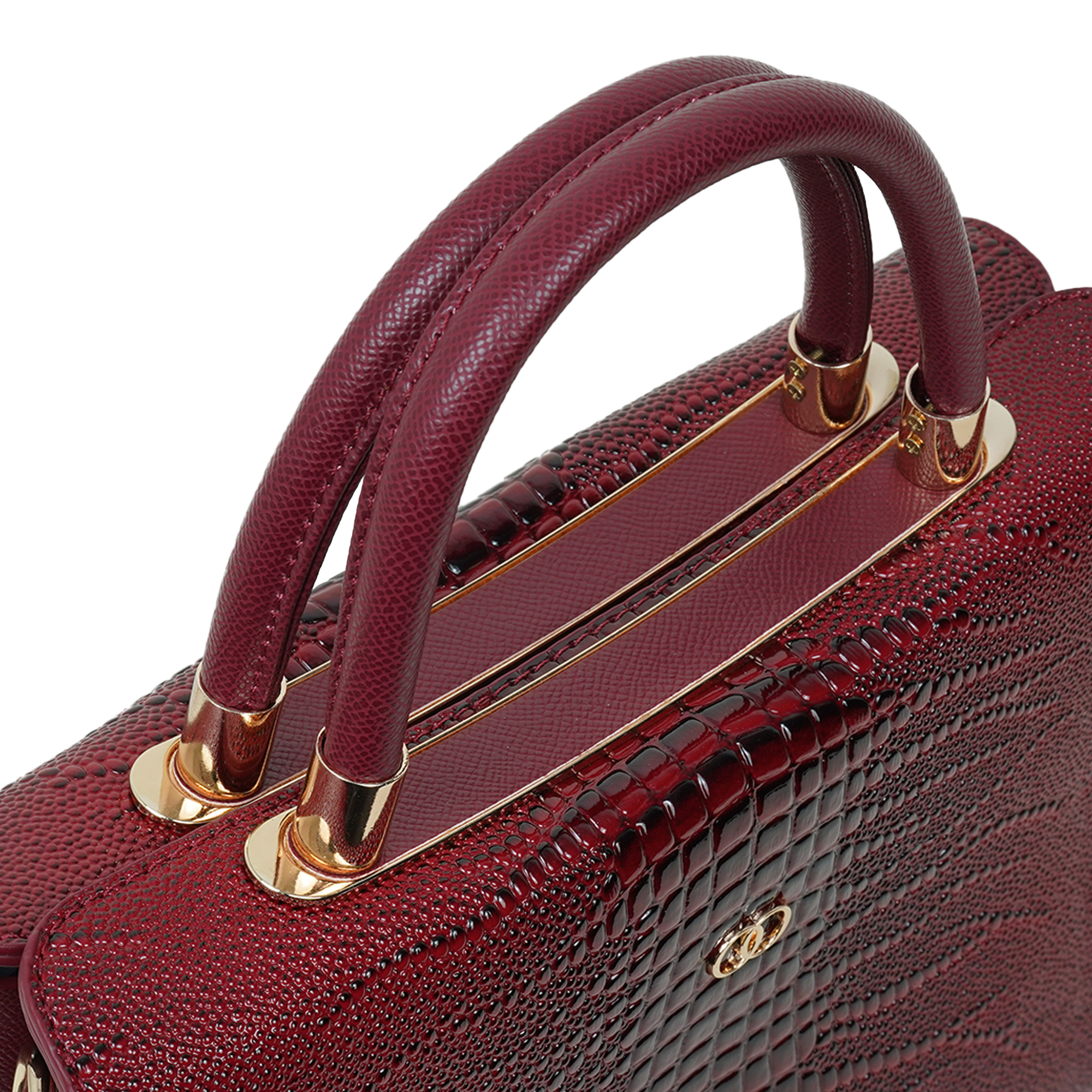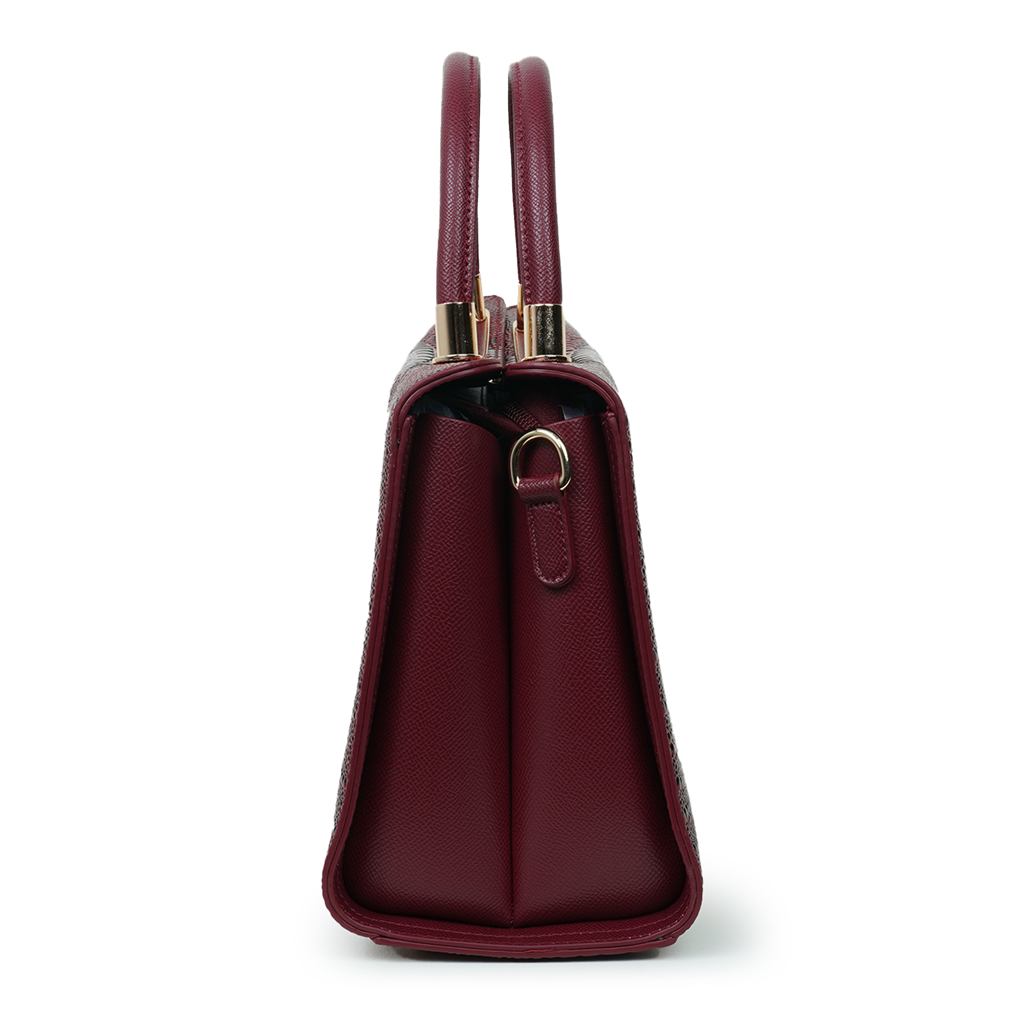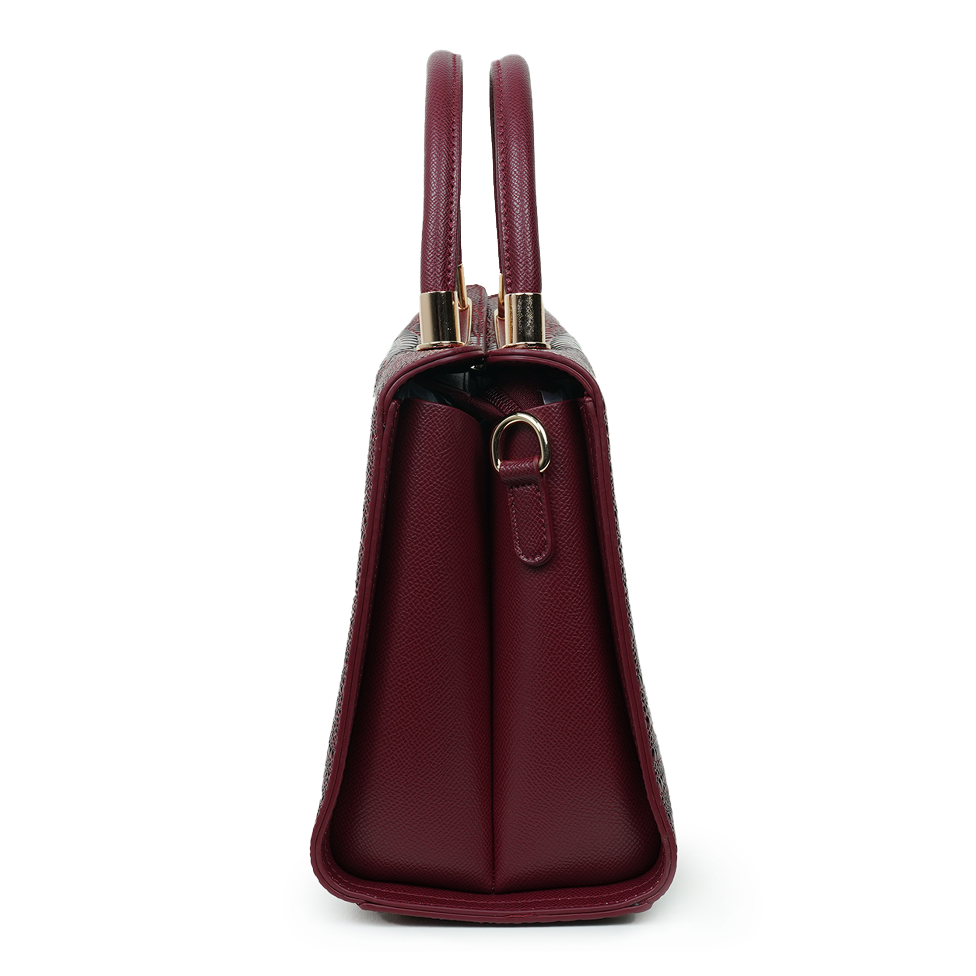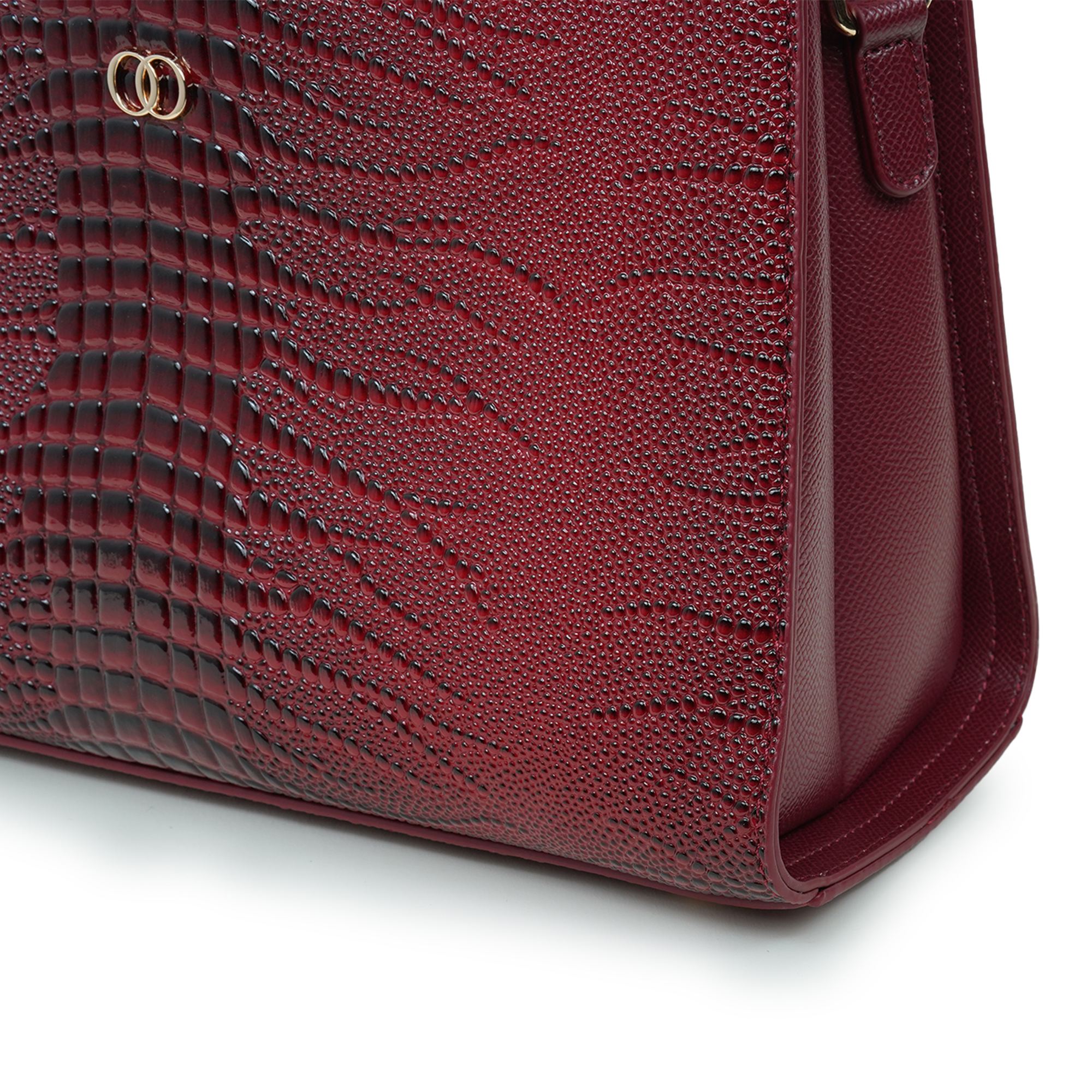 Stylish and sophisticated, this Moochie women’s handbag is designed to add a bold and elegant touch to your everyday look. Crafted from high-quality PU leather, the bag features a distinctive textured pattern that enhances its luxurious appeal. The rich maroon shade paired with subtle gold-tone hardware creates a striking yet refined appearance, making it perfect for both formal occasions and casual outings. Its structured silhouette helps keep your belongings organized while maintaining a polished shape. The comfortable dual top handles ensure easy carrying, while the spacious interior provides room for essentials such as your phone, wallet, cosmetics and accessories.