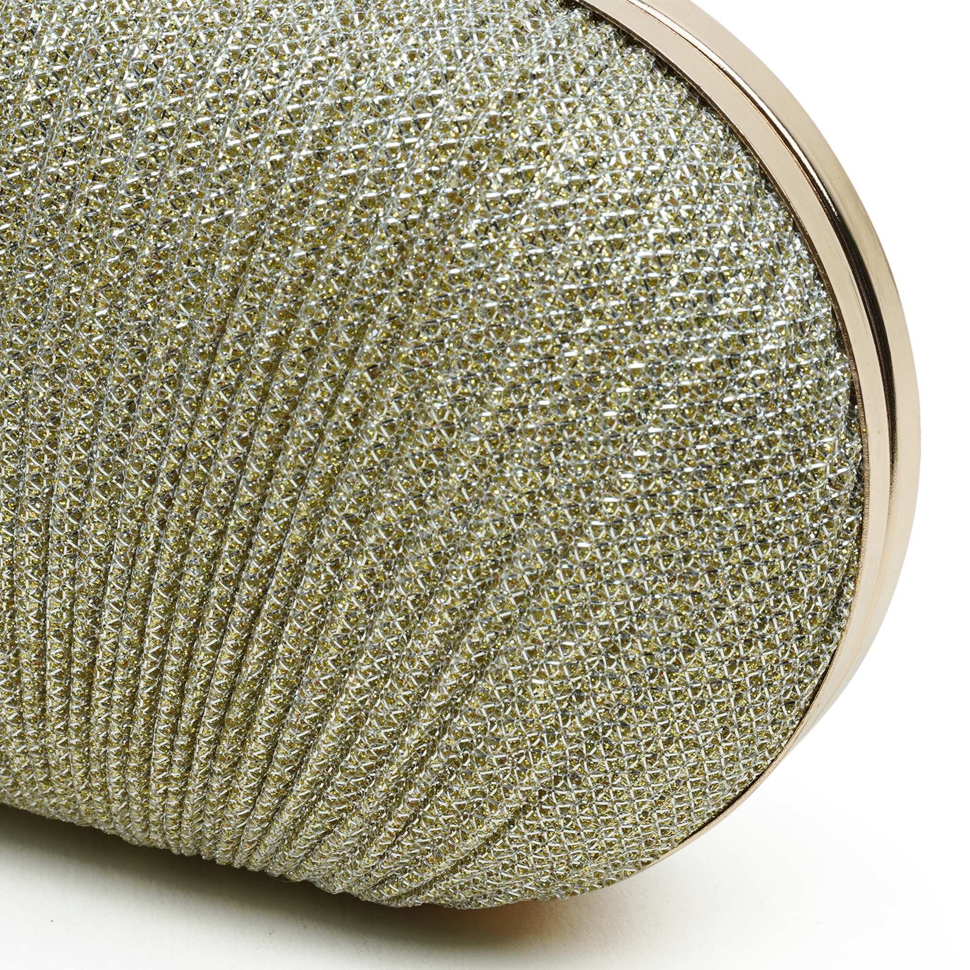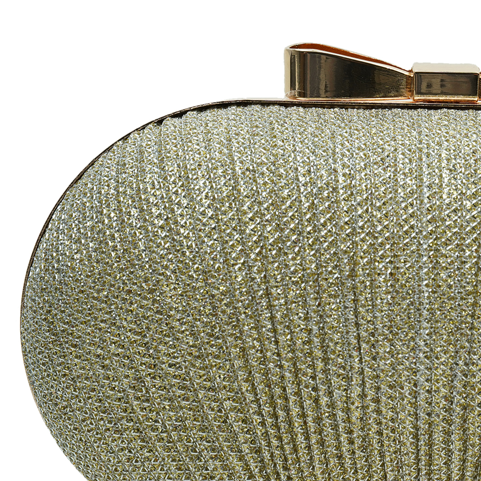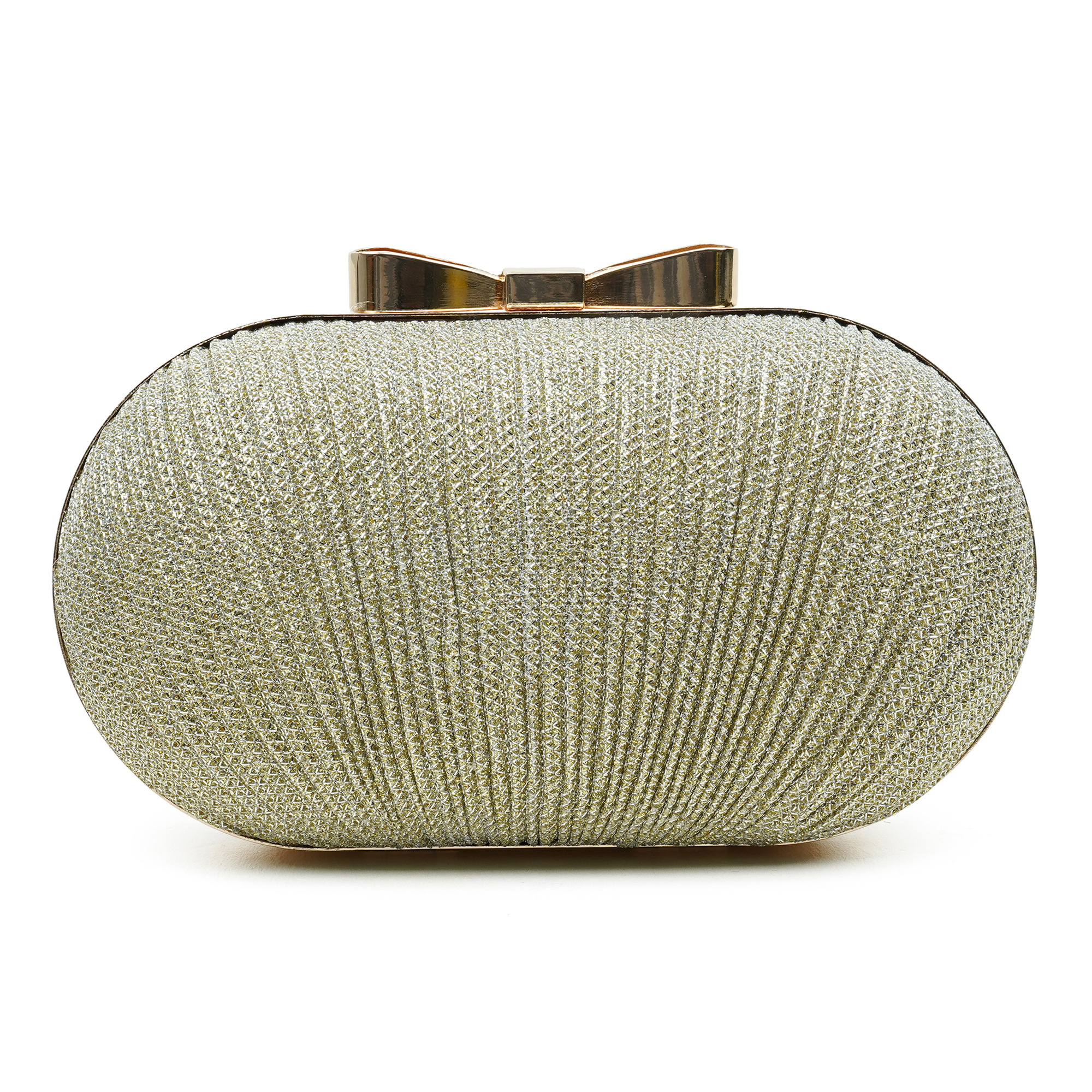 Make a stunning statement with this Moochie women’s clutch, designed to add elegance and glamour to your special occasions. Featuring a shimmering textured finish and a stylish metallic frame with a bow detail, this clutch perfectly blends sophistication with modern charm. Compact yet spacious enough for essentials, it’s the ideal accessory for parties, weddings and evening events.