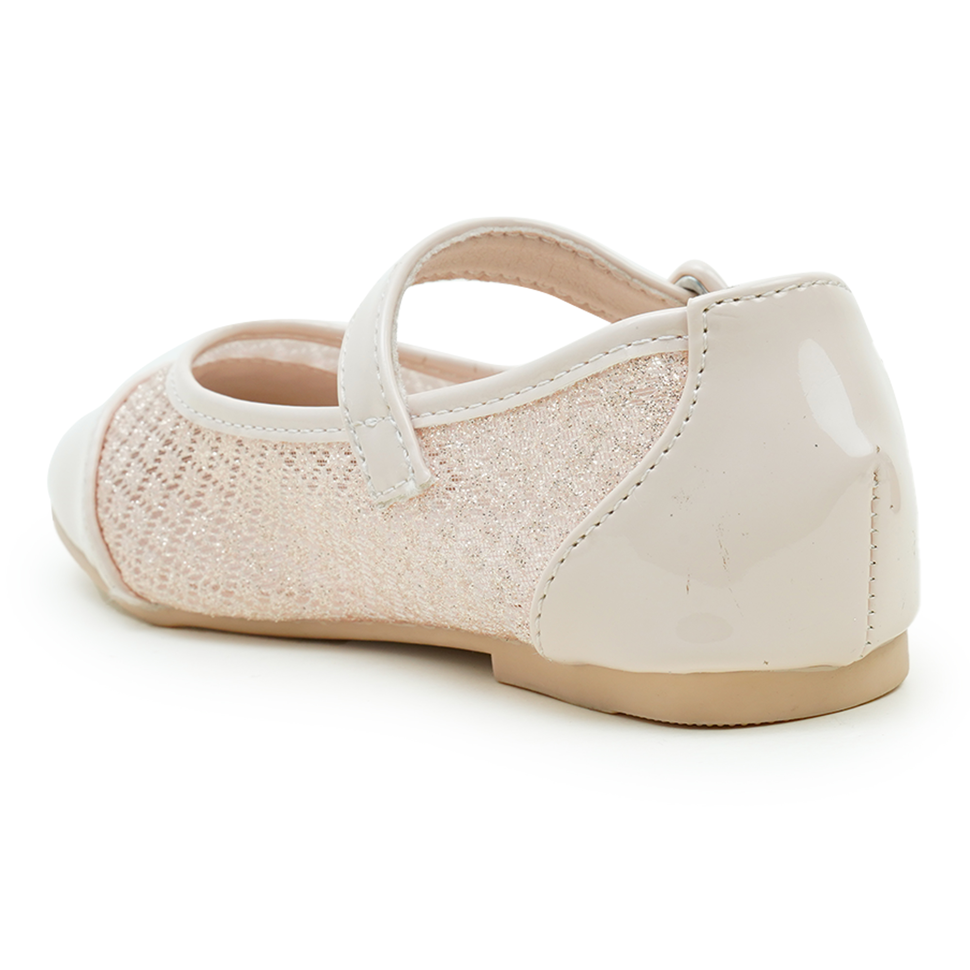Let your little one shine with the elegant Twinkler Girls Pump Shoes in beautiful light brown tones with a subtle shimmer finish. Crafted with a PU + mesh upper, this stylish pump offers a soft feel with breathable comfort. The adjustable strap with buckle ensures a secure fit, while the durable TPR sole provides flexibility and steady grip for confident steps. Perfect for parties, school programs, family events and festive occasions, these pumps combine charm and comfort effortlessly.