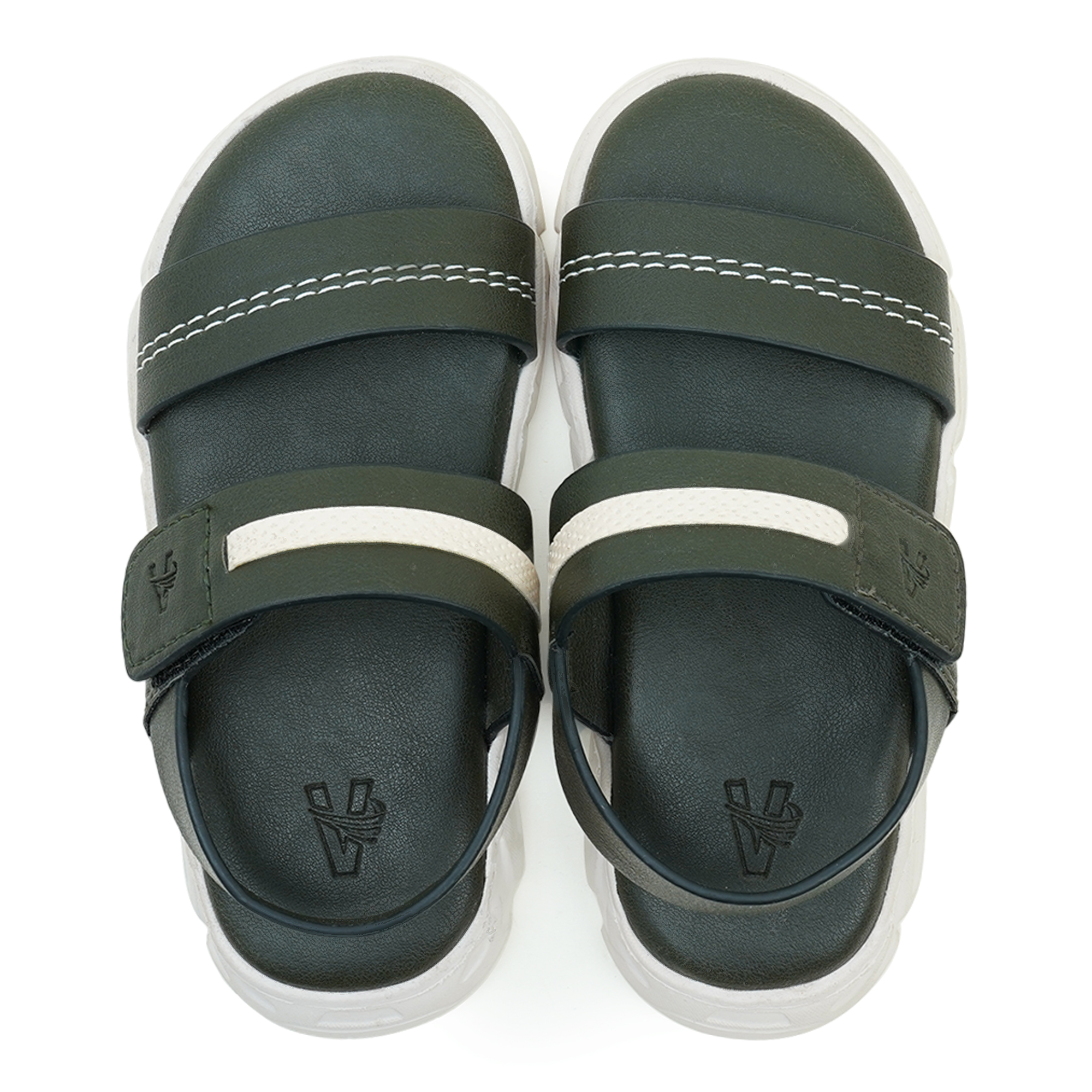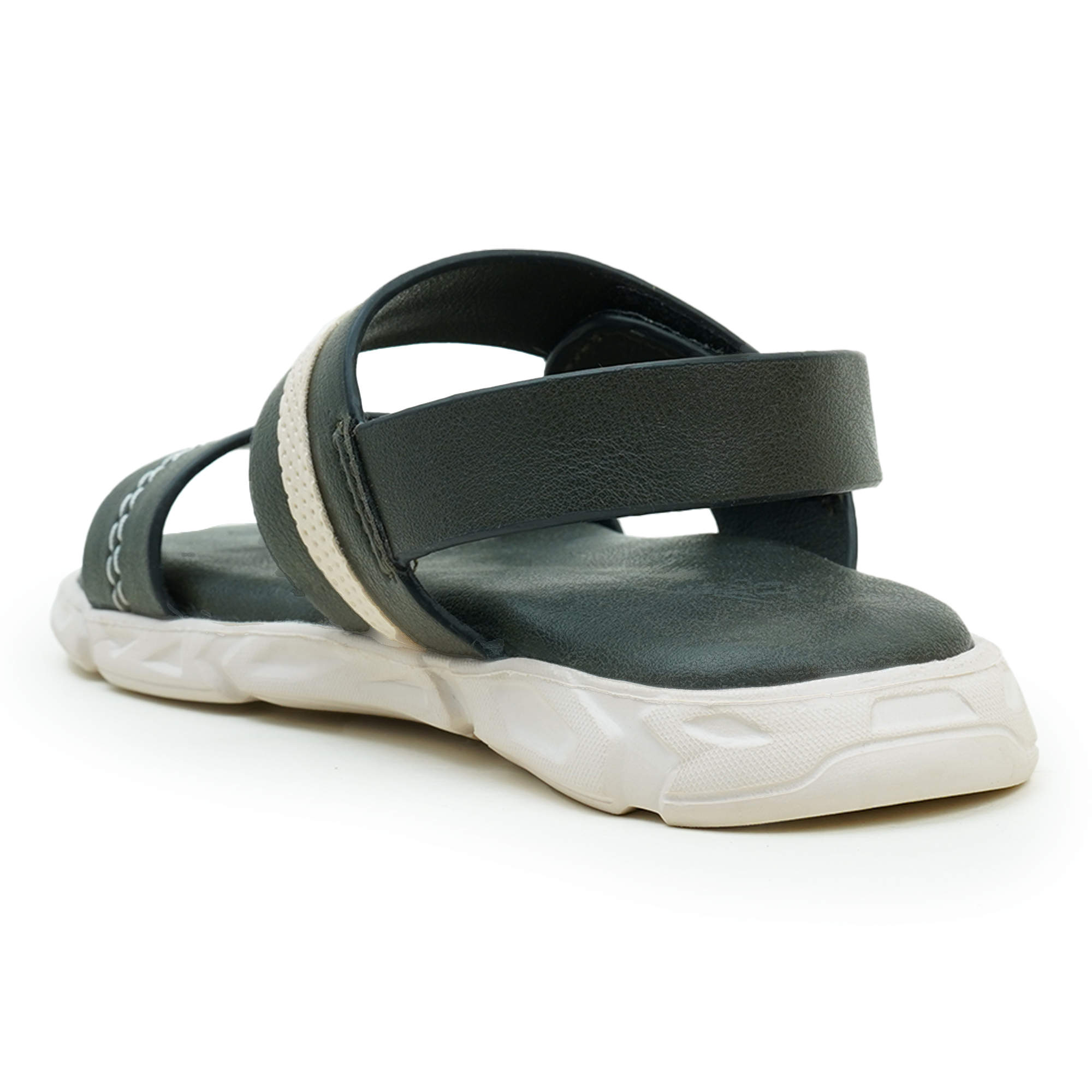 Stay comfortable and stylish with the Twinkler Kids Sandal in trendy olive. Made with a durable PVC upper and matching PVC sole, this sandal is lightweight, flexible, and easy to maintain. The dual-strap design with an adjustable hook-and-loop closure ensures a secure fit, while the cushioned footbed provides everyday comfort. The contrast white stitching and stripe detail add a sporty touch, making it perfect for casual outings, playtime and daily wear.