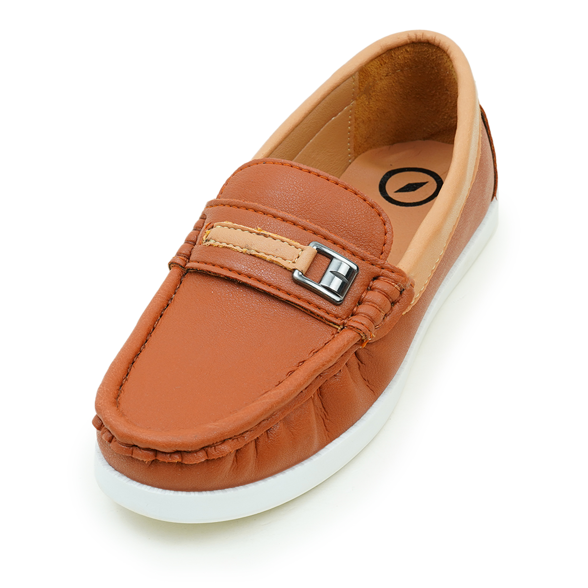 Add a smart touch to your child’s everyday style with the Twinkler Tan color Kids Moccasin Shoes. Designed with a smooth upper and classic hand-stitched detailing, this slip-on shoe offers both comfort and a polished look. The lightweight PVC sole ensures flexibility and steady grip, making it suitable for school, outings and family occasions. The stylish metal accent enhances the overall design, giving a refined casual finish that pairs easily with both traditional and western outfits.