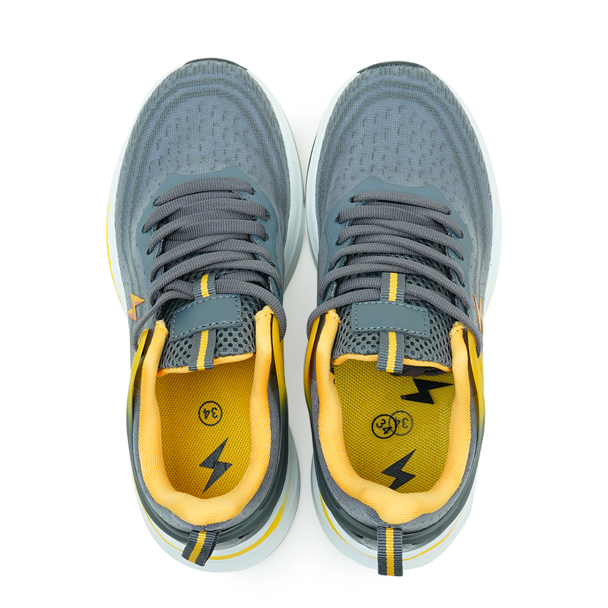 The Twinkler Kids Sneaker in grey combines sporty design with everyday comfort, making it perfect for active kids. Crafted with a breathable Flyknit upper, this sneaker keeps little feet cool while providing a flexible and snug fit. The lace-up design ensures a secure hold, while the padded collar and soft inner lining add extra comfort for all-day wear. Its lightweight EVA midsole paired with a durable TPR outsole offers excellent cushioning, flexibility and grip, making it suitable for school, playtime, and casual outings.