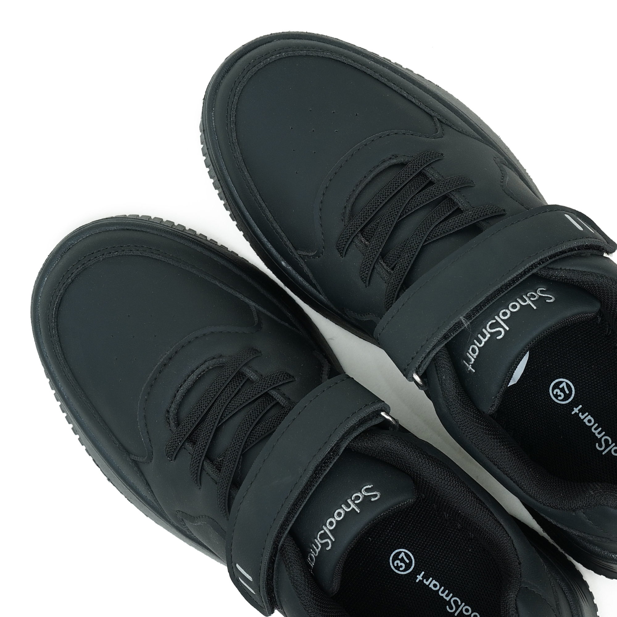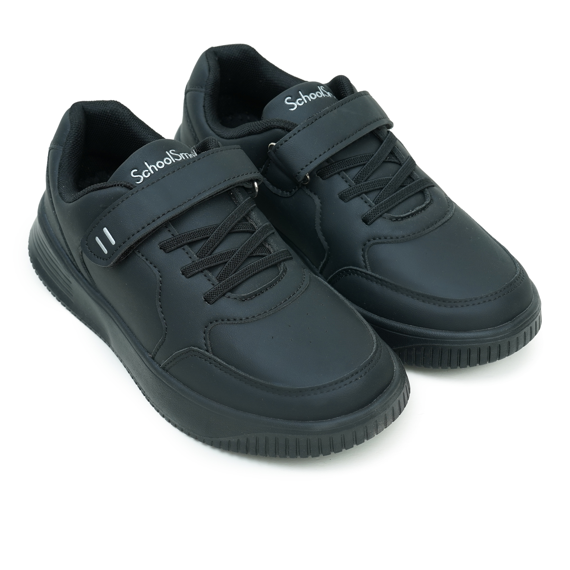 Designed for comfort, durability and everyday school activities, the School Smart Black Unisex School Shoes are a practical choice for active students. Made with a high-quality PU upper and a lightweight EVA sole, these shoes provide excellent flexibility, support, and long-lasting performance throughout the school day. The classic black design easily complements school uniforms for both boys and girls. A lace-up front combined with a convenient strap closure ensures a secure and adjustable fit for growing feet. Built for daily school routines, these kids’ school shoes maintain their shape and color even after regular use, making School Smart a dependable option for everyday school footwear.