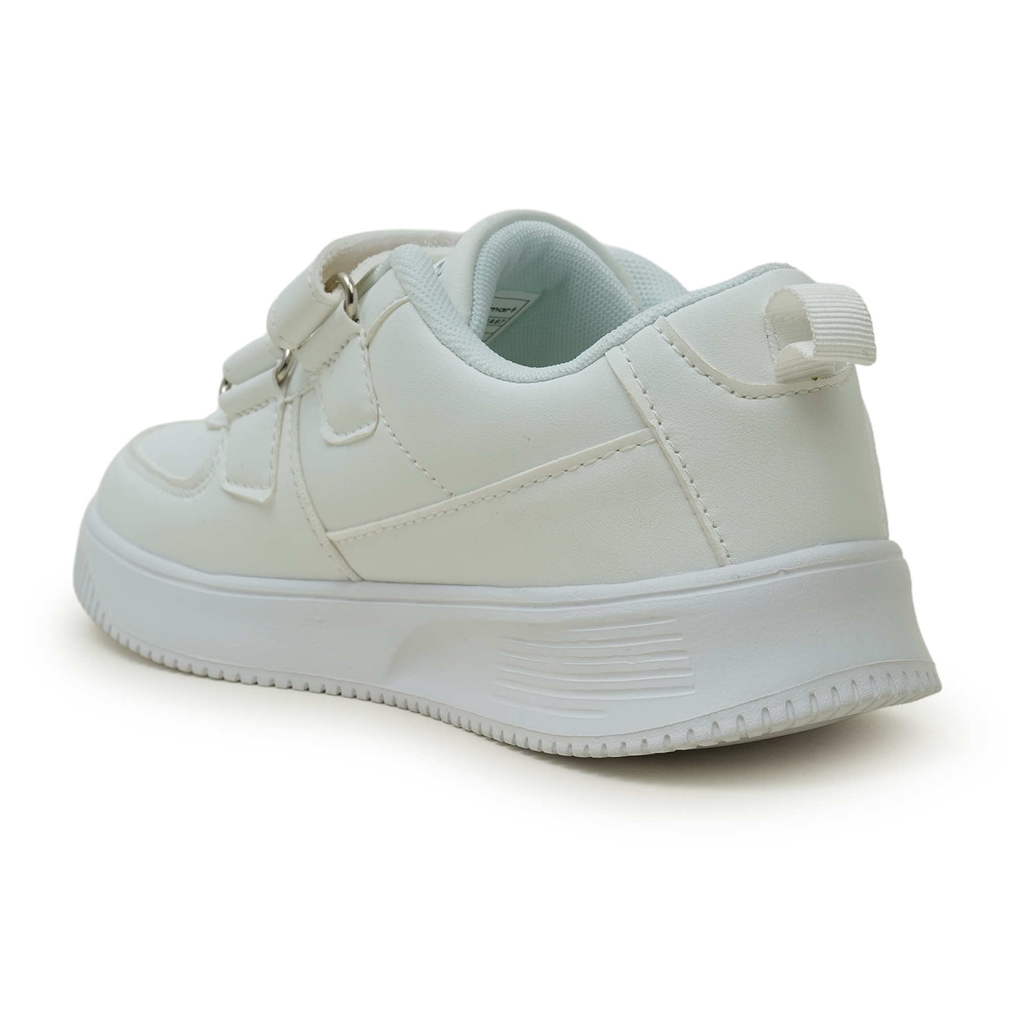 Made to support active school routines, the School Smart White Kids School Shoes combine comfort, durability, and a clean uniform-friendly look. The sturdy PU upper offers long-lasting performance, while the lightweight EVA sole provides flexibility and cushioning for all-day comfort. Dual hook-and-loop straps make it easy for kids to put on and remove the shoes while ensuring a secure and adjustable fit. The neat white finish keeps students looking tidy and school-ready throughout the day. Built to handle daily activities, these shoes maintain their shape, support and comfort even with regular wear, making them a practical choice for both boys and girls.