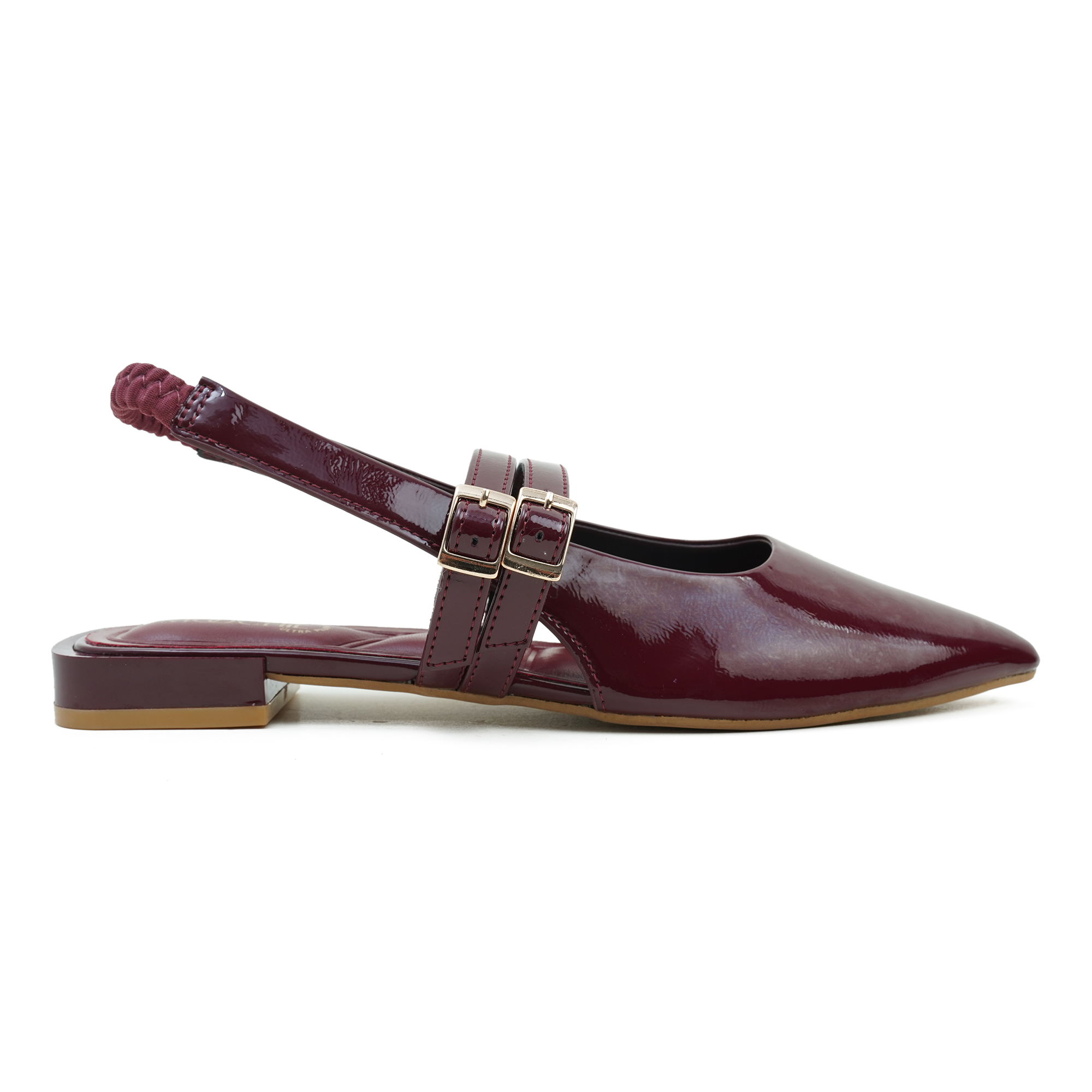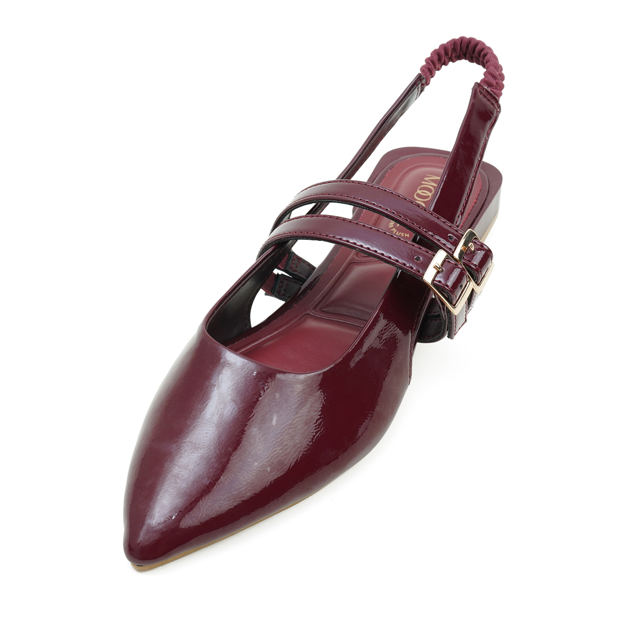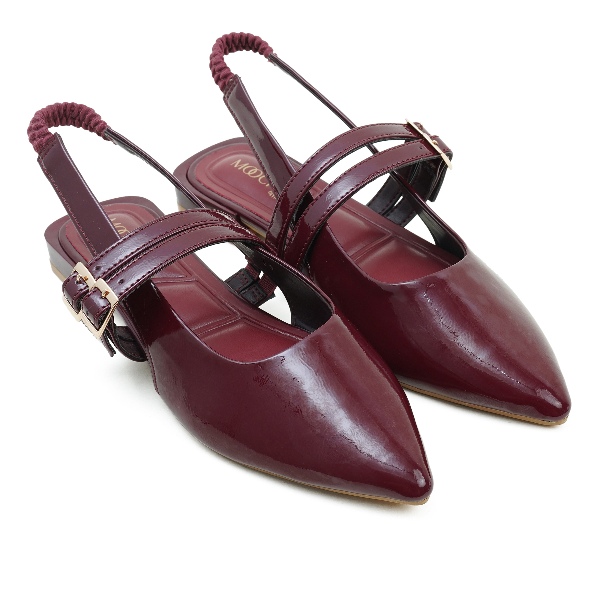 A statement of elegance and quiet confidence, the MOOCHIE Women’s Pump in rich wine is designed for women who express their individuality with grace. Crafted with a glossy PU upper, its sleek pointed toe and refined double-strap detail create a silhouette that feels both modern and timeless. The adjustable buckle and elasticized slingback ensure a secure yet comfortable fit, while the cushioned insole offers lasting ease throughout the day. Whether styled for formal occasions or elevated everyday wear, this pair reflects sophistication, independence, and luxury in every step.