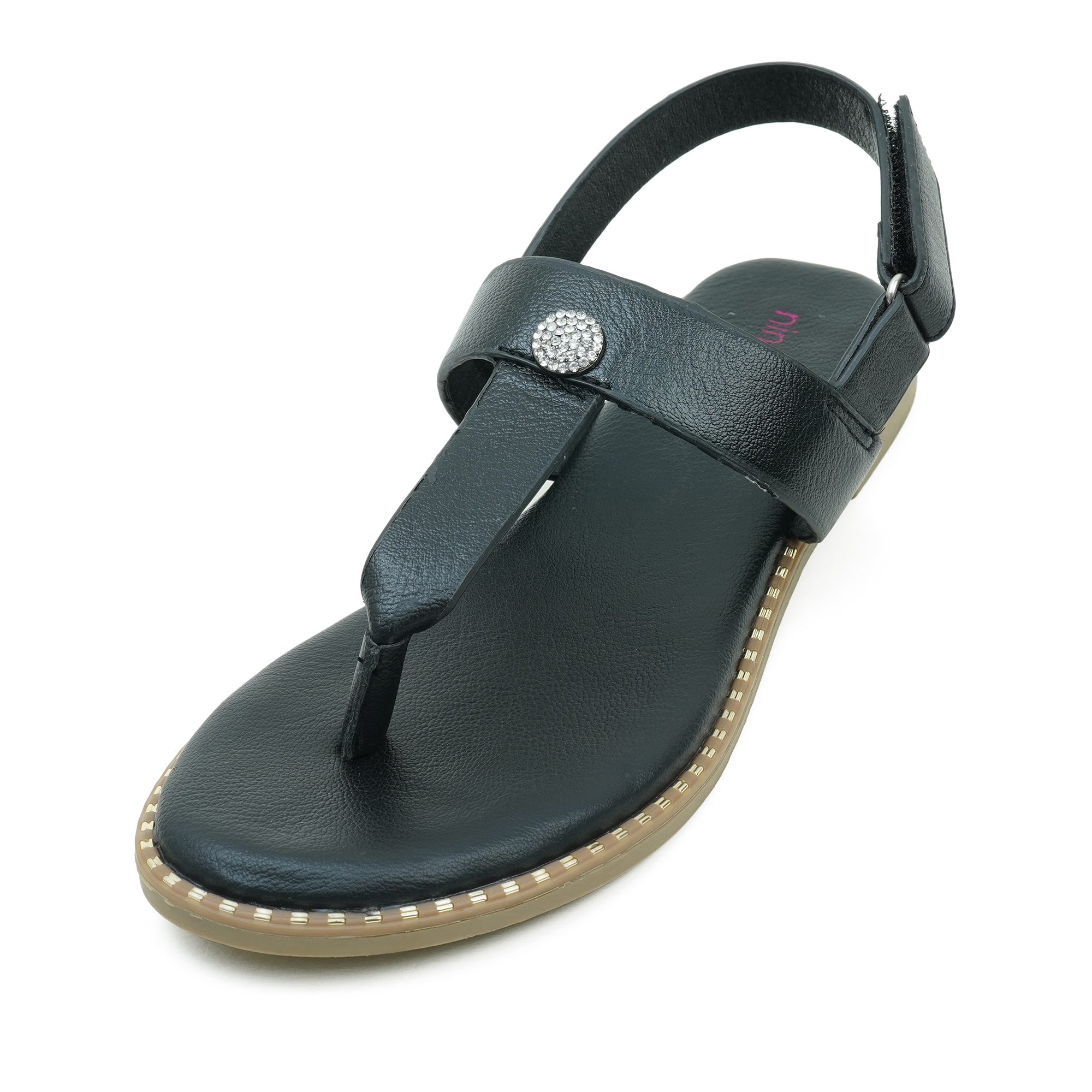 The Nino Rossi Women Sandal in Black is designed to combine elegance, comfort and everyday practicality. Crafted with a premium PU upper, this sandal features a sleek T-strap design with a decorative crystal accent that adds a touch of feminine charm. The adjustable back strap ensures a secure and comfortable fit, while the soft footbed supports natural movement for long hours of wear. Its lightweight and durable sole provides reliable grip and stability, making it ideal for daily use, casual outings, travel or summer wear. With its modern design and comfortable fit, this sandal offers the perfect balance of style, durability and all-day comfort.