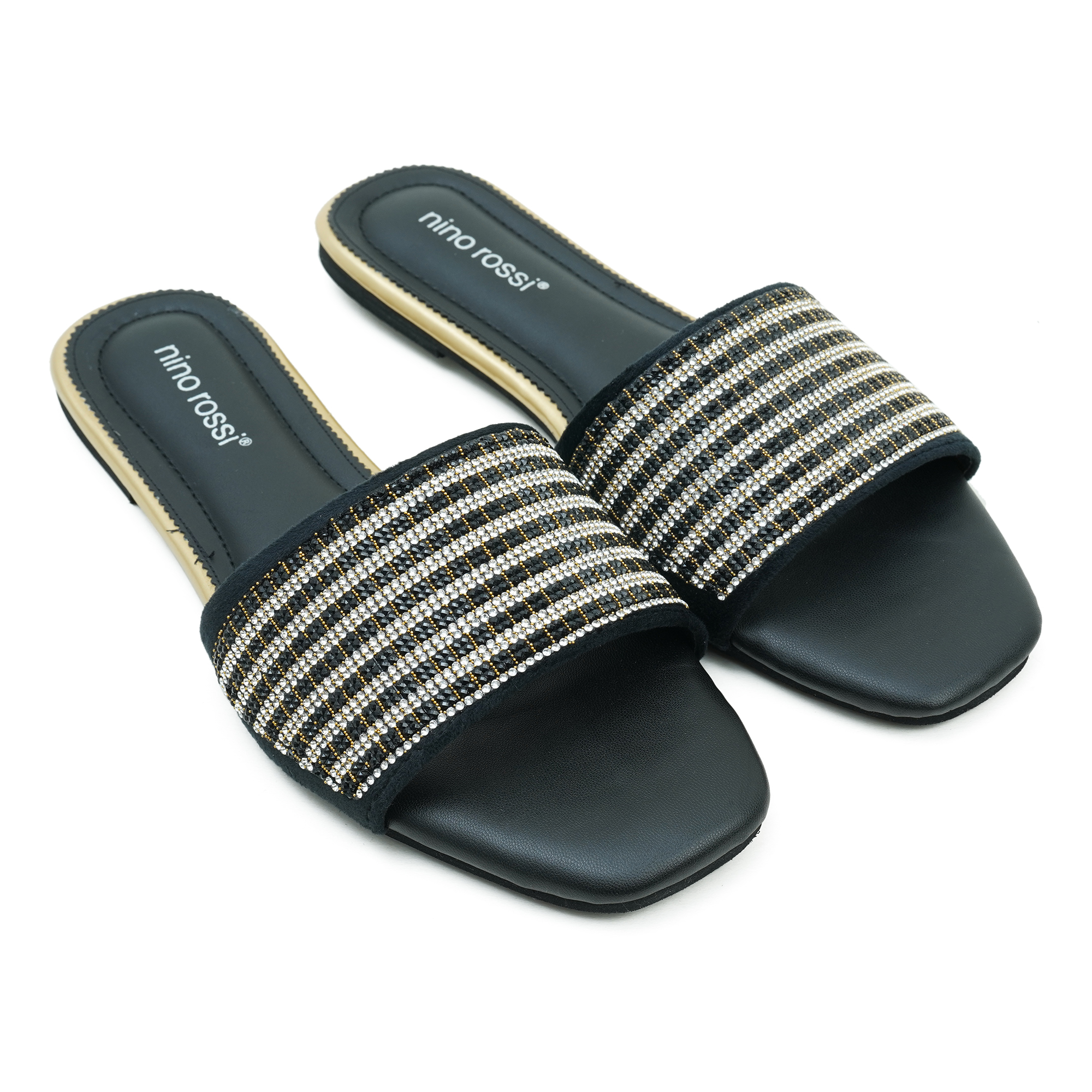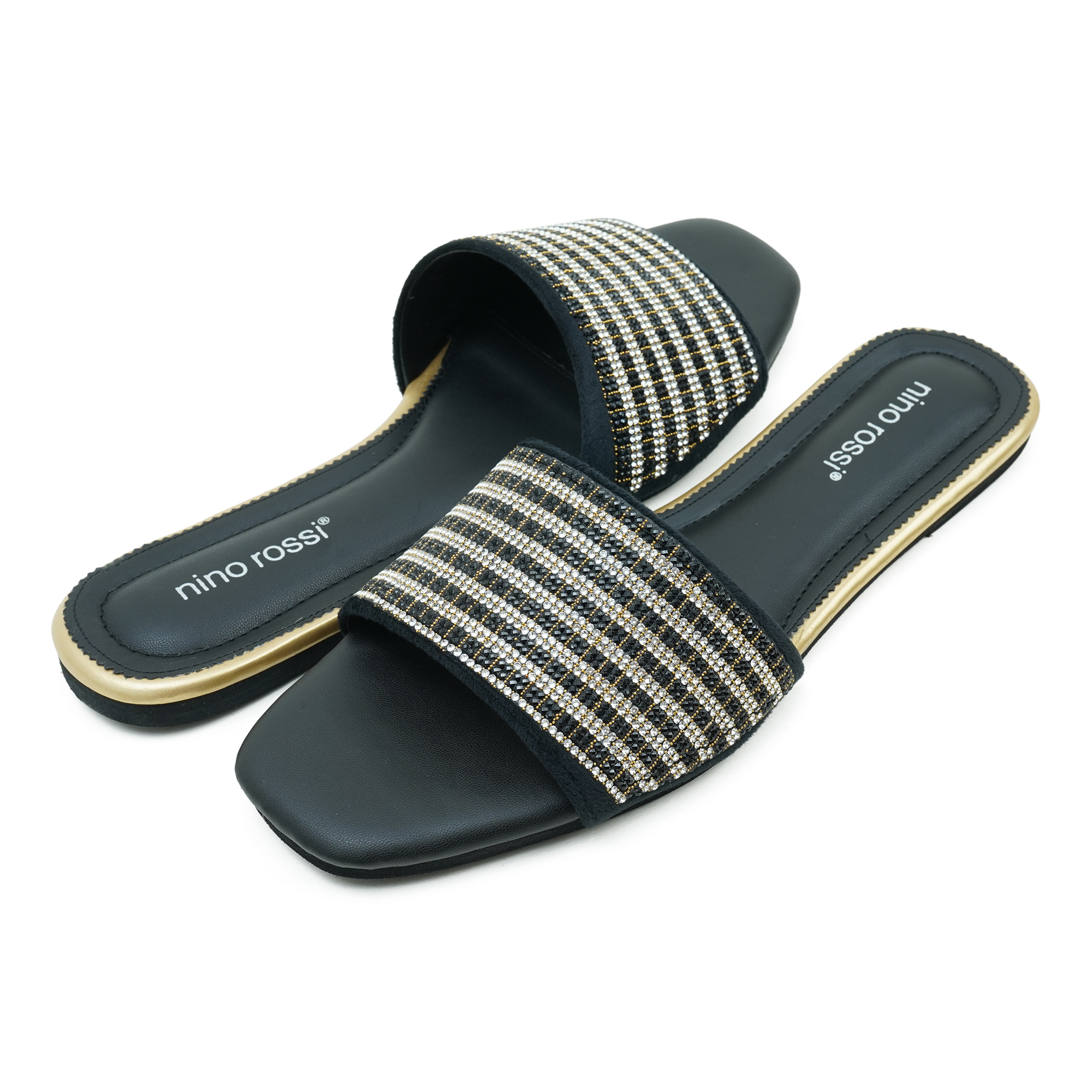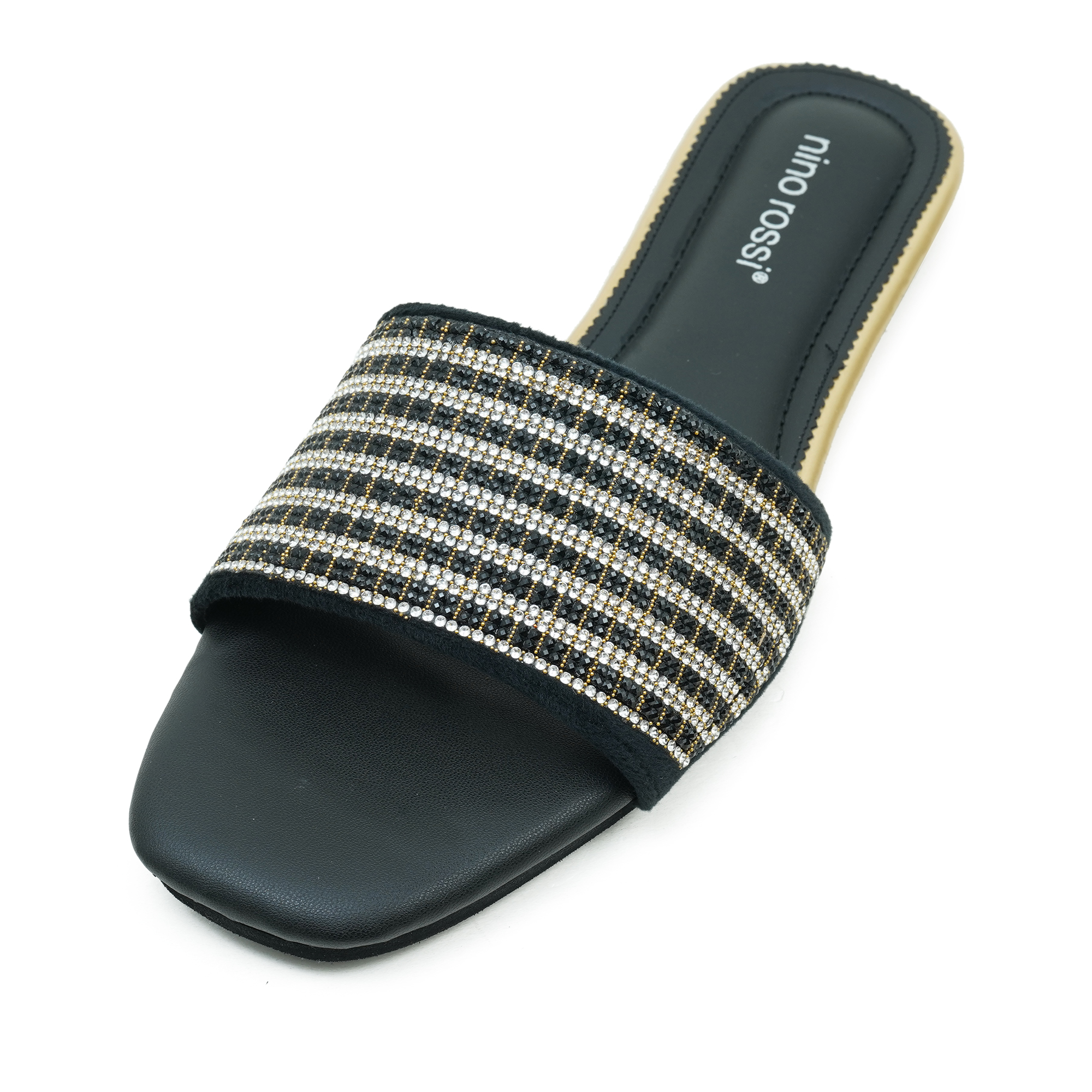 The Nino Rossi Women Black Color Sandal is designed to add a touch of elegance and sparkle to your everyday style. Made with premium PU material, this fashionable slide sandal features a wide strap decorated with shimmering rhinestones that create a chic and eye-catching look. The slip-on design makes it easy to wear, while the soft PU footbed ensures lasting comfort throughout the day. Its lightweight and durable sole provides stability and flexibility, making it perfect for casual outings, parties and daily wear.