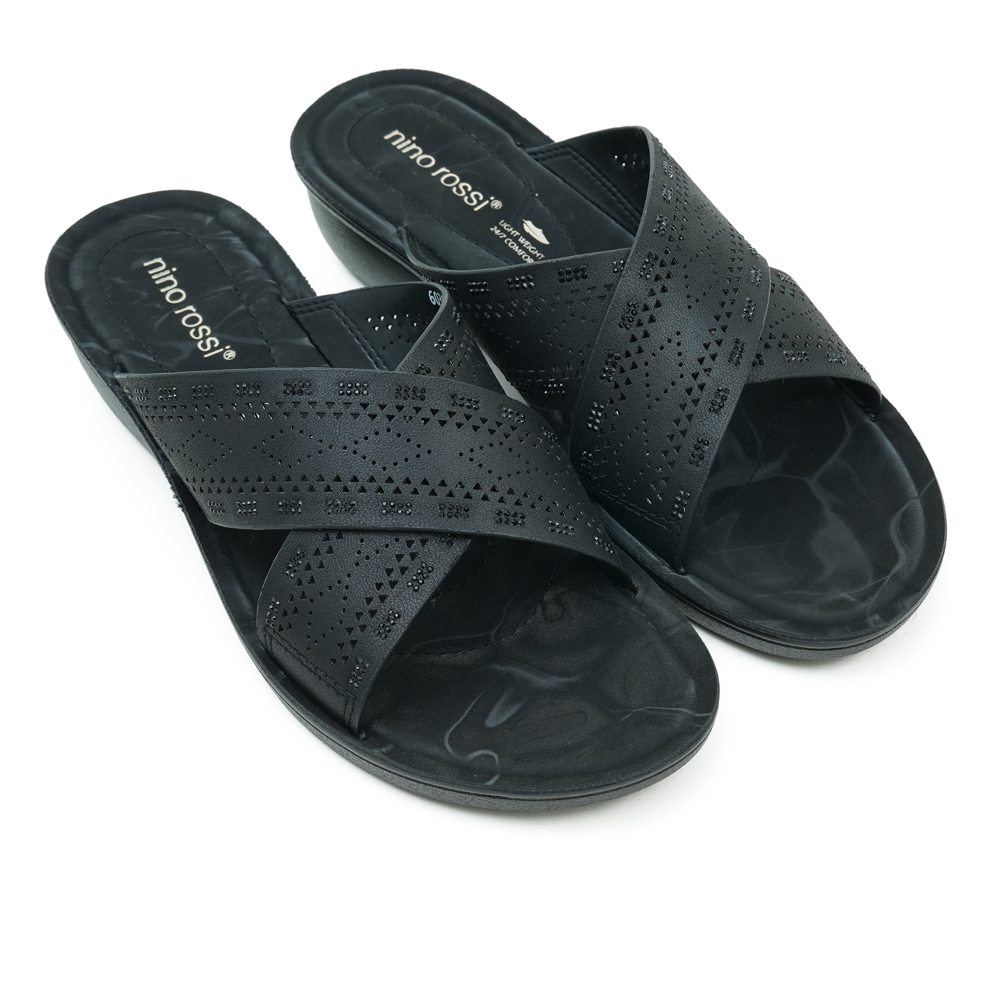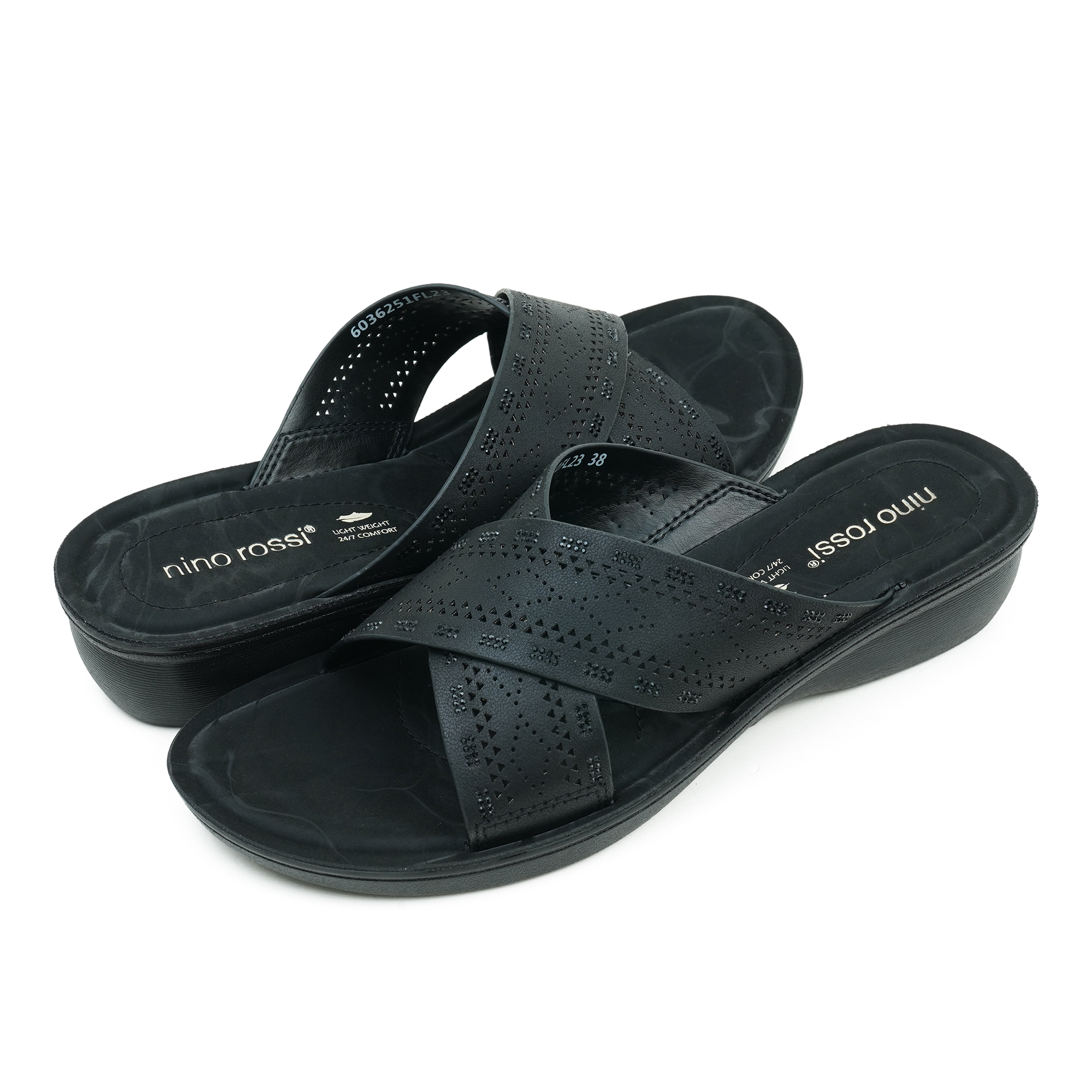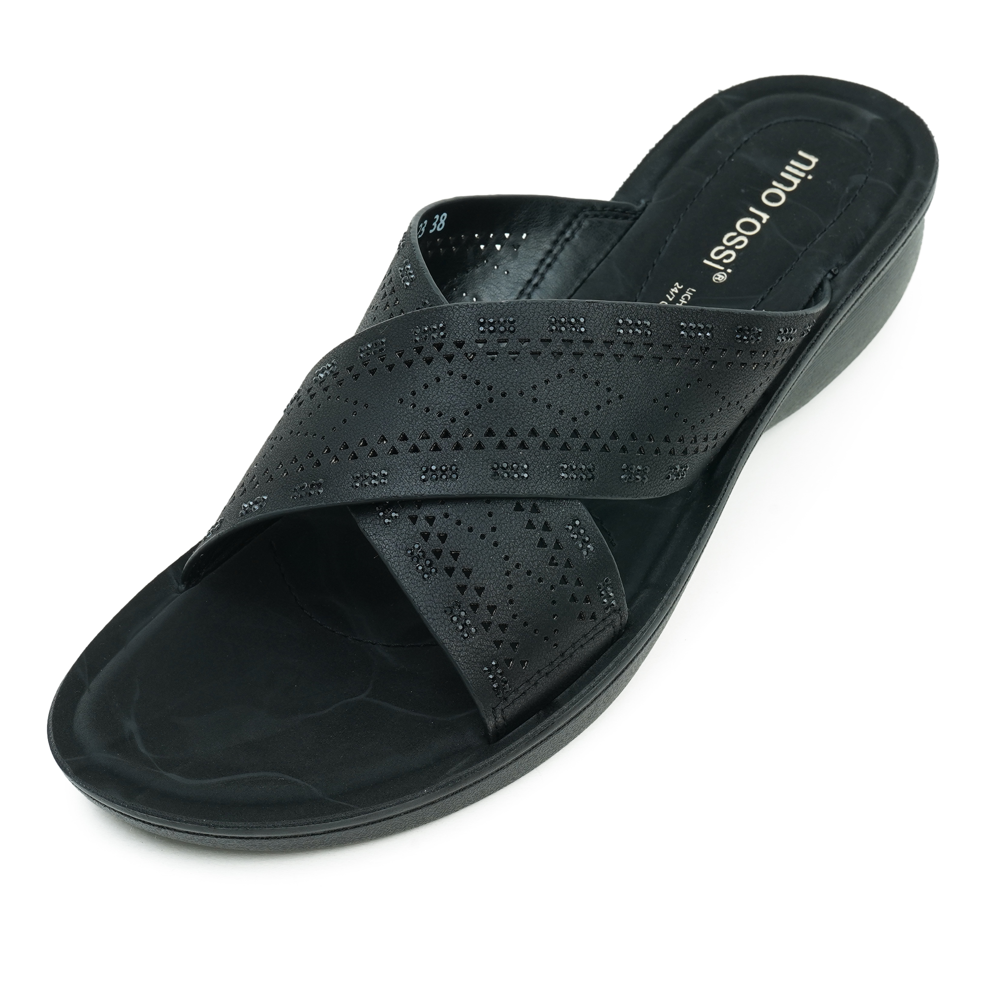 Confident, feminine, and thoughtfully designed, the Nino Rossi Women’s Slipper in Black reflects modern global style with everyday comfort. Crafted from quality PU materials, this slipper features elegant cross-strap detailing with subtle perforation that adds texture and character. The soft footbed offers a comfortable fit, supporting you through daily activities with ease. Designed for women who value acceptance, hope, and effortless fashion, this pair blends reassurance with refined style. With its durable PU sole and versatile black finish, it delivers dependable performance while complementing a wide range of casual looks.