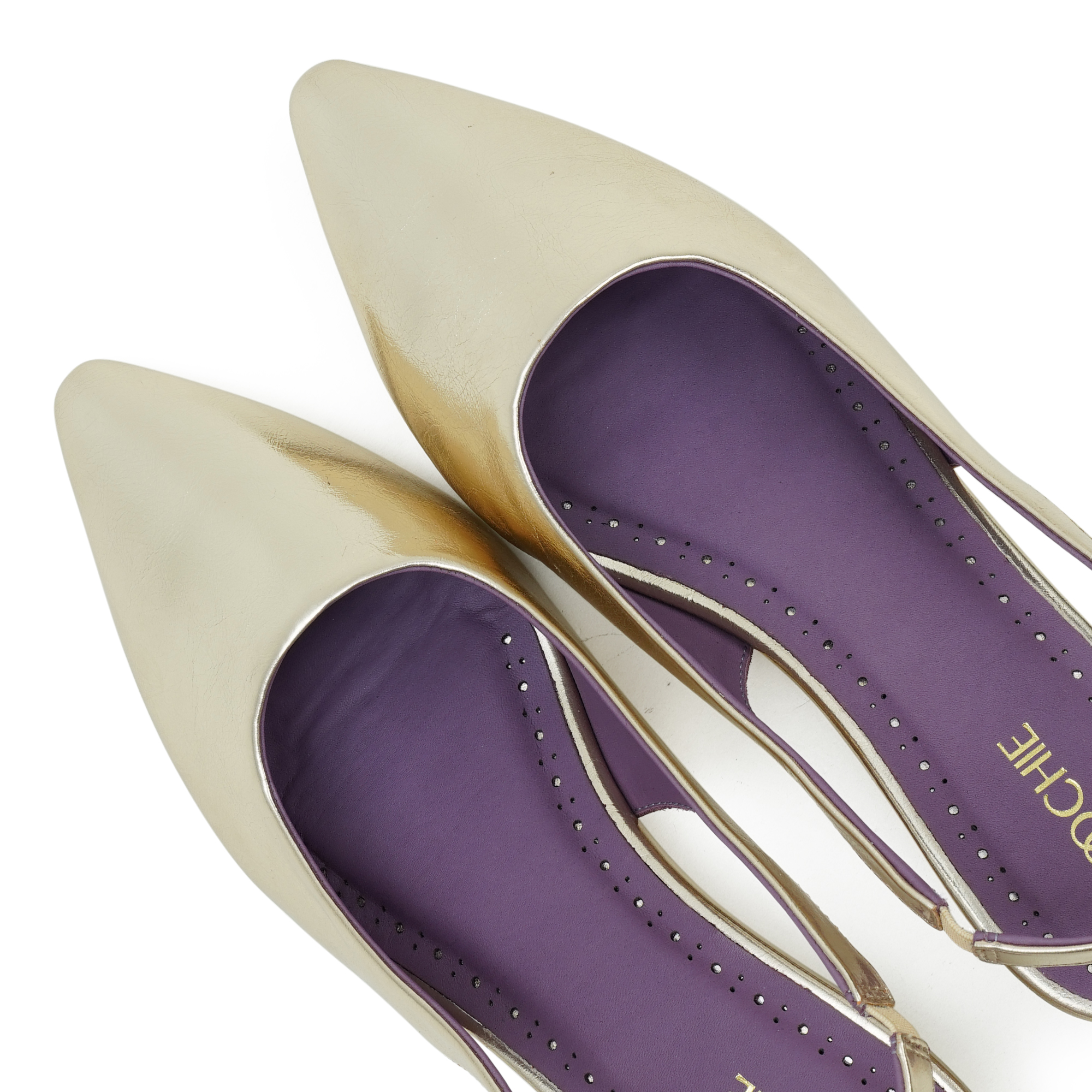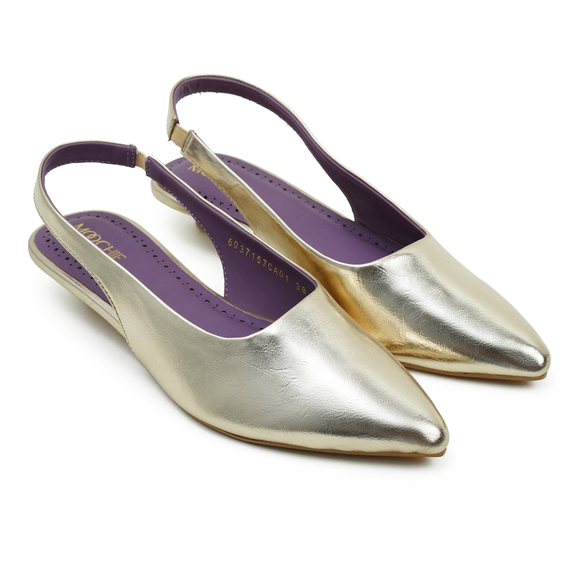 - Premium metallic gold upper for a glamorous look
