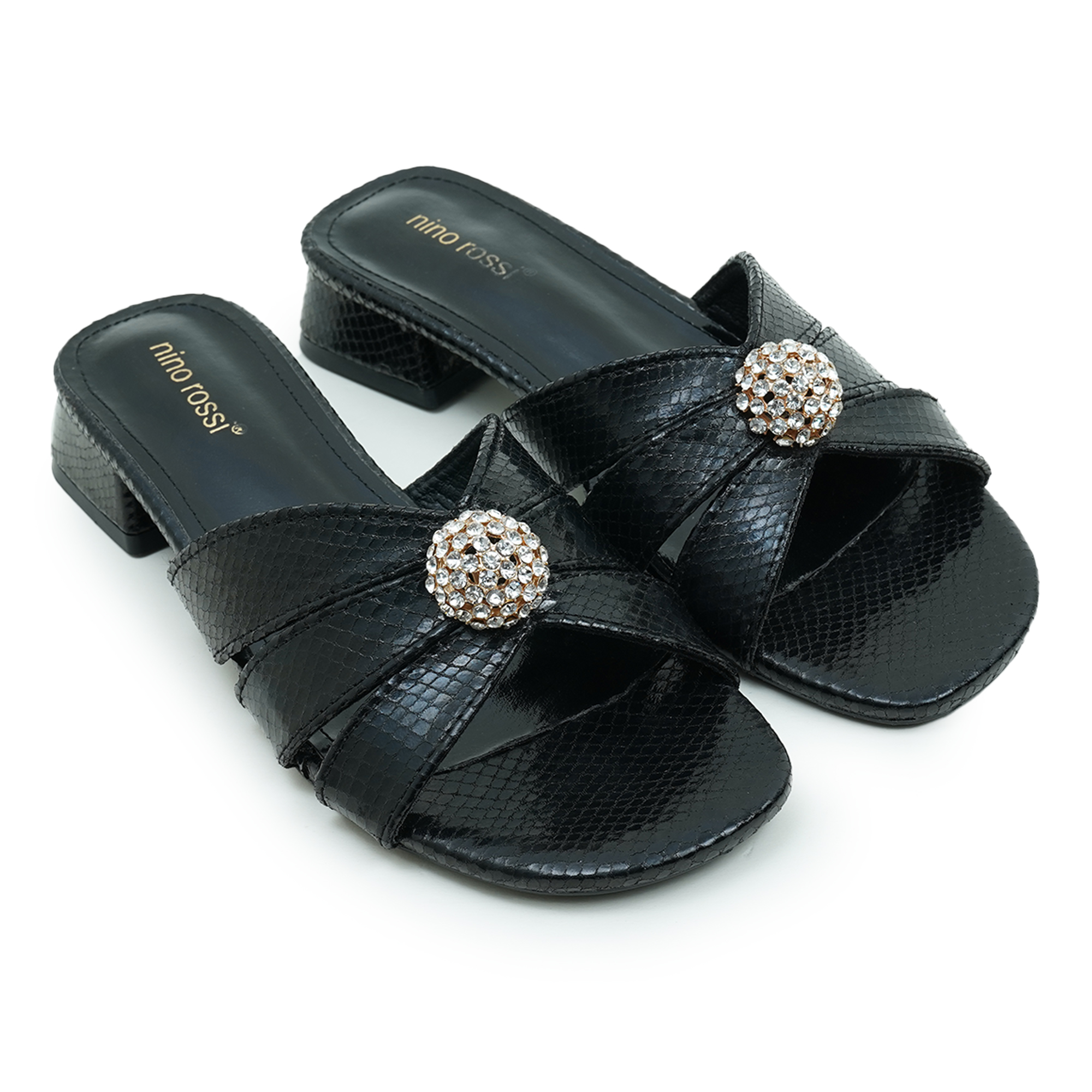 Enhance your look with the elegant Nino Rossi Women’s Black Block Heel Sandal, designed to blend sophistication with modern style. Featuring a textured PU upper and a sparkling crystal embellishment at the center, this sandal adds a refined touch to any outfit. The stylish cross-strap design offers a secure fit, while the comfortable block heel provides stability for all-day wear. Perfect for parties, festive occasions and evening outings, this ladies sandal delivers both comfort and timeless elegance.