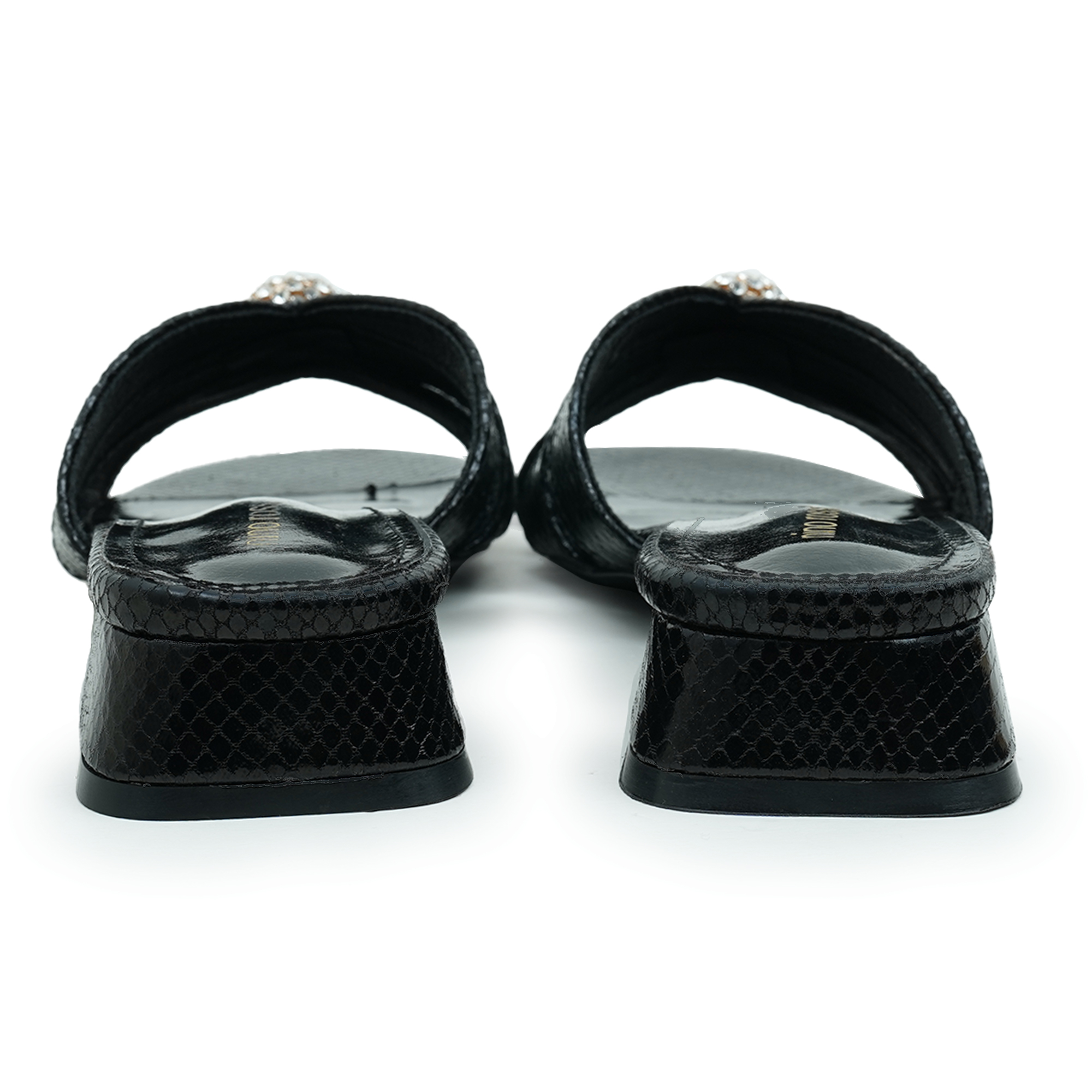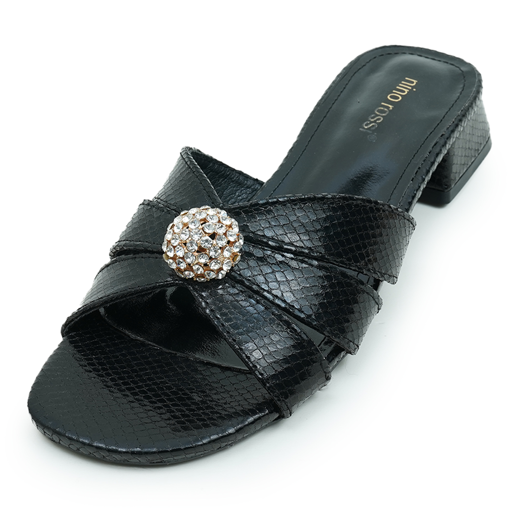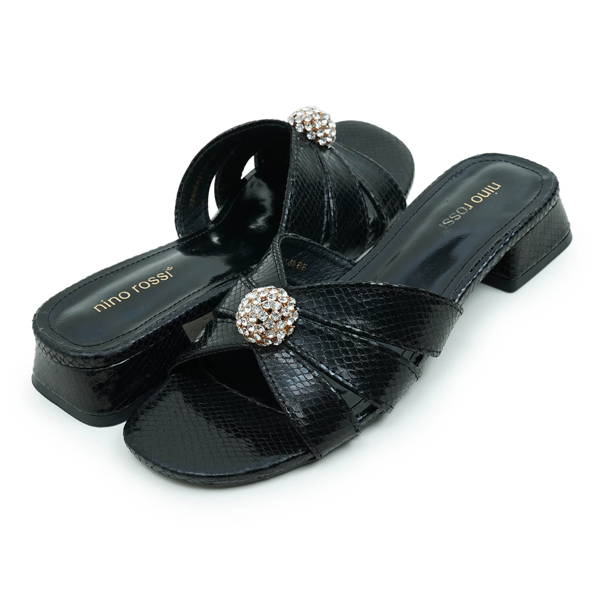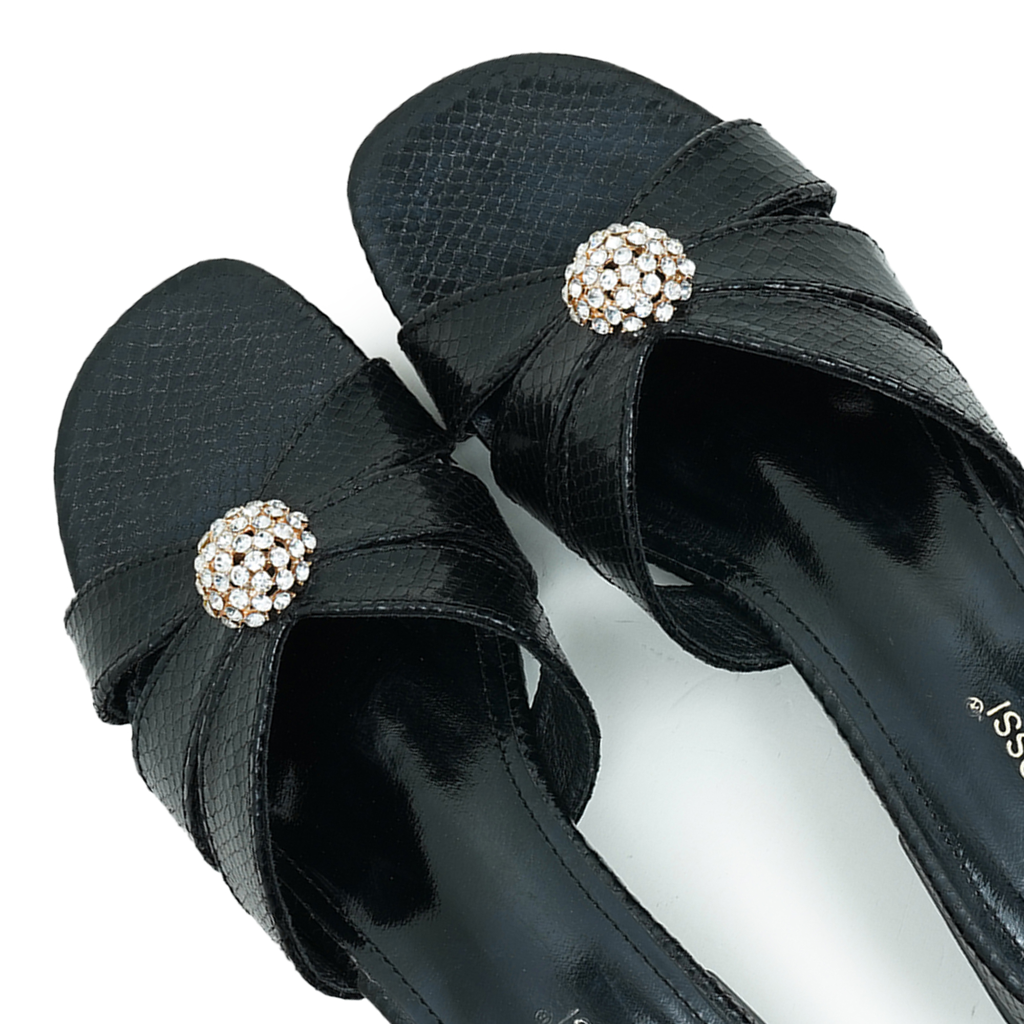 Stylish cross-strap design with crystal embellishment