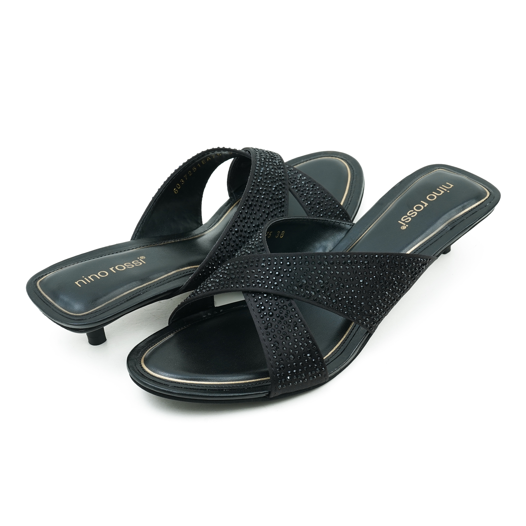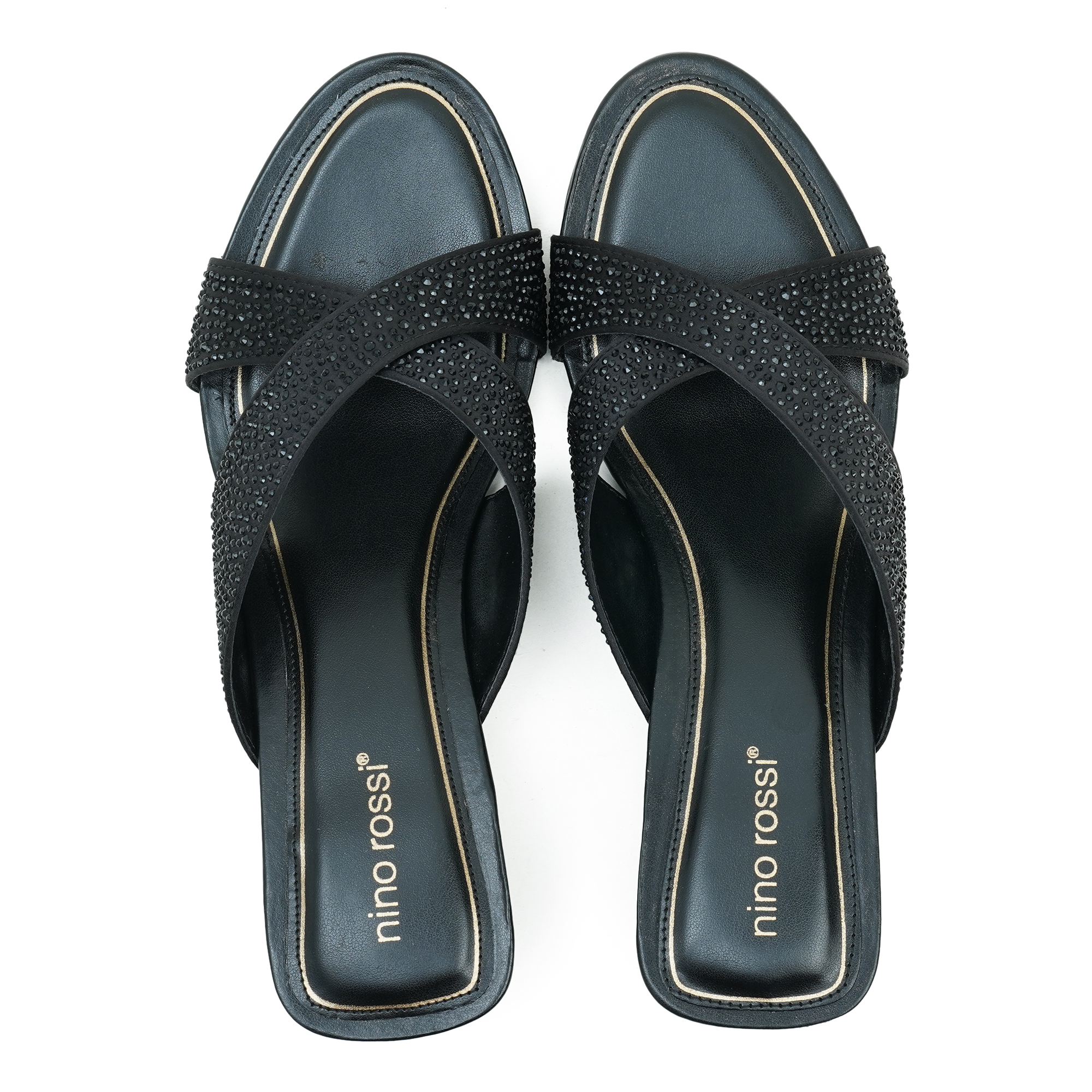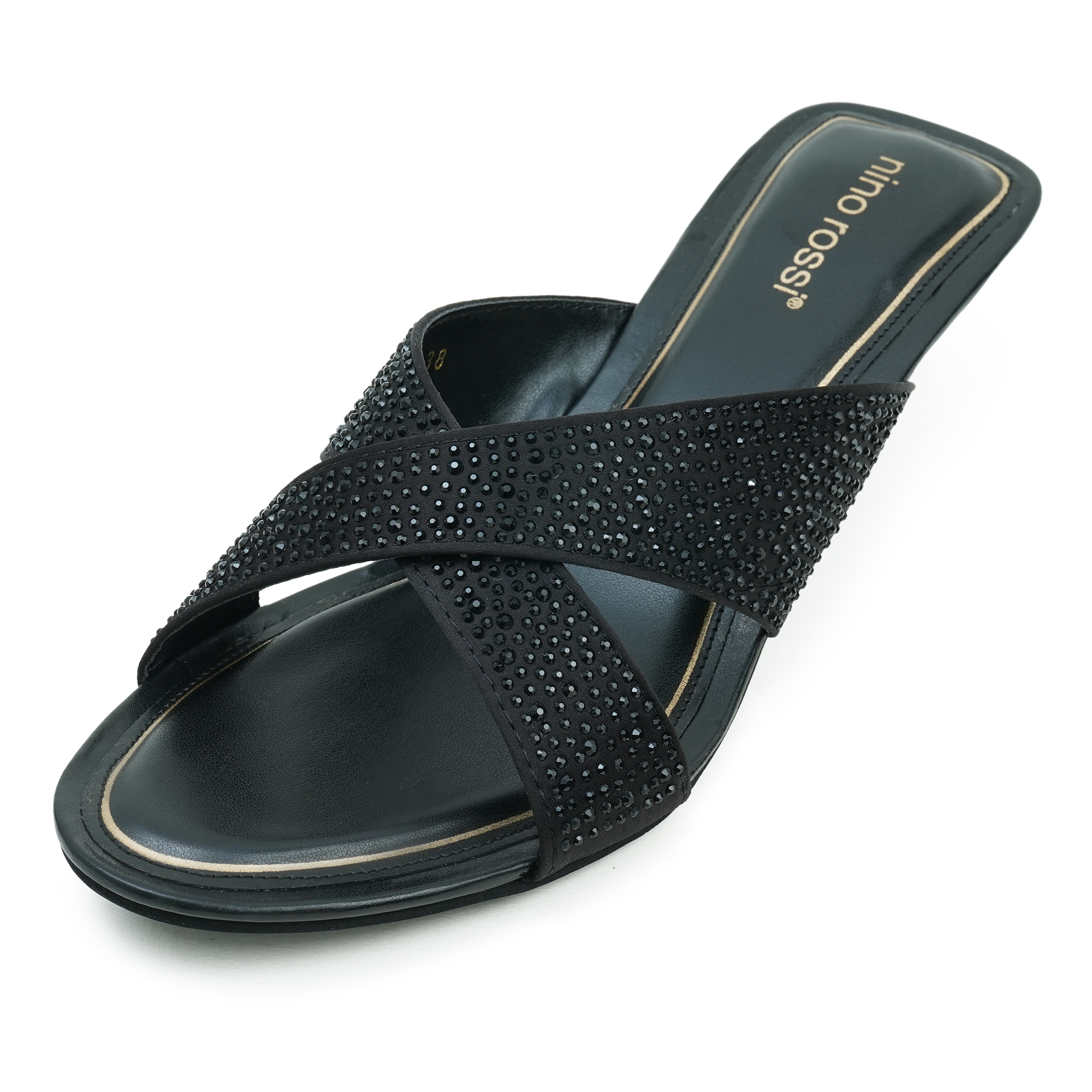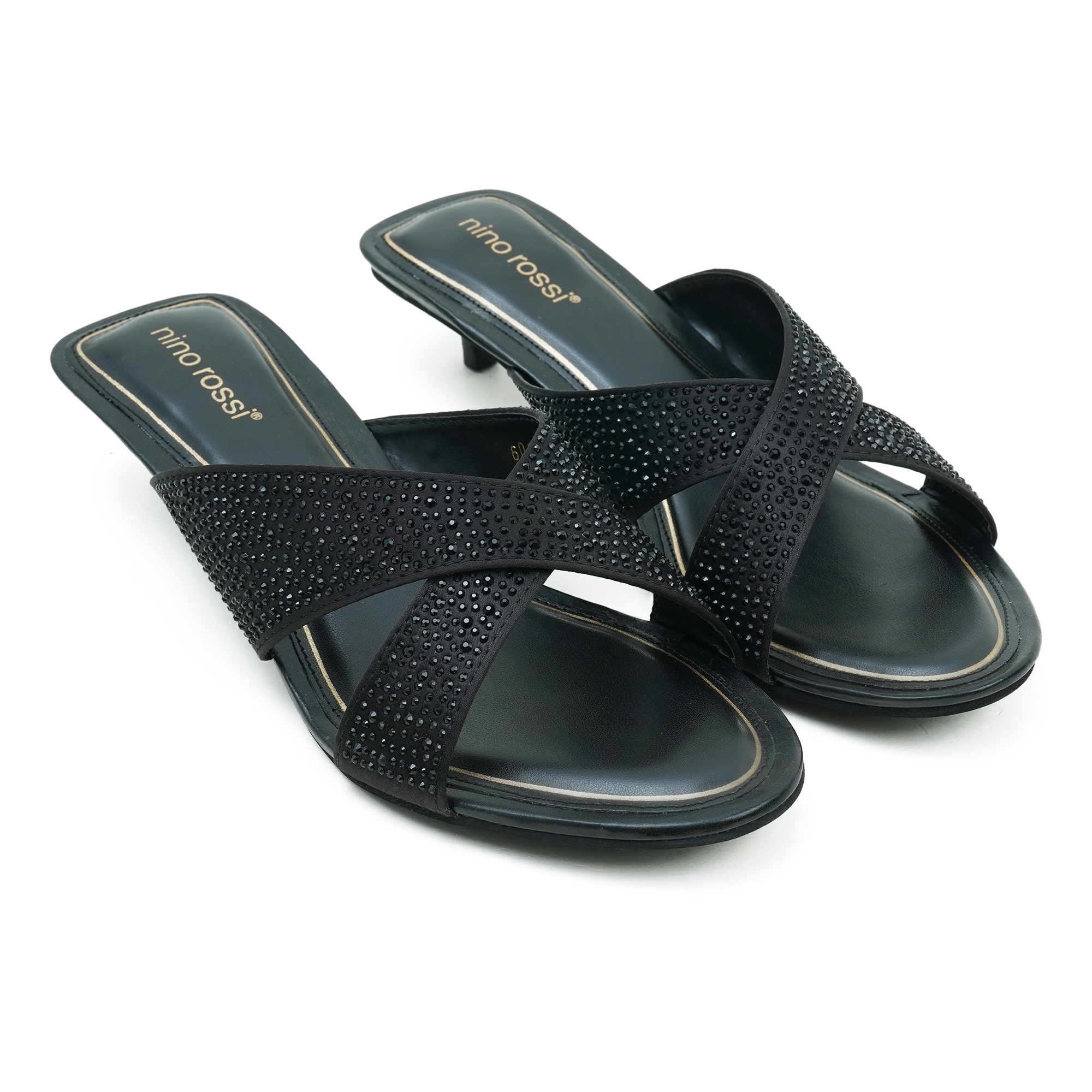 The Nino Rossi Women Black Heel is designed for women who want a combination of elegance, comfort and modern style. Crafted with premium PU material, this sandal features a stylish cross-strap design embellished with subtle rhinestone detailing that adds a sophisticated sparkle to your look. The sleek low heel provides balanced support and a graceful silhouette, making it comfortable for extended wear. Its open-toe slip-on style ensures easy wearability, while the durable outsole offers stability during walking. Perfect for evening outings, parties, formal events or stylish everyday wear, this sandal enhances any outfit with a touch of refined glamour.