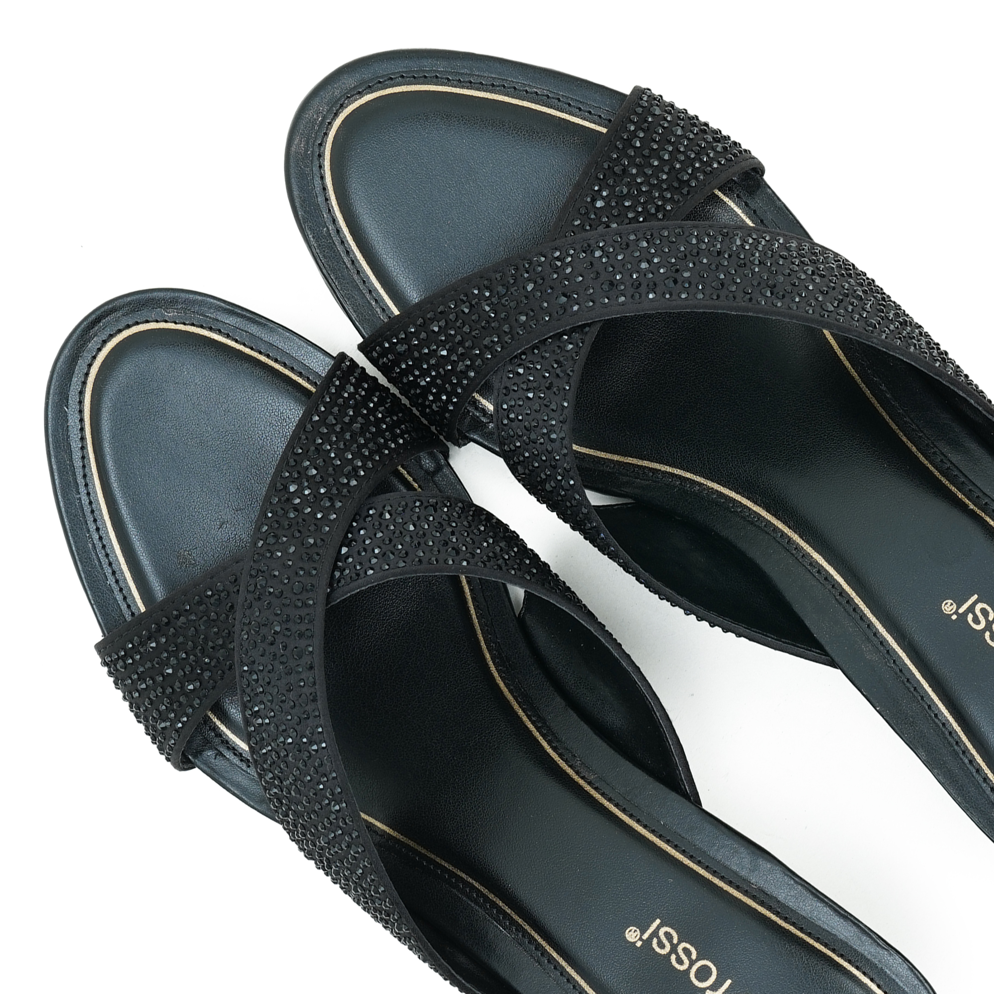 Premium PU upper with elegant rhinestone embellished cross straps
