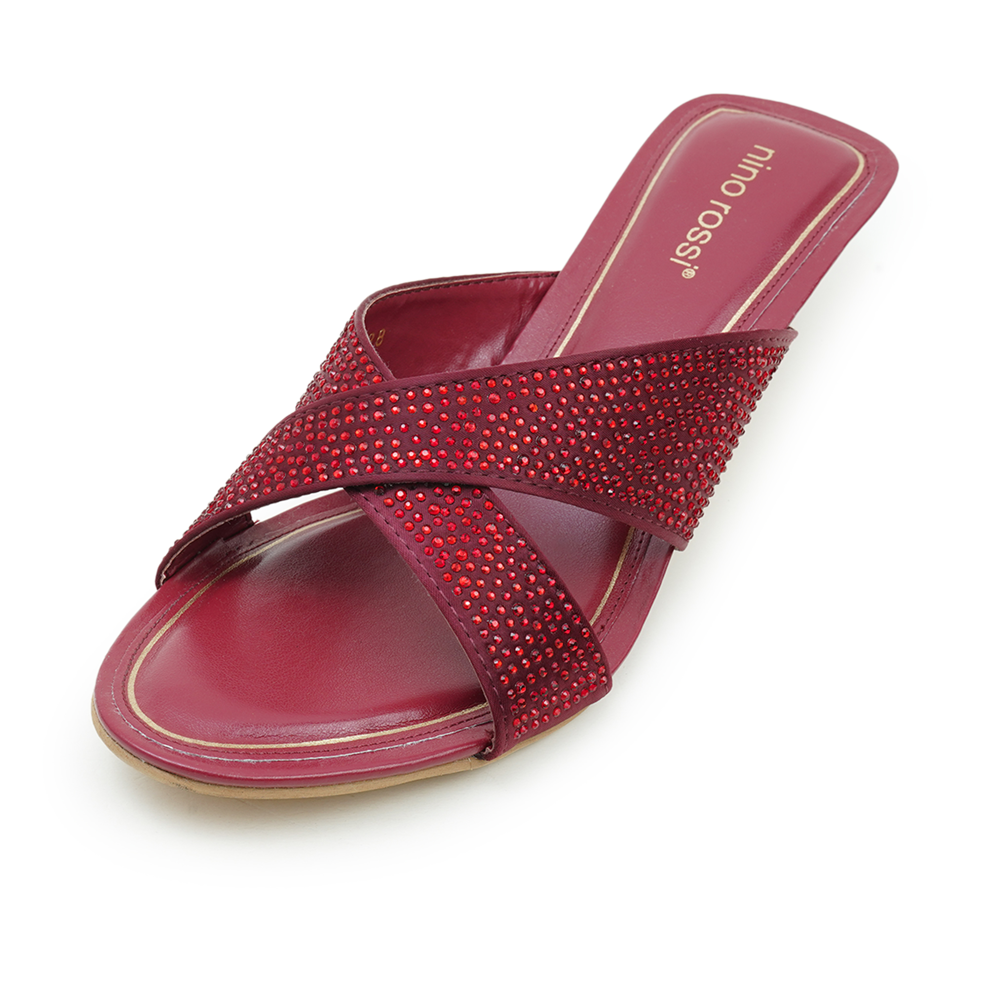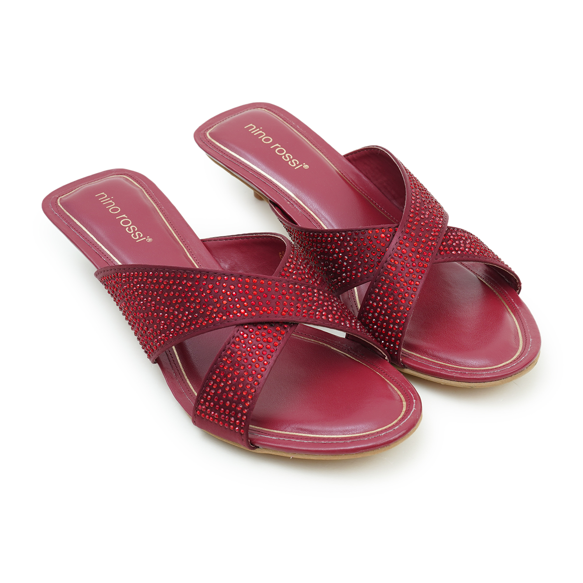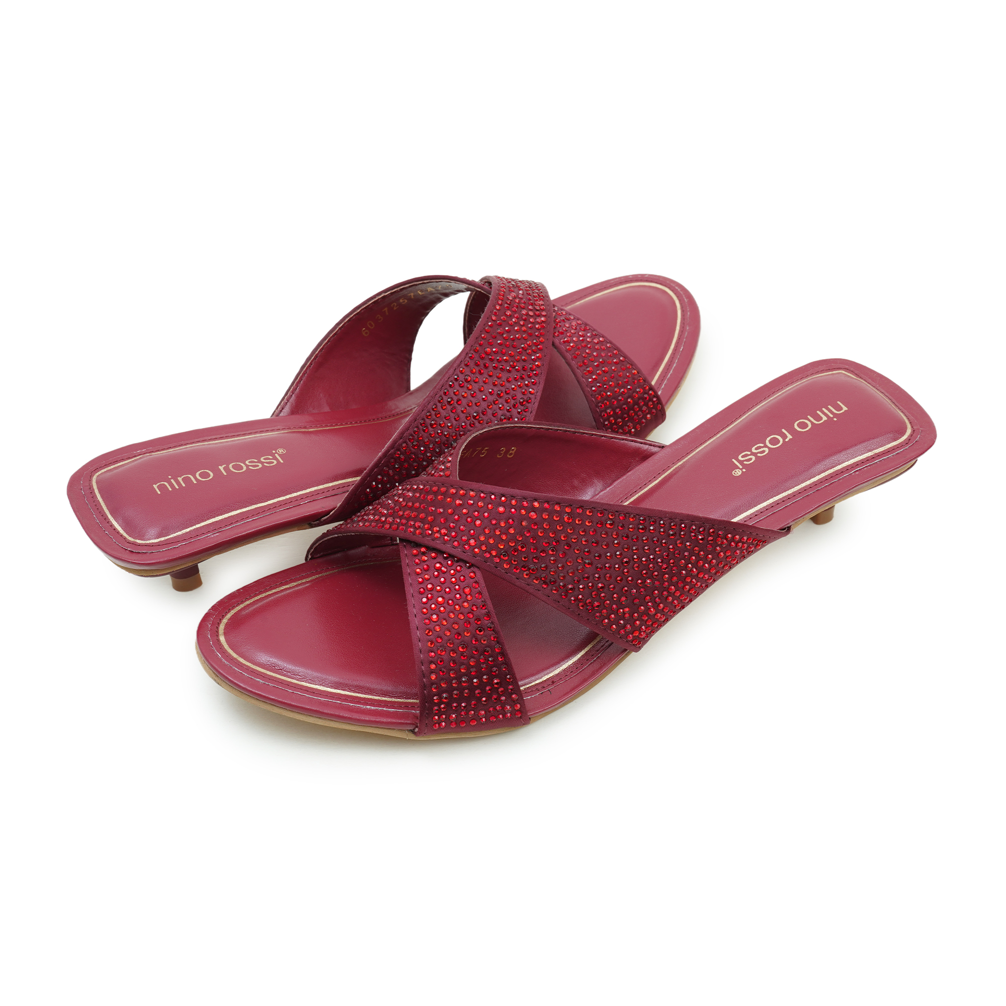 Add a touch of glamour to your look with the Nino Rossi Women’s Mid Heel Sandal. Designed for women who love elegance with comfort, this stunning pair features a rich wine-toned PU upper embellished with sparkling stone detailing for a sophisticated finish. The stylish cross-strap design ensures a secure fit while enhancing the overall silhouette. A soft cushioned footbed provides lasting comfort, making it perfect for festive occasions, parties or evening outings. Crafted with refined detailing and modern appeal, this Nino Rossi sandal effortlessly blends fashion with everyday ease.
