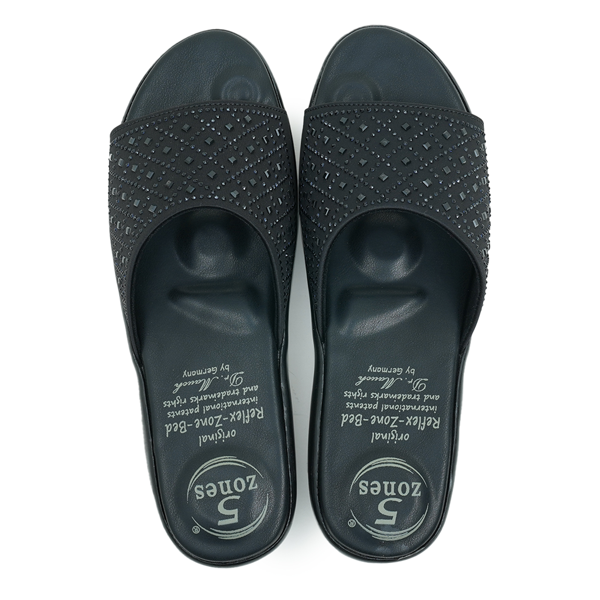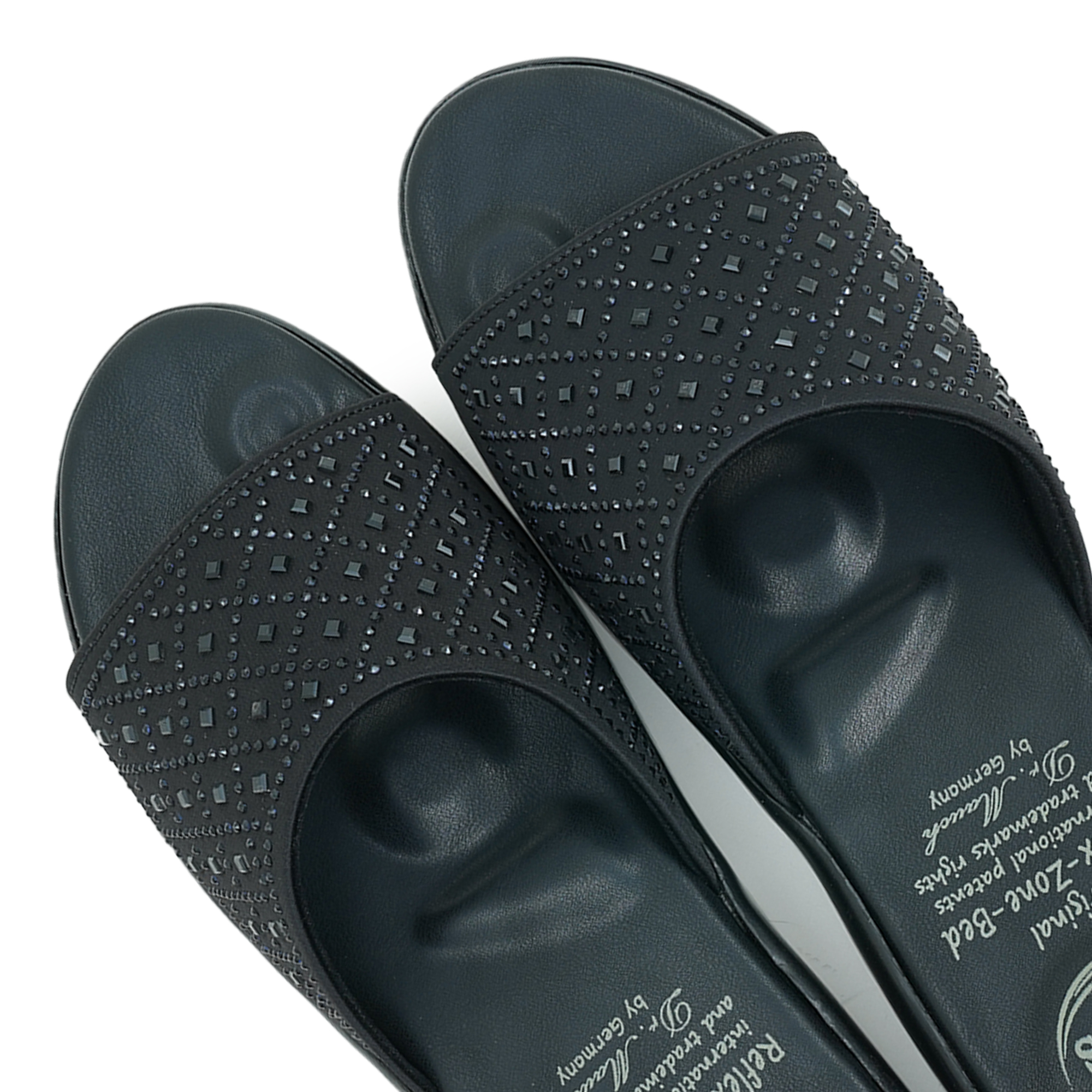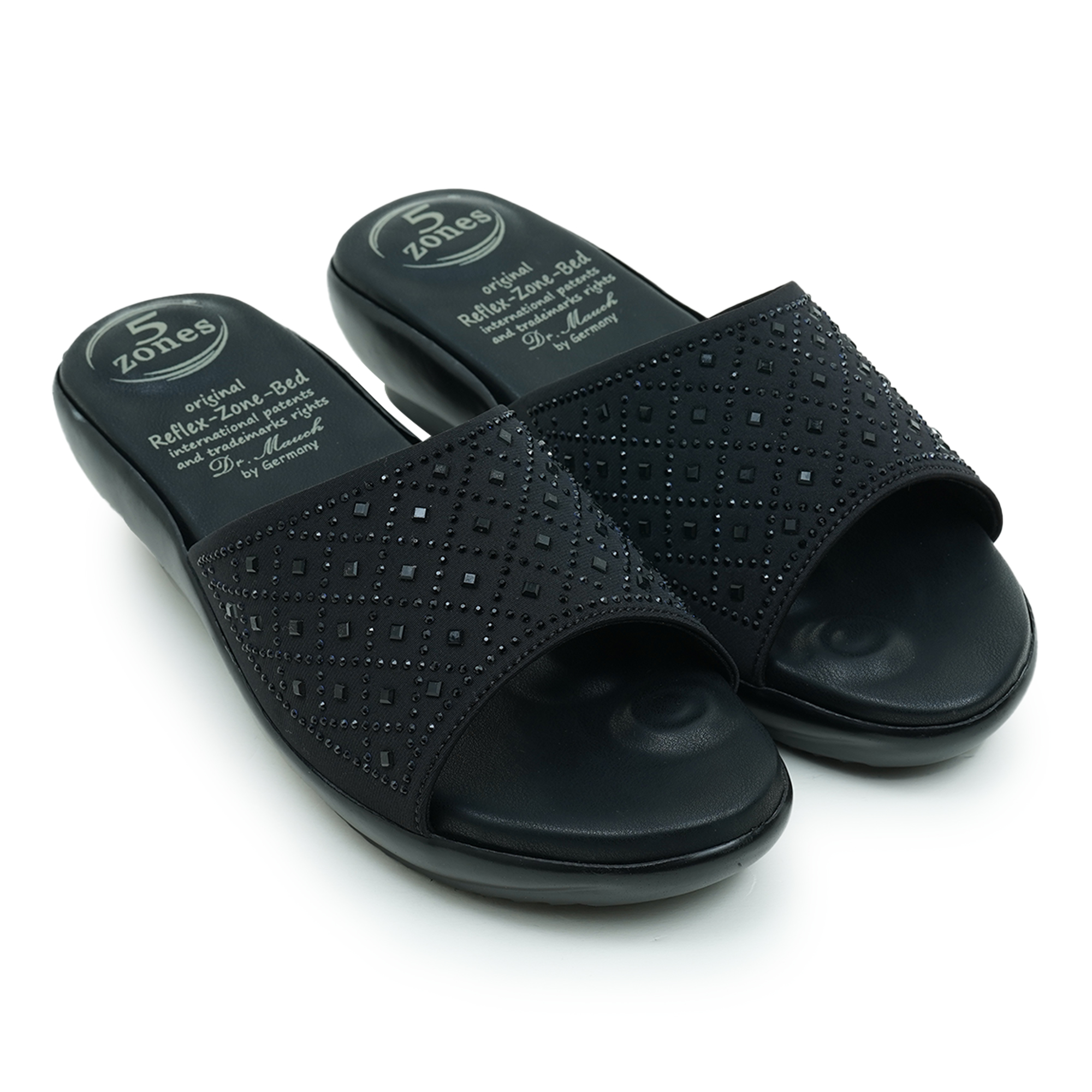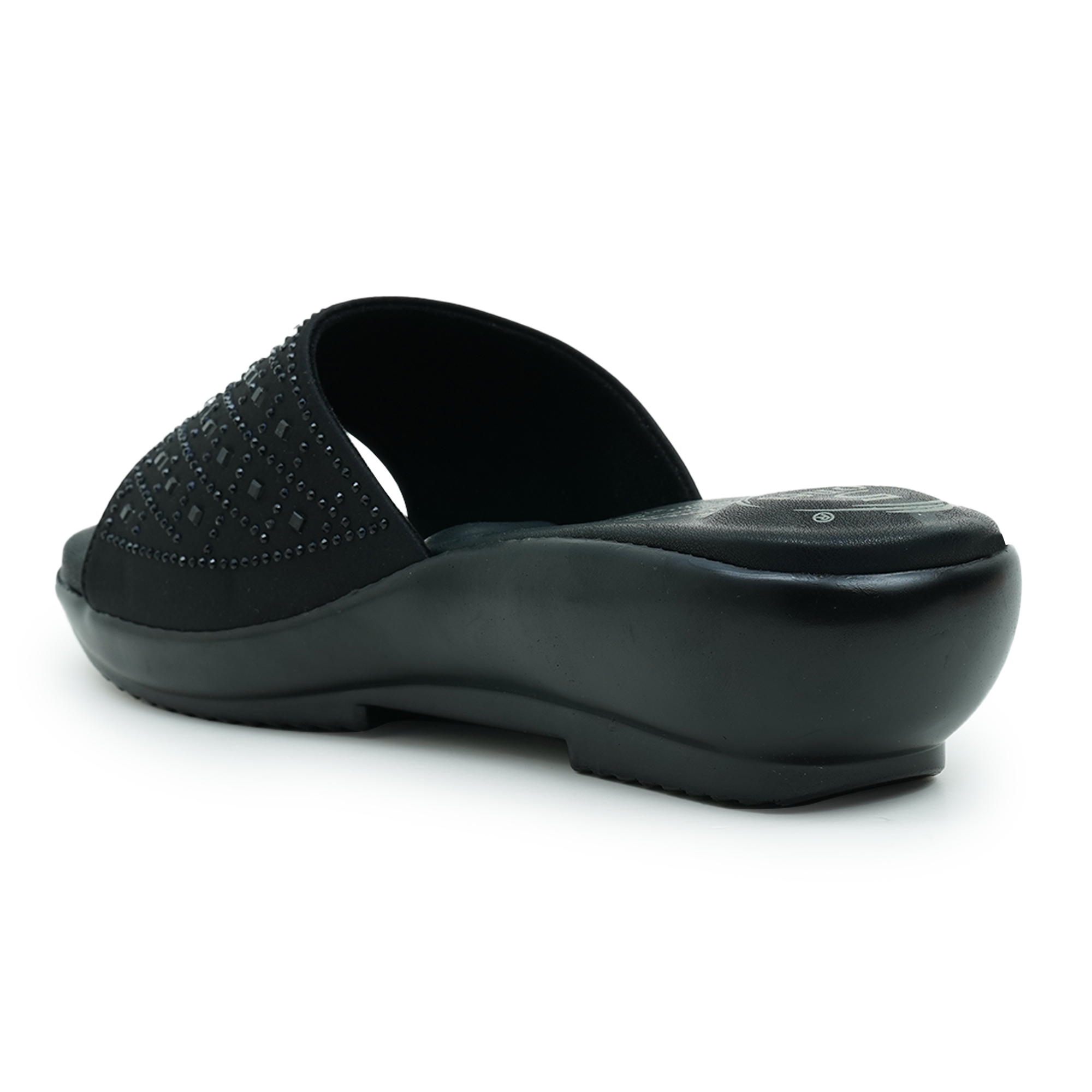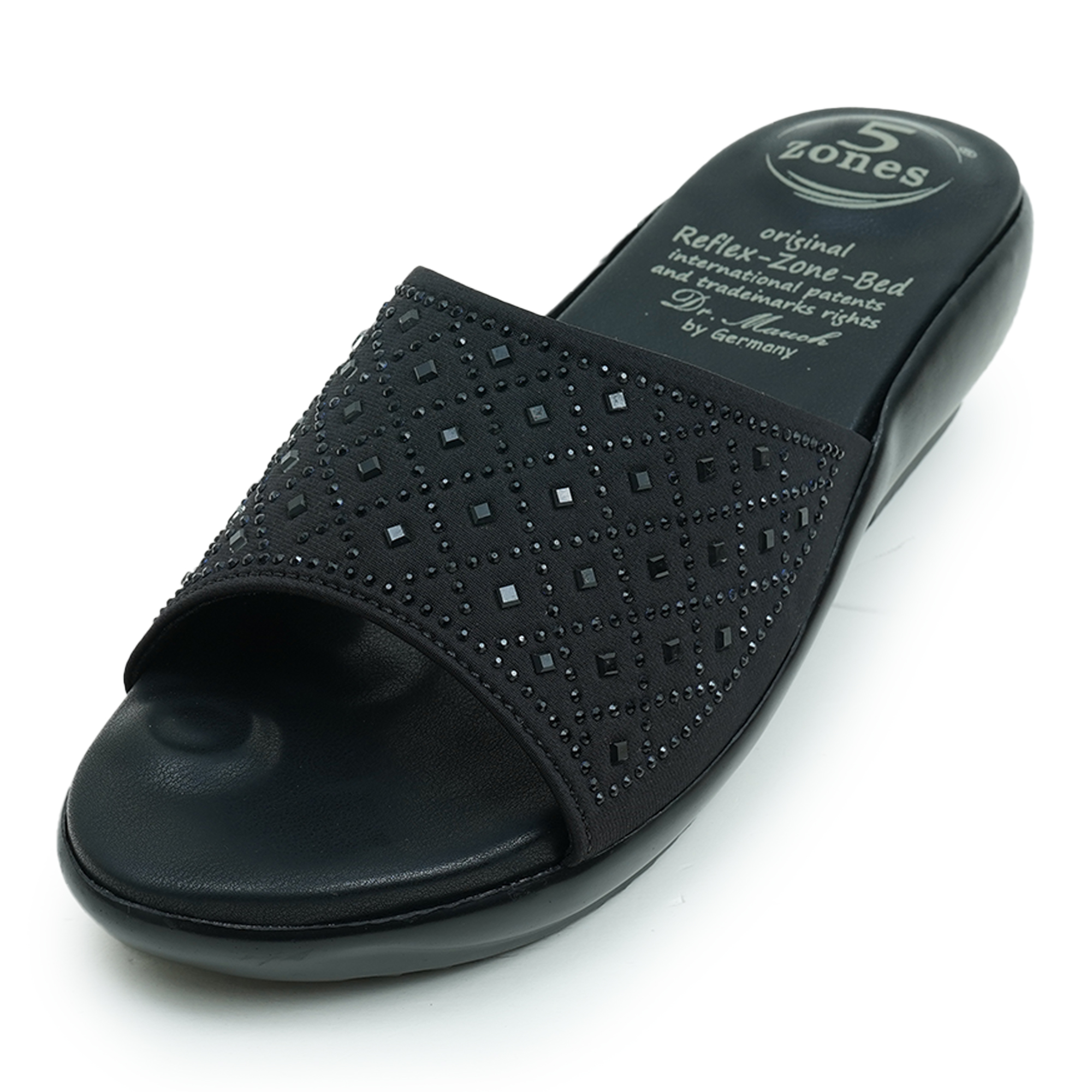 The Dr. Mauch Women's Black Comfort Heel Sandal is designed to provide a perfect combination of style, comfort and everyday durability. Crafted with a soft PU upper and a supportive PU outsole, this sandal offers lightweight comfort for daily wear. The elegant black upper with subtle stud embellishments adds a modern and stylish touch, making it suitable for casual outings, regular use or relaxed occasions. Its cushioned reflex-zone footbed helps provide enhanced support and comfort while walking. With a simple yet elegant design, this Dr. Mauch sandal is a reliable choice for women seeking comfortable and stylish footwear for everyday activities.