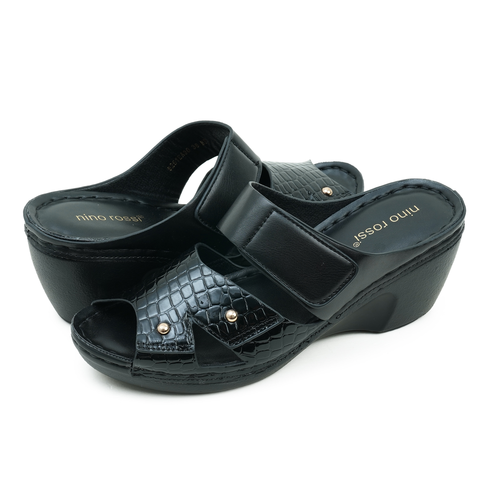 Elevate your everyday style with the Nino Rossi Women’s Wedge Heel Sandal, designed to blend elegance with comfort. Crafted from high-quality PU material, this sandal features a stylish dual-strap design with a chic textured finish and subtle metallic accents for a refined touch. The open-toe silhouette enhances breathability, while the cushioned insole ensures lasting comfort throughout the day. Set on a supportive high wedge heel, it offers added height without compromising stability. Perfect for casual outings or semi-formal occasions, this Nino Rossi sandal adds confidence to every step.