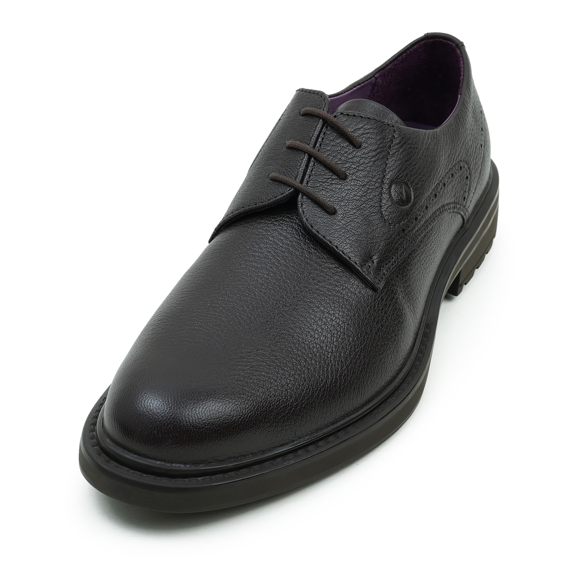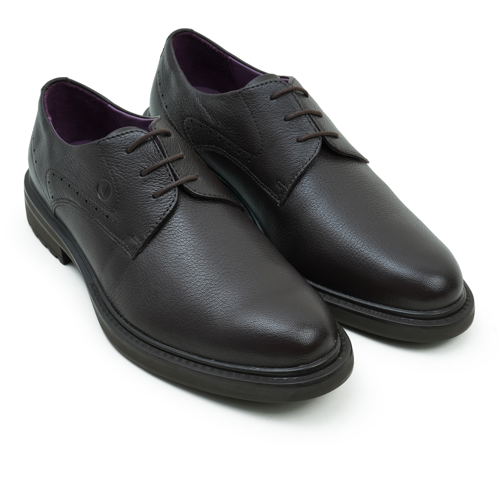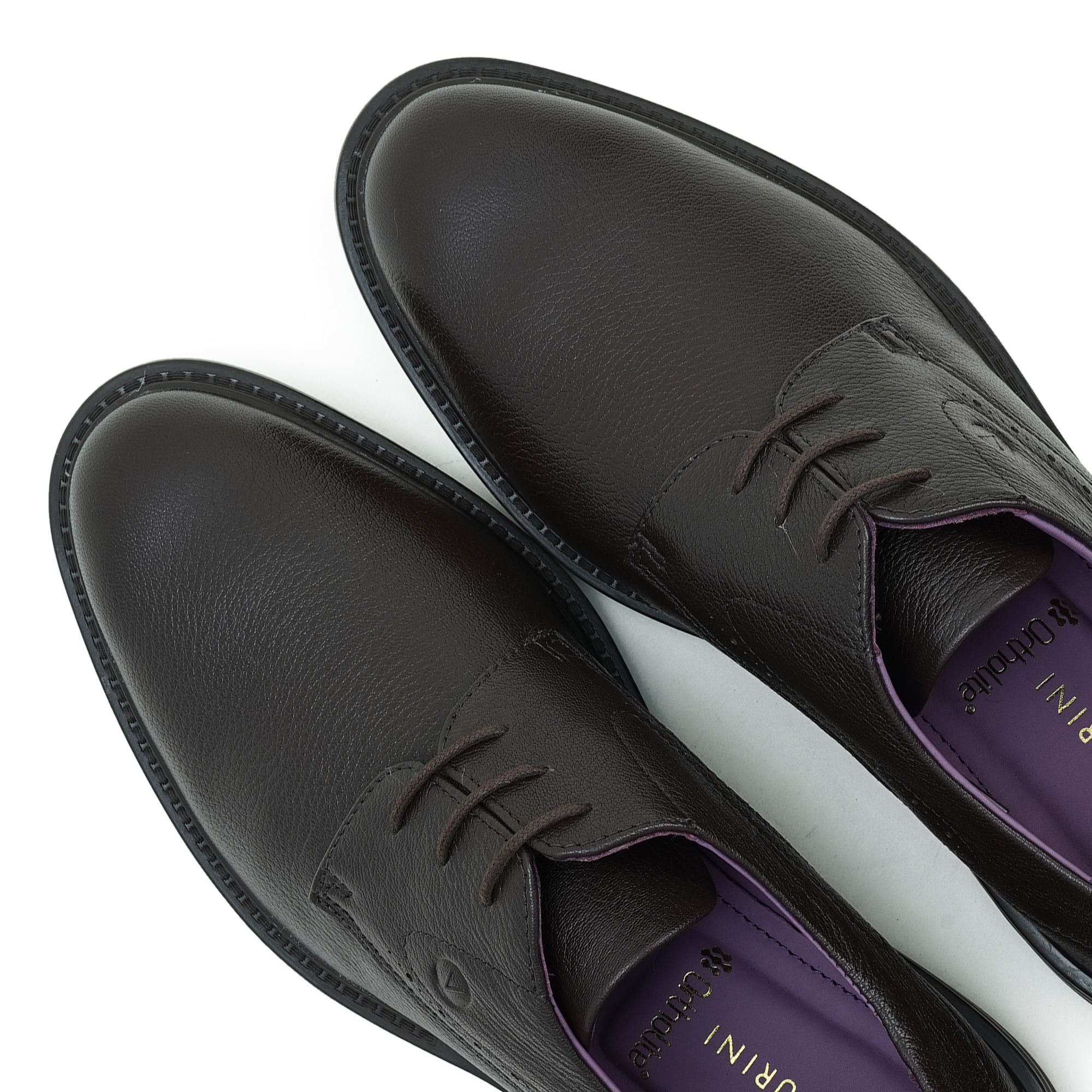 Premium coffee leather upper for professional elegance.
