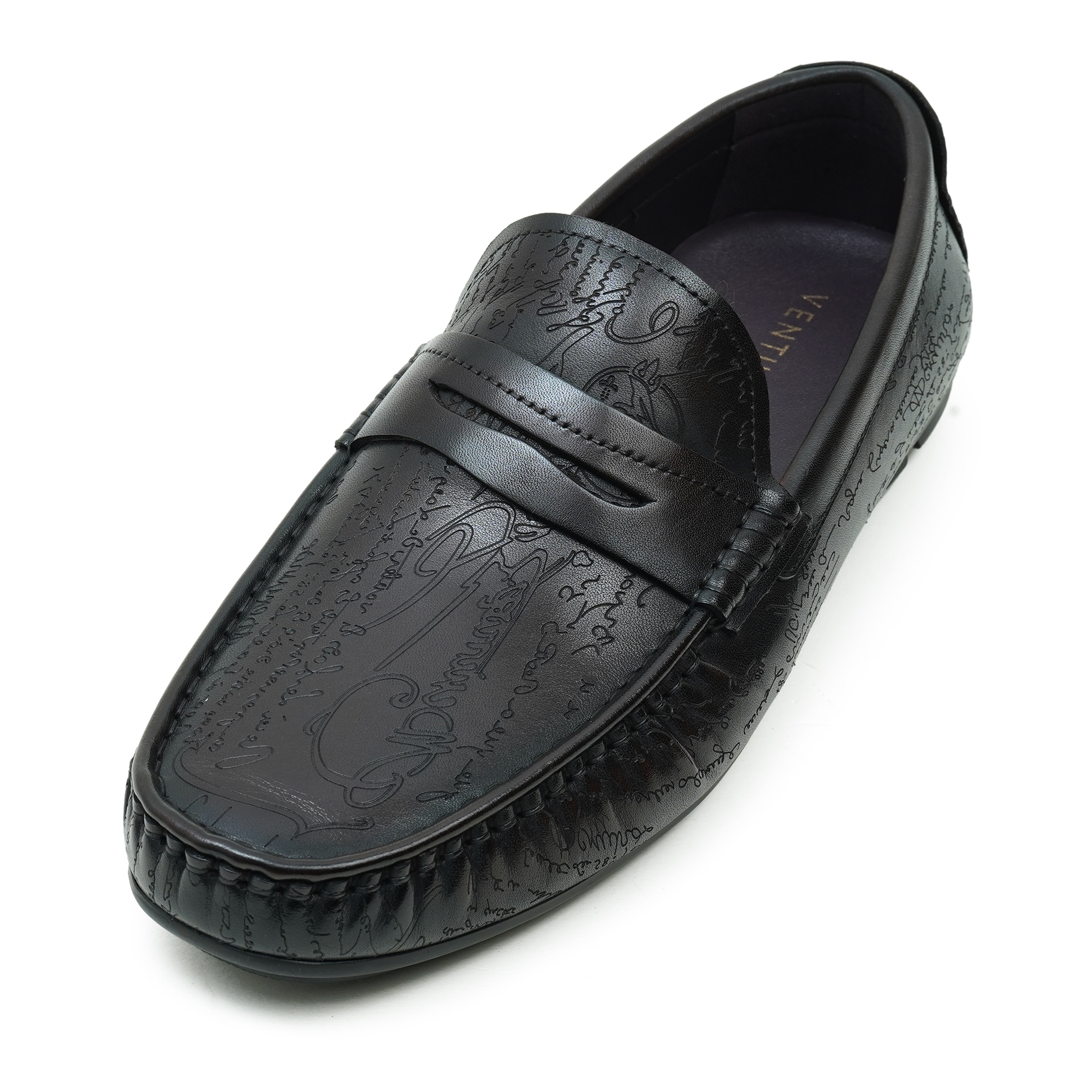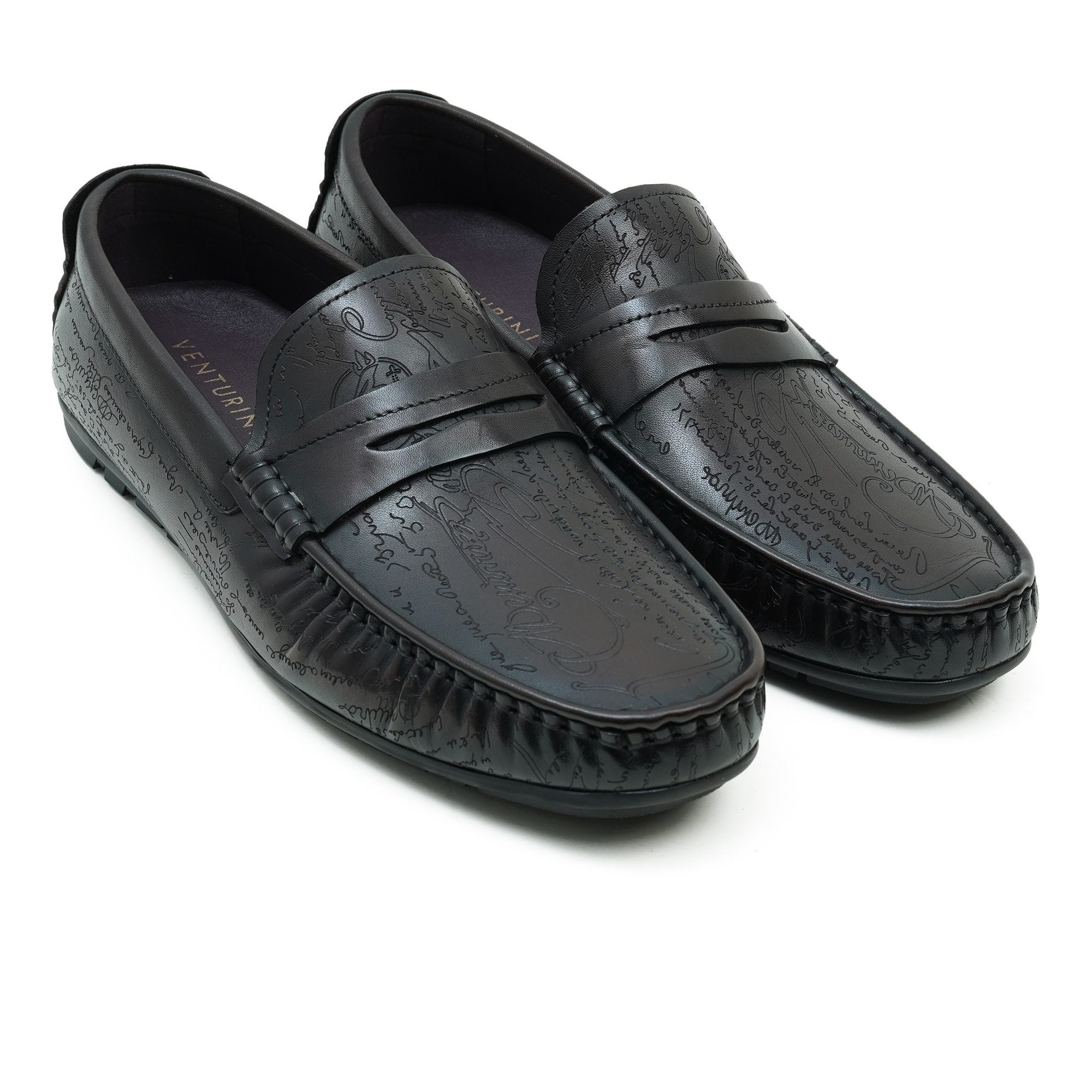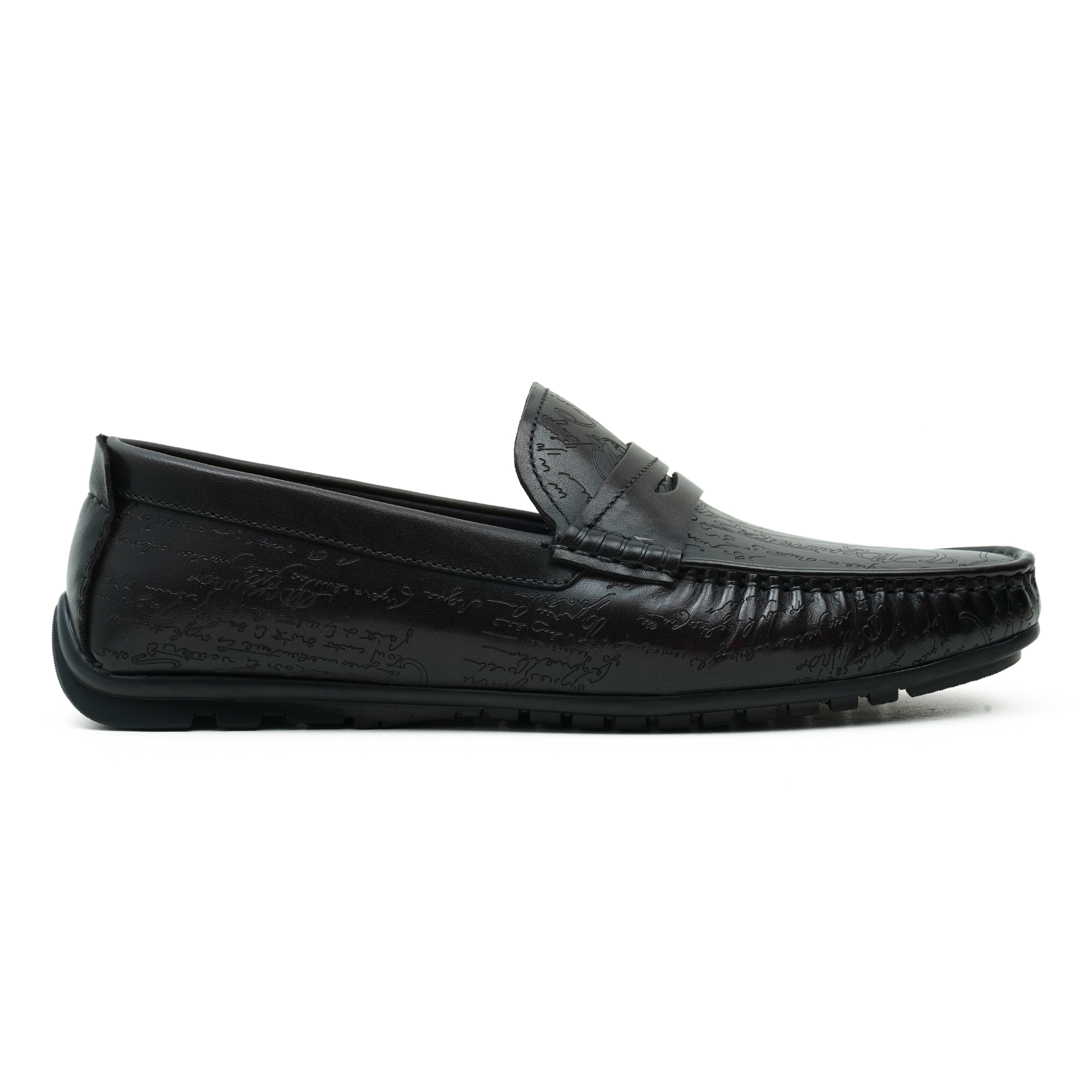 Coffee-toned moccasin loafer featuring a premium finish and intricate embossed design on the vamp. The slip-on style pairs classic moccasin construction with modern refinement, delivering sophisticated flair for smart-casual and formal settings. Crafted with a soft lining and cushioned insole, it blends comfort with timeless craftsmanship and a refined silhouette.