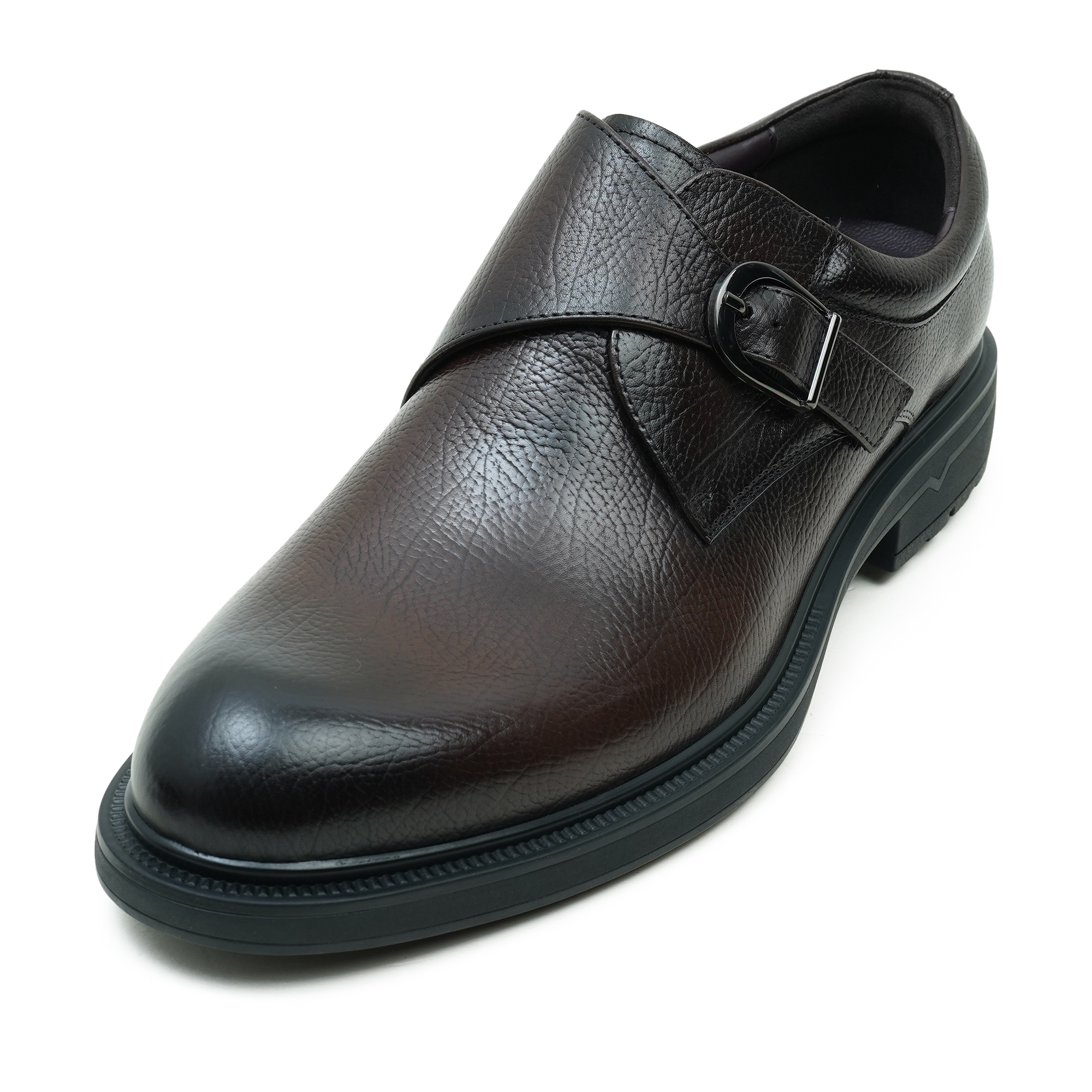 Coffee-toned monk-strap loafer that exudes timeless elegance. Crafted in premium leather with a refined texture, this formal shoe blends classic monk design with modern comfort. The lace-up-free upper features a sleek buckle, while the cushioned insole and sturdy sole ensure all-day wear—from the boardroom to after-hours events.