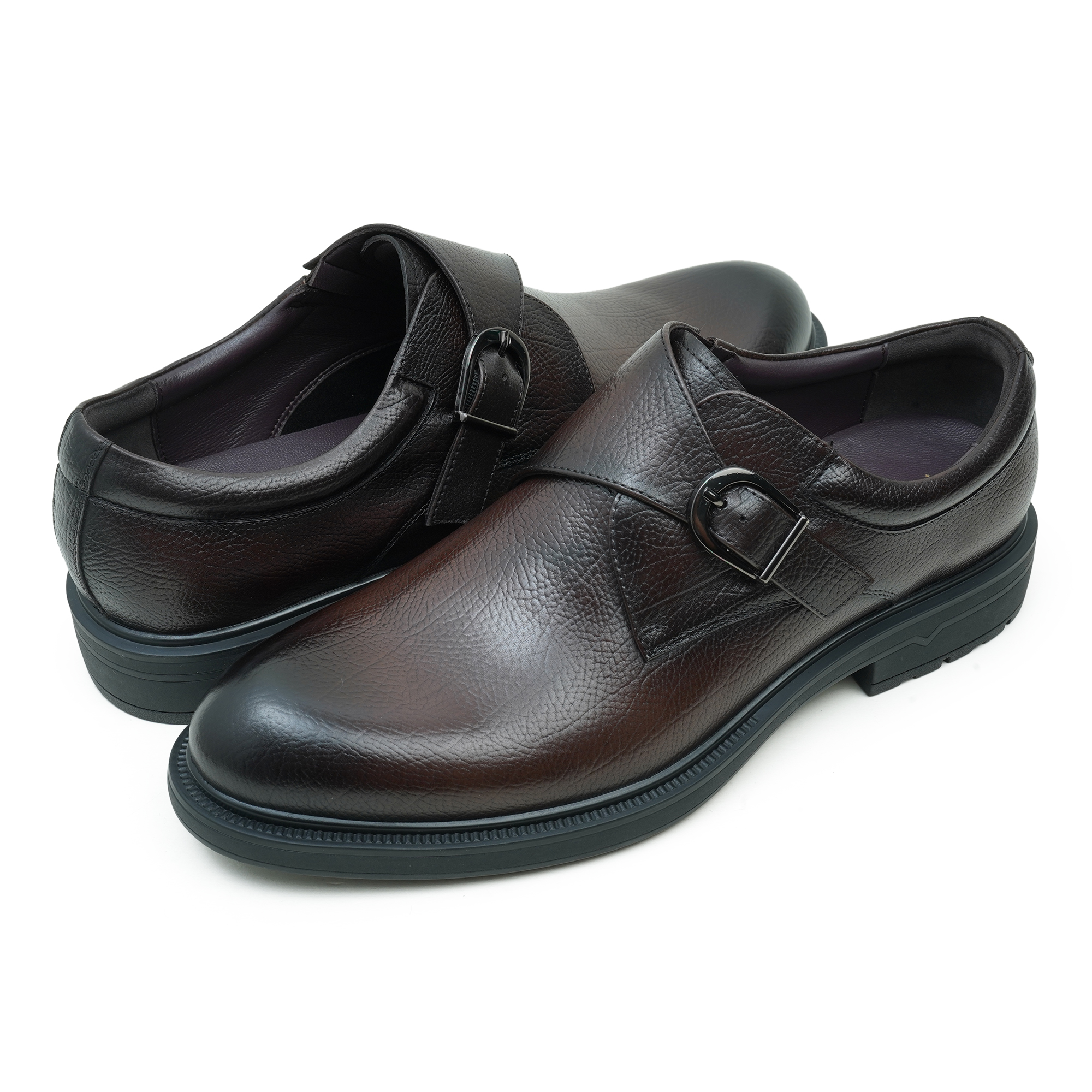 - Premium coffee leather upper with monk-strap detail