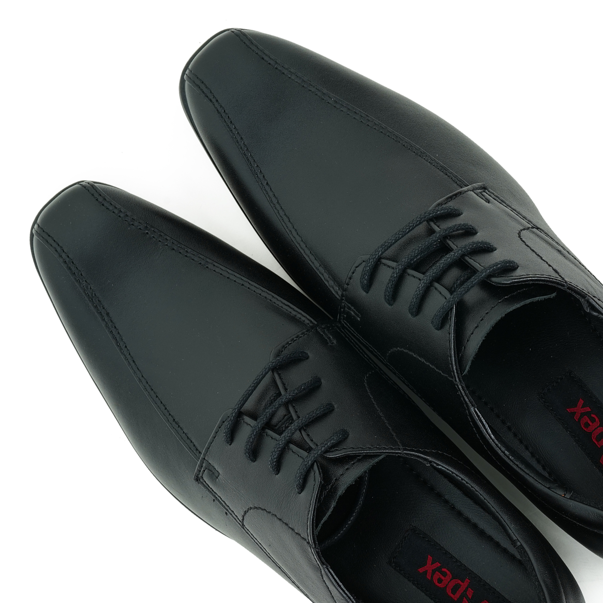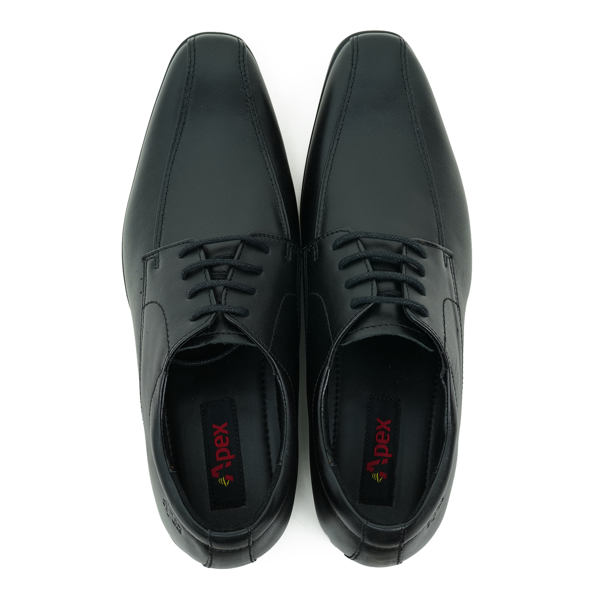 Refined for everyday sophistication, the Apex Black Leather Dress Shoes are designed for men who value comfort with a polished look. Crafted from premium leather, these formal shoes offer a smooth finish and lasting durability for regular office wear and special occasions. The sleek lace-up design ensures a secure fit, while the cushioned interior supports all-day comfort. Perfect for business meetings, formal events or daily professional use, these black leather dress shoes for men complement any attire effortlessly. Apex delivers trusted quality and timeless style, making this pair an essential addition to every modern man’s wardrobe.