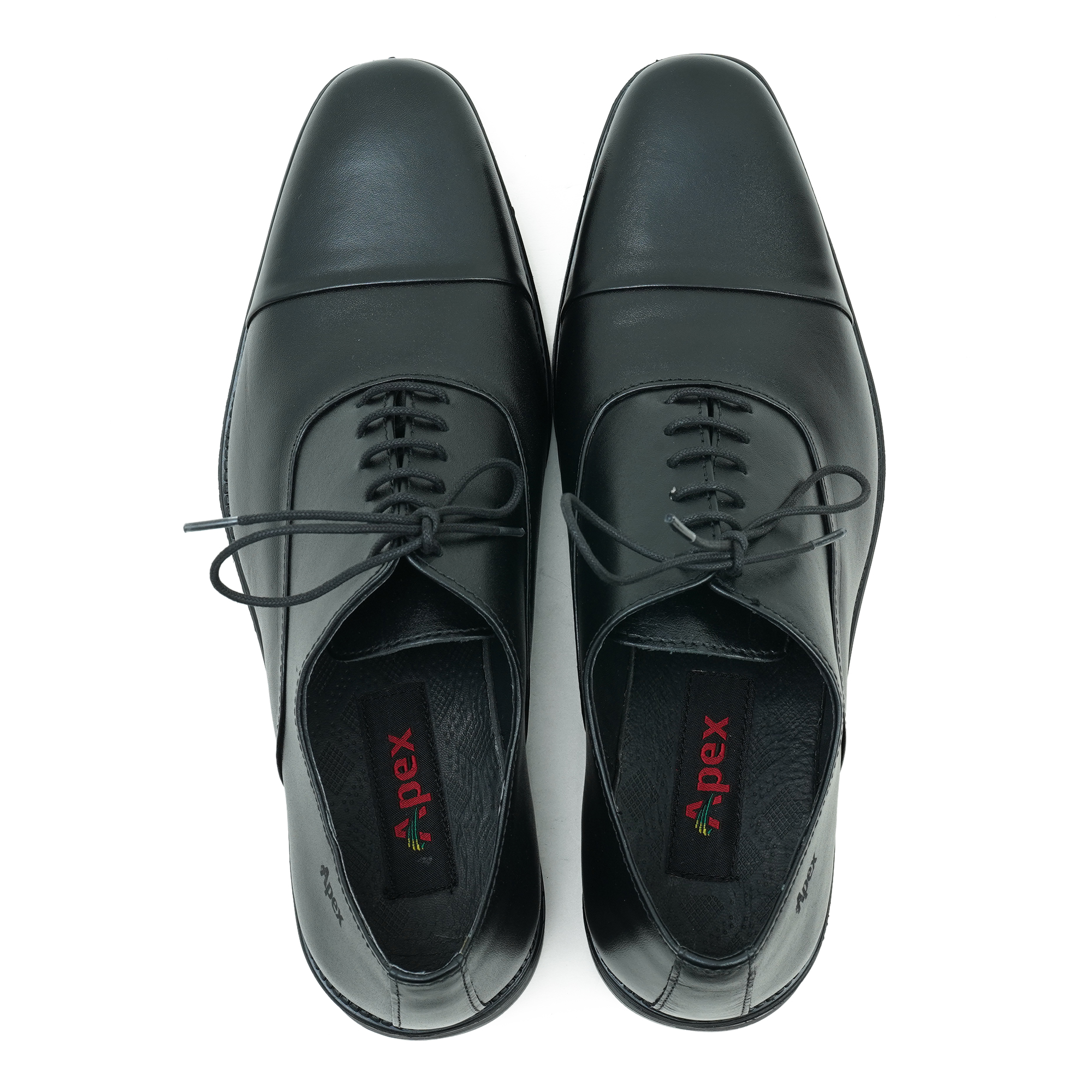 Upgrade your formal style with Apex Men’s Black Leather Dress Shoes. Crafted with a smooth leather upper and classic lace-up design, these shoes offer a sleek, polished look. The durable TPR sole ensures comfort and long-lasting wear perfect for office and formal occasions.