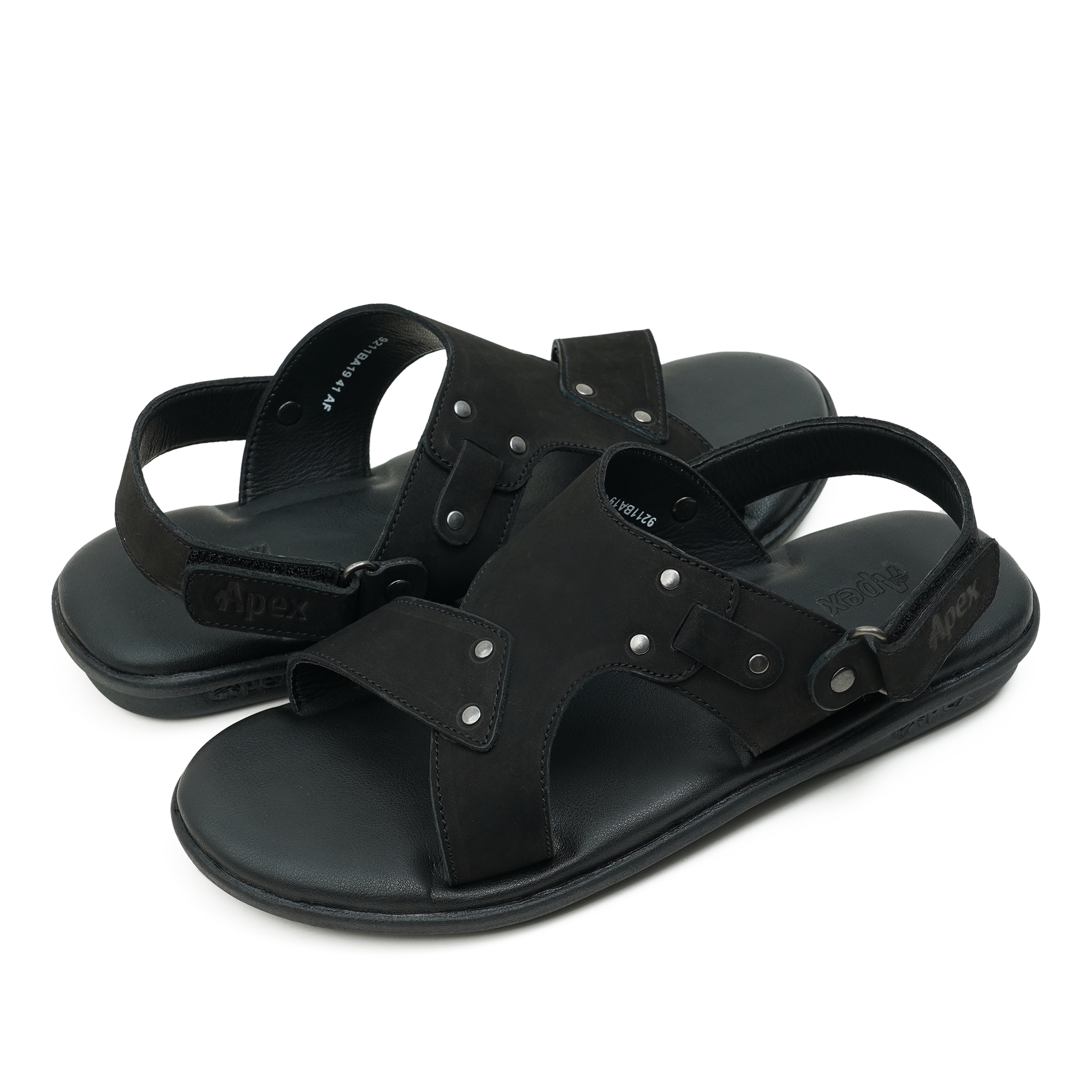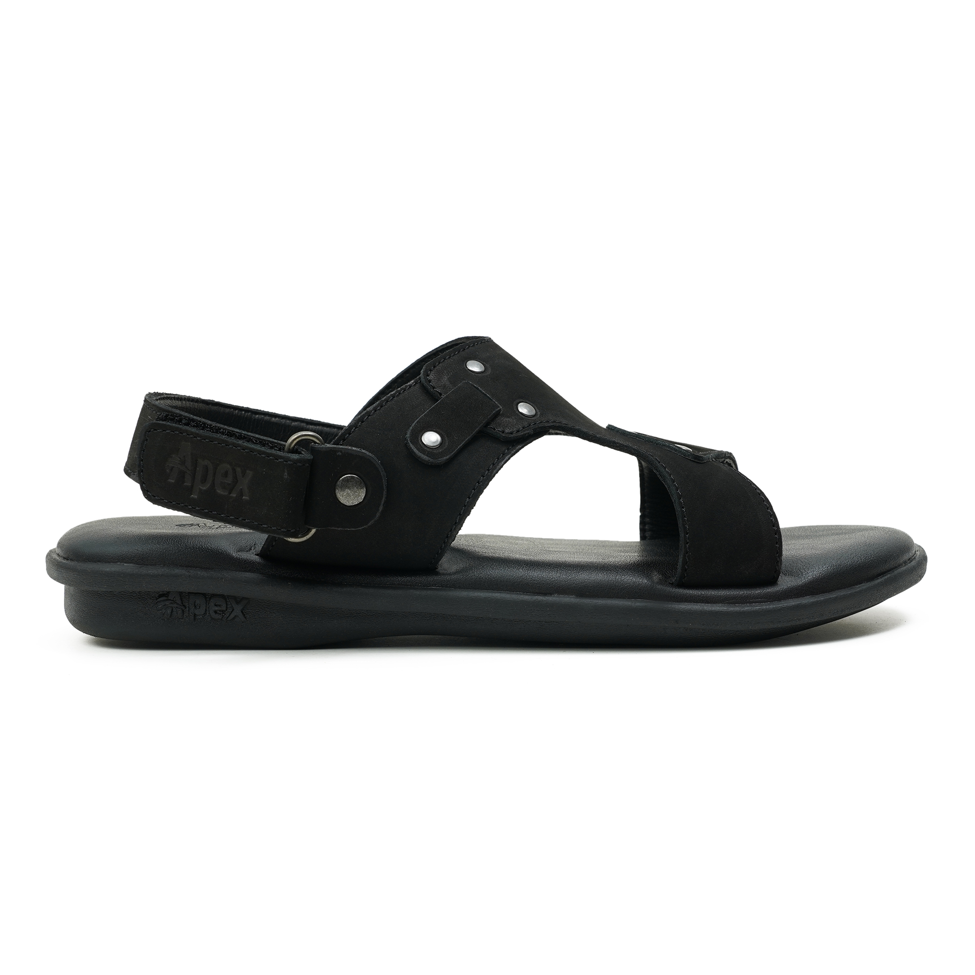 Experience everyday comfort with the Apex Men’s Black Leather Sandal, designed for durability and modern style. Crafted from premium genuine leather, this sandal features a secure cross-strap design with a supportive back strap for a stable fit. The soft cushioned footbed ensures all-day comfort, while the sturdy PVC outsole provides excellent grip and flexibility. Perfect for daily wear, casual outings, and travel, this Apex sandal combines functionality with a sleek black finish.