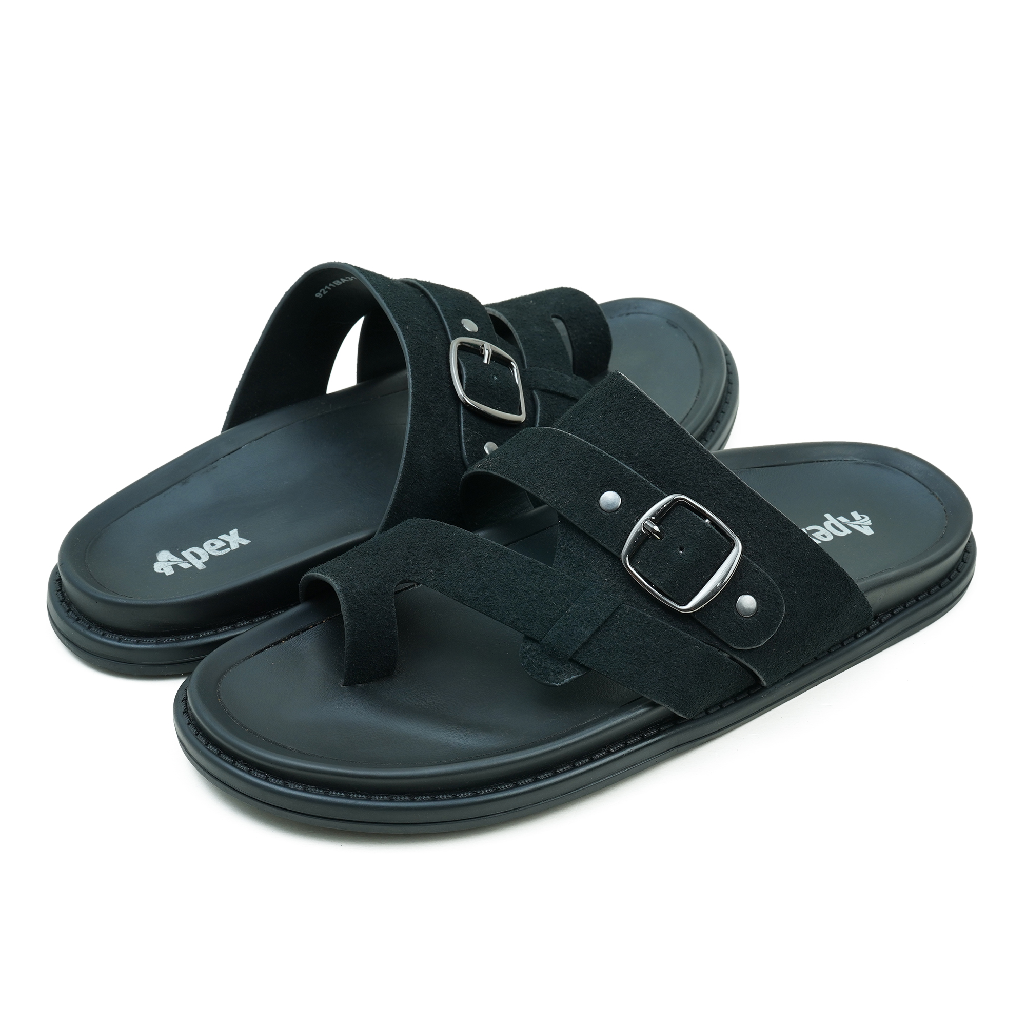 Step into refined comfort with the Apex Men’s Black Leather Sandal, designed for durability and effortless everyday style. Crafted from premium genuine leather with a soft suede finish, this sandal features a clean cross-strap design enhanced with an adjustable buckle for a secure and customized fit. The cushioned footbed ensures superior comfort throughout the day, while the durable rubber outsole provides reliable grip and long-lasting performance. Perfect for casual outings and daily wear, this Apex sandal reflects quality craftsmanship and modern simplicity in every detail.