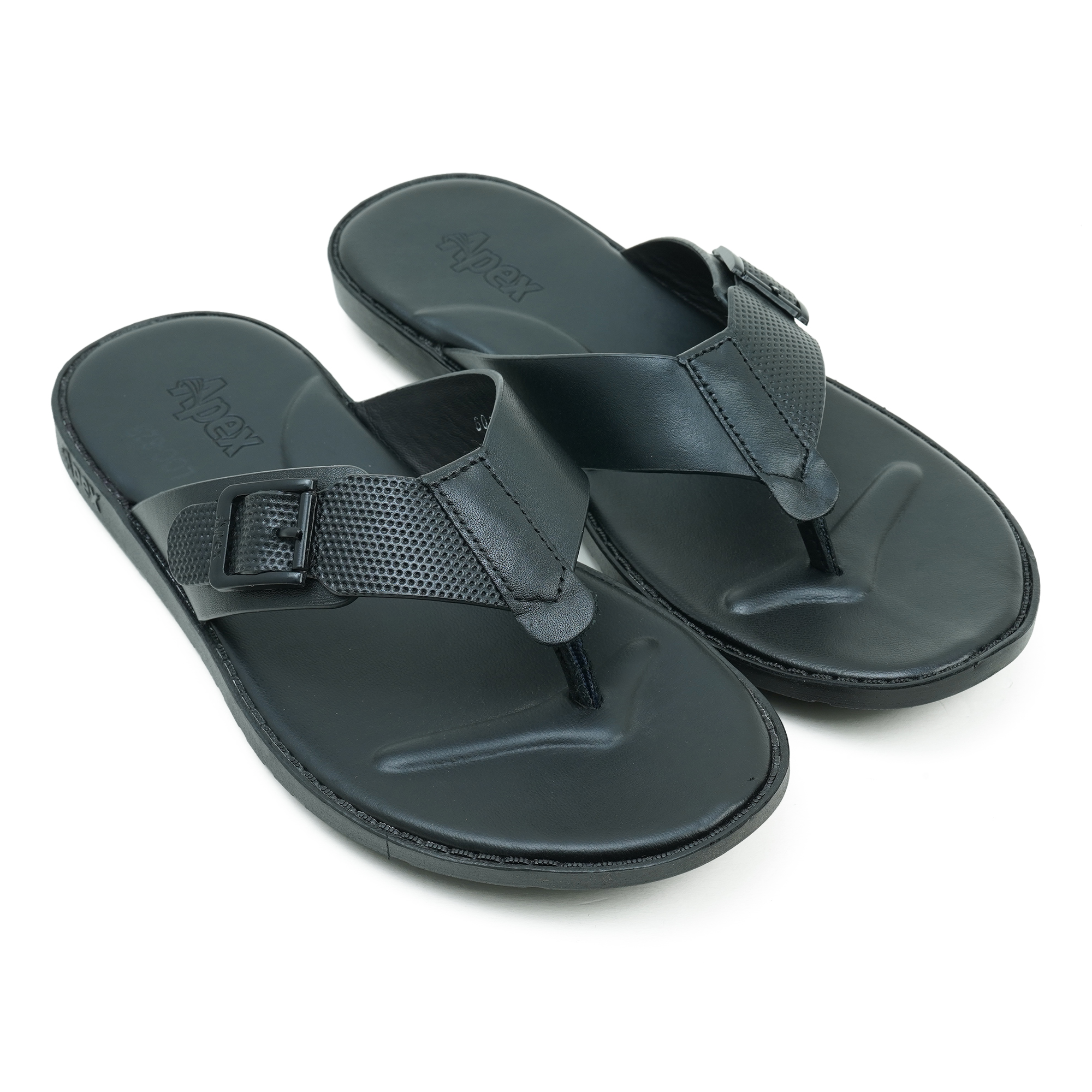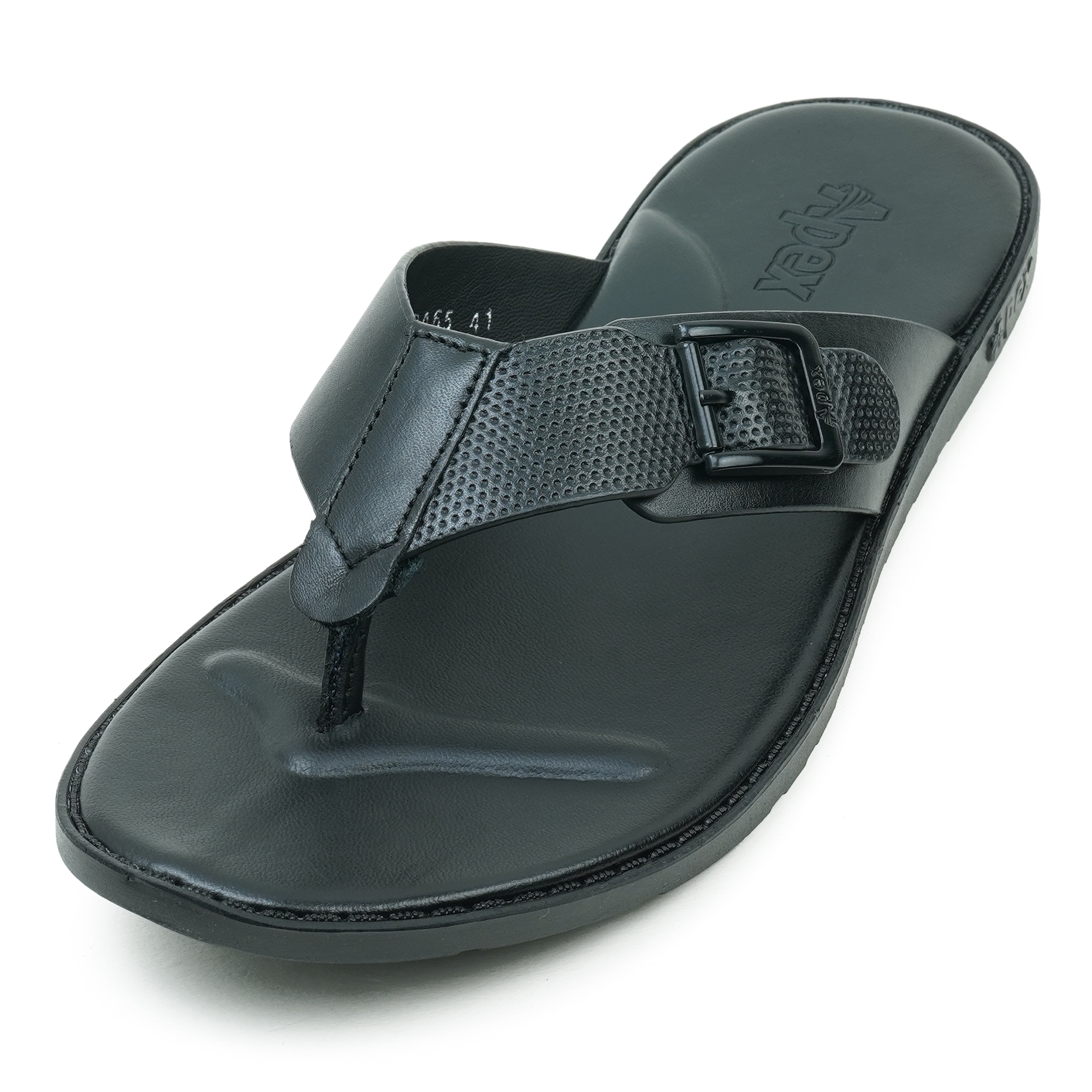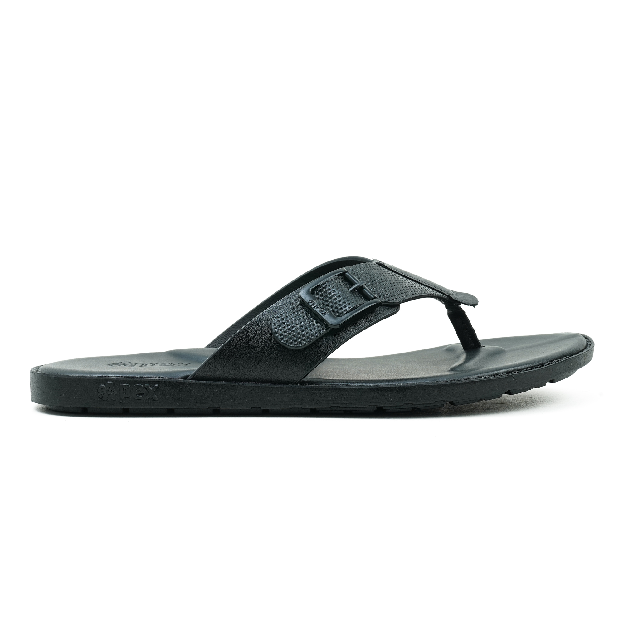 Upgrade your everyday style with the Apex Men’s Black Leather Sandal, designed for comfort and durability. Crafted from premium genuine leather, this men’s toe-post sandal features a sleek black finish with an adjustable buckle strap for a secure fit. The soft, contoured footbed provides superior cushioning, while the lightweight PVC sole ensures flexibility and reliable grip. Ideal for daily wear, casual outings, and summer comfort, this Apex leather sandal delivers lasting performance with timeless appeal.