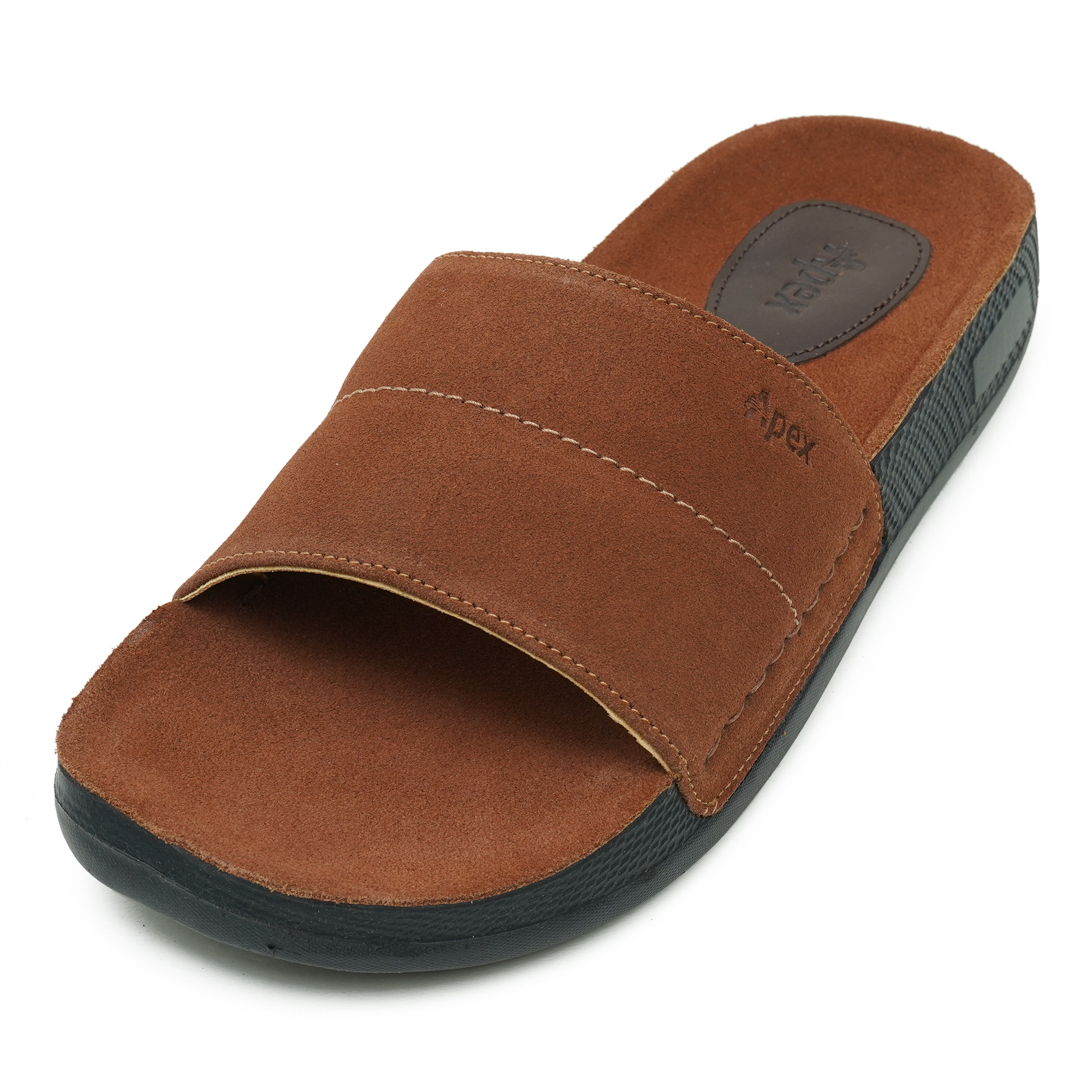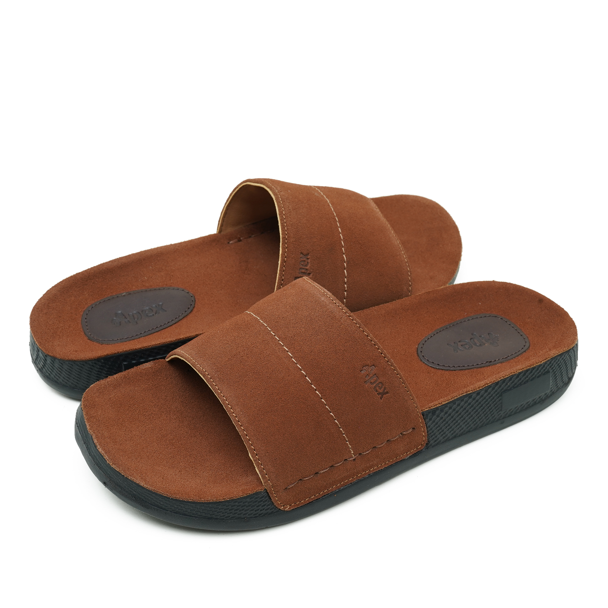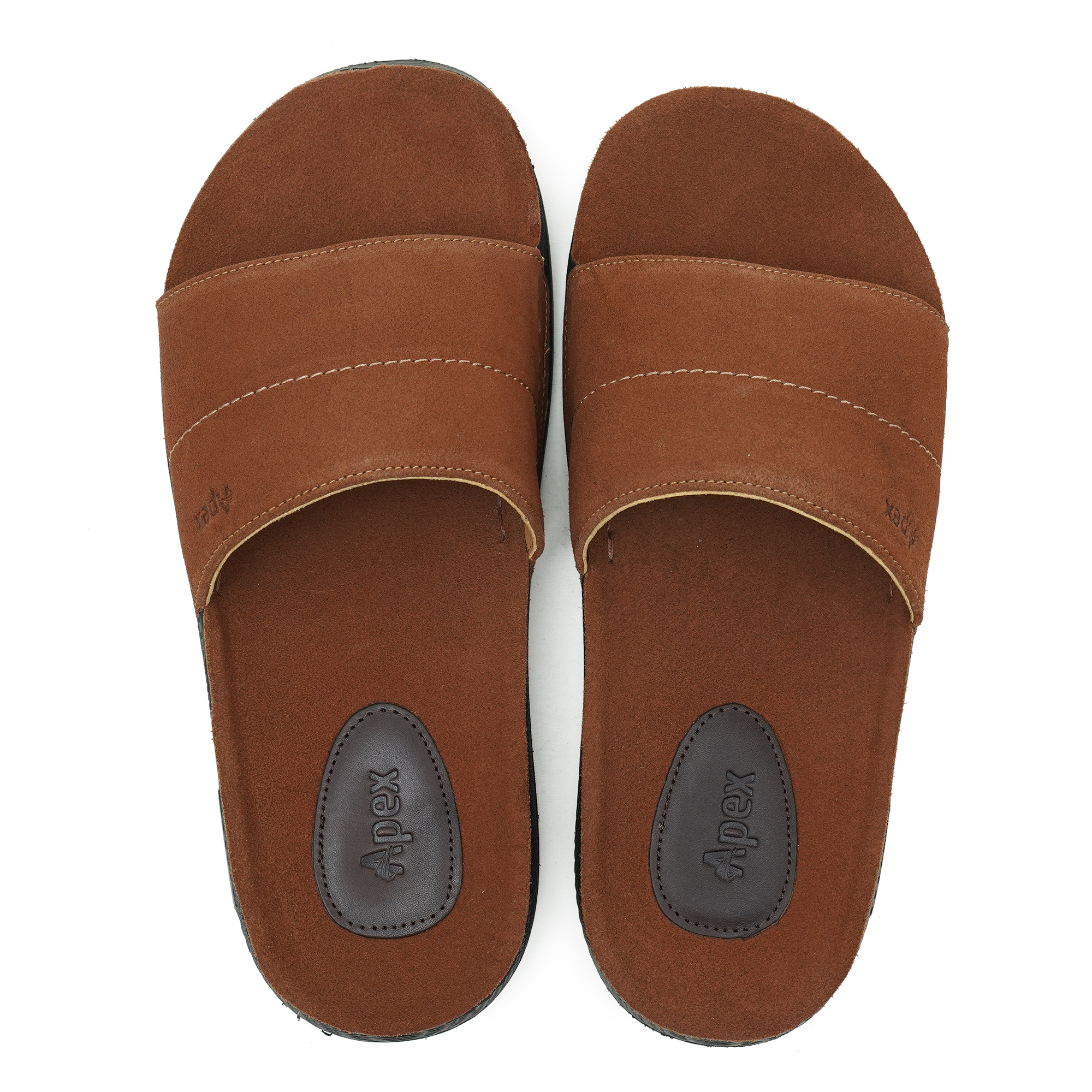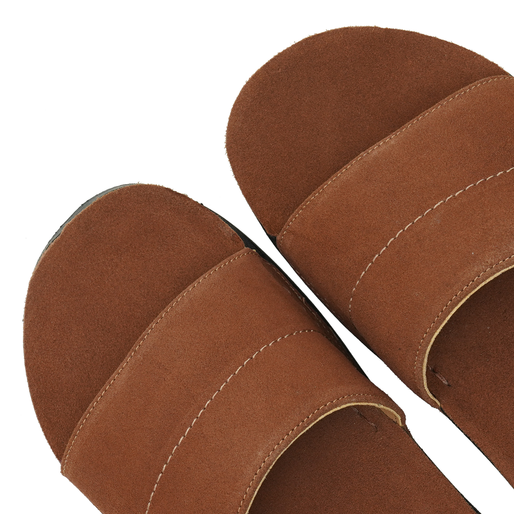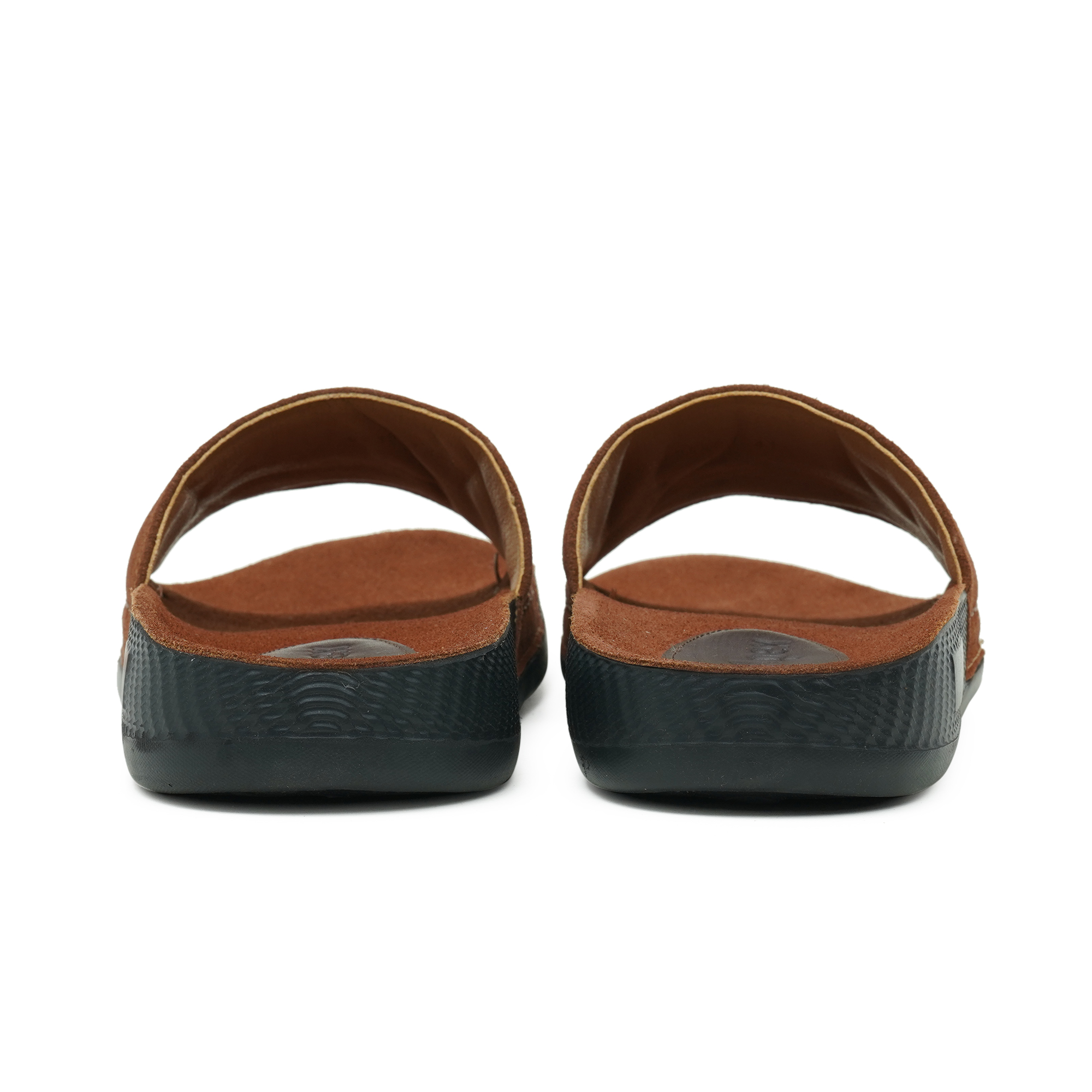 The Slipper in brown is the ultimate choice for the man who seeks a refined yet relaxed aesthetic for his regular daily routine. These slippers are crafted from premium leather featuring a rich suede texture that provides a soft touch and a sophisticated, matte appearance. The open-toe design ensures maximum breathability, keeping your feet cool and comfortable throughout the day. With a convenient slip-on architecture, these slippers offer an effortless experience for indoor or light outdoor use, combining a classic masculine style with the enduring quality required for consistent, everyday wear.