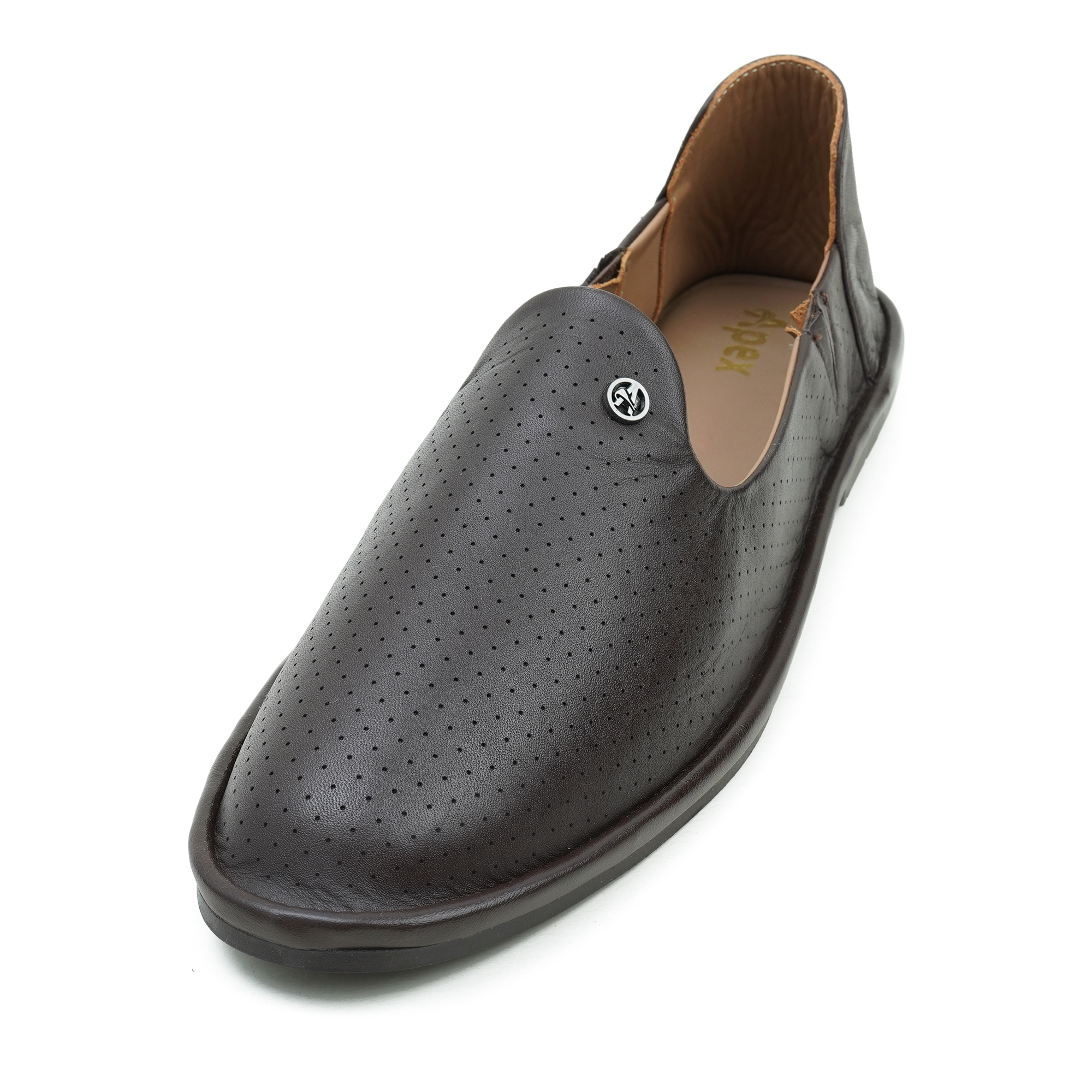 Refine your everyday style with the Apex Men’s Brown Leather Mojari Design, crafted for comfort and timeless elegance. Featuring premium perforated leather for enhanced breathability, this slip-on offers a sleek, traditional-inspired look with modern appeal. The soft inner lining ensures lasting comfort, while the durable TPR sole provides reliable grip and flexibility. Perfect for casual outings, festive occasions, or daily wear, this Apex men’s leather shoe blends sophistication with all-day ease.