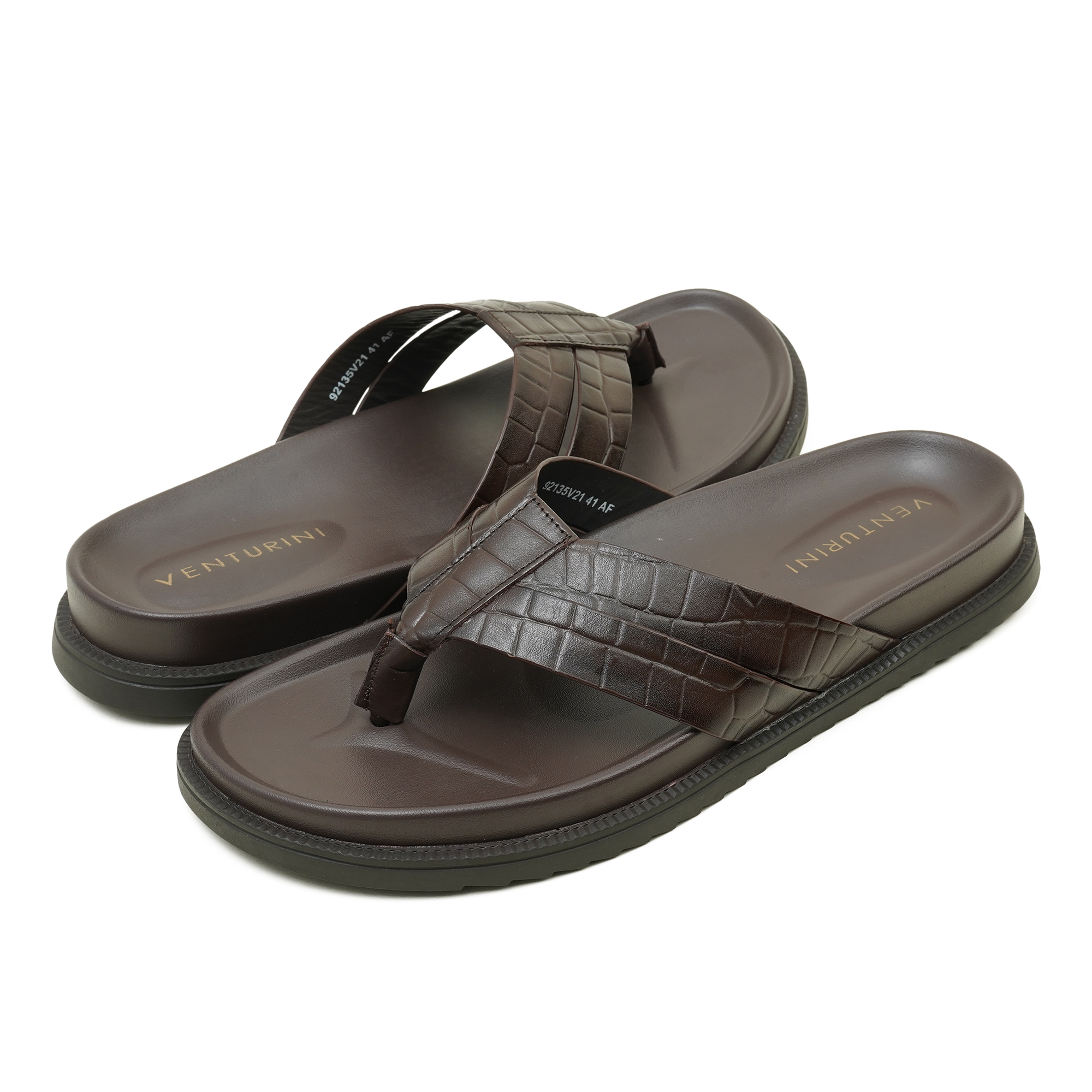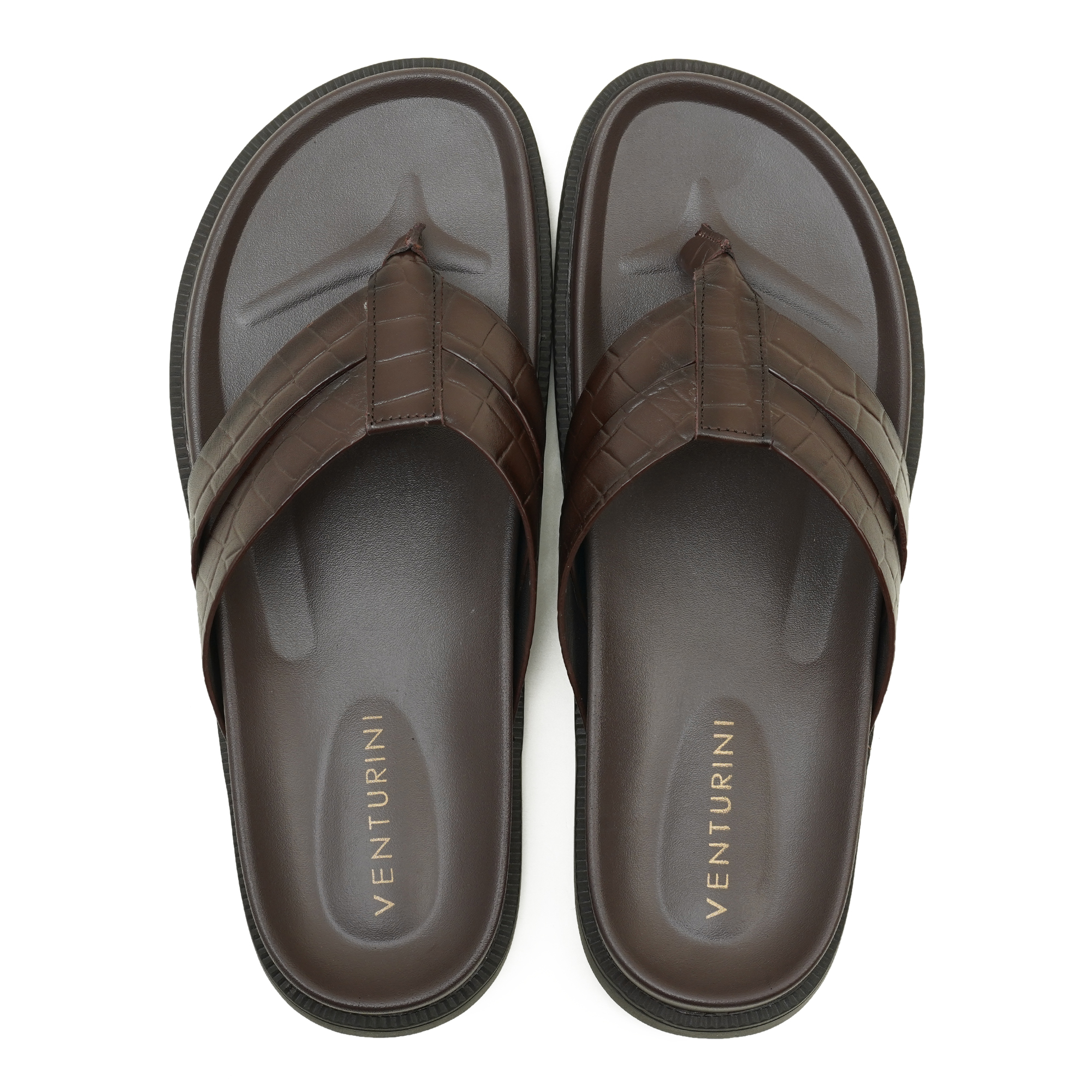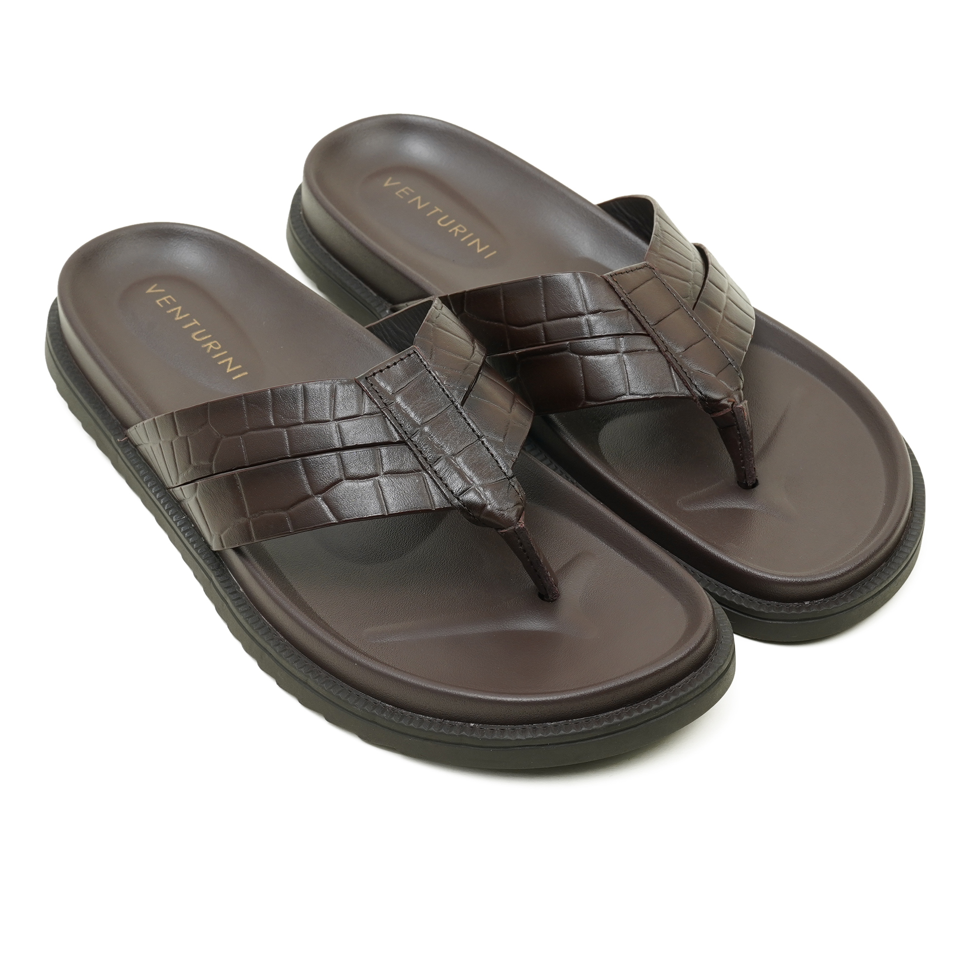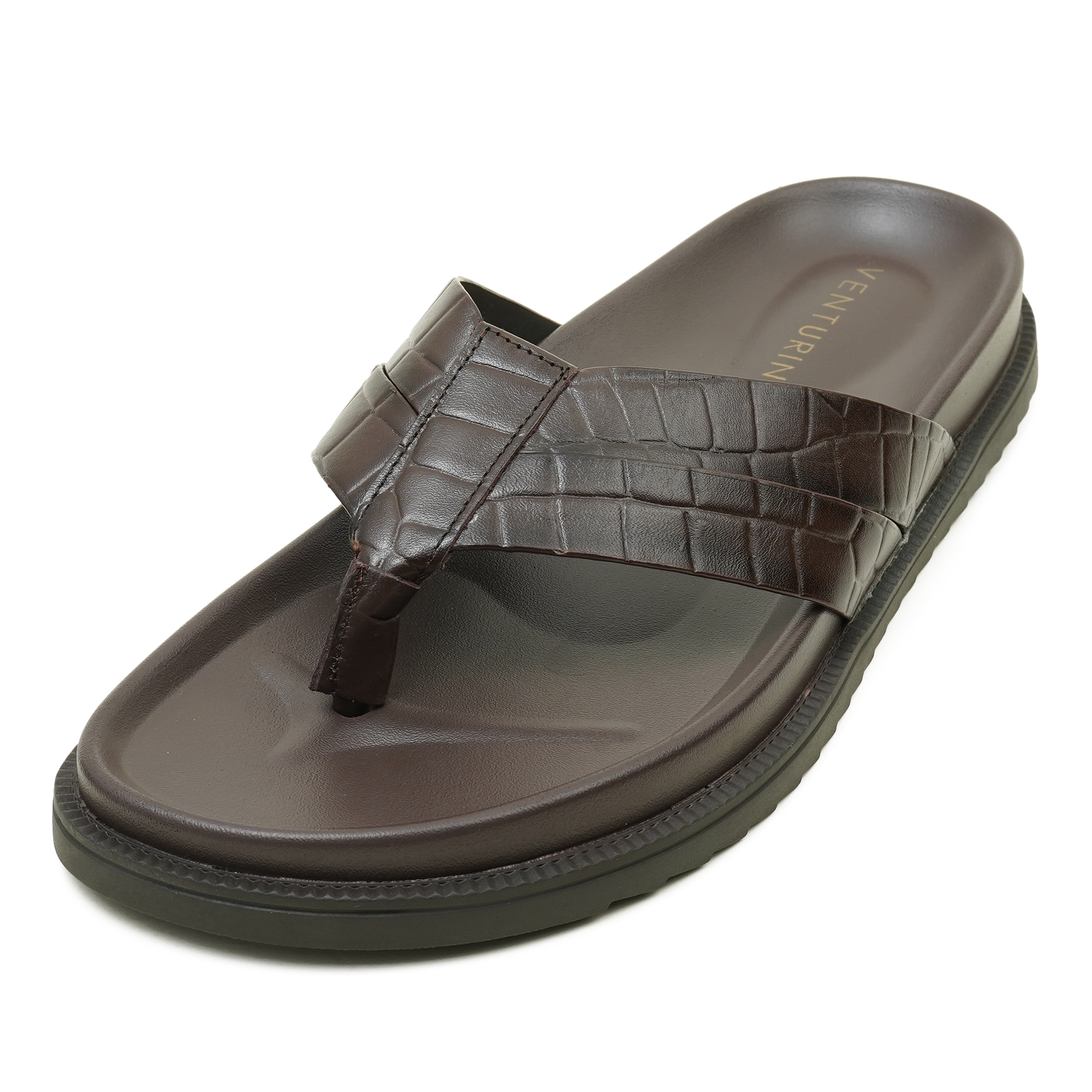 Elevate your everyday style with the Venturini men’s luxury leather sandal, crafted for refined comfort and timeless sophistication. Designed with a premium crocodile-textured leather strap, this elegant brown thong sandal reflects exceptional craftsmanship and understated luxury. The cushioned, contoured footbed provides superior comfort for all-day wear, while the durable anti-slip sole ensures confident movement. Perfect for smart casual occasions, summer outings, or refined daily wear, this premium men’s sandal blends elegance, durability, and modern style true to Venturini’s legacy of luxury footwear.