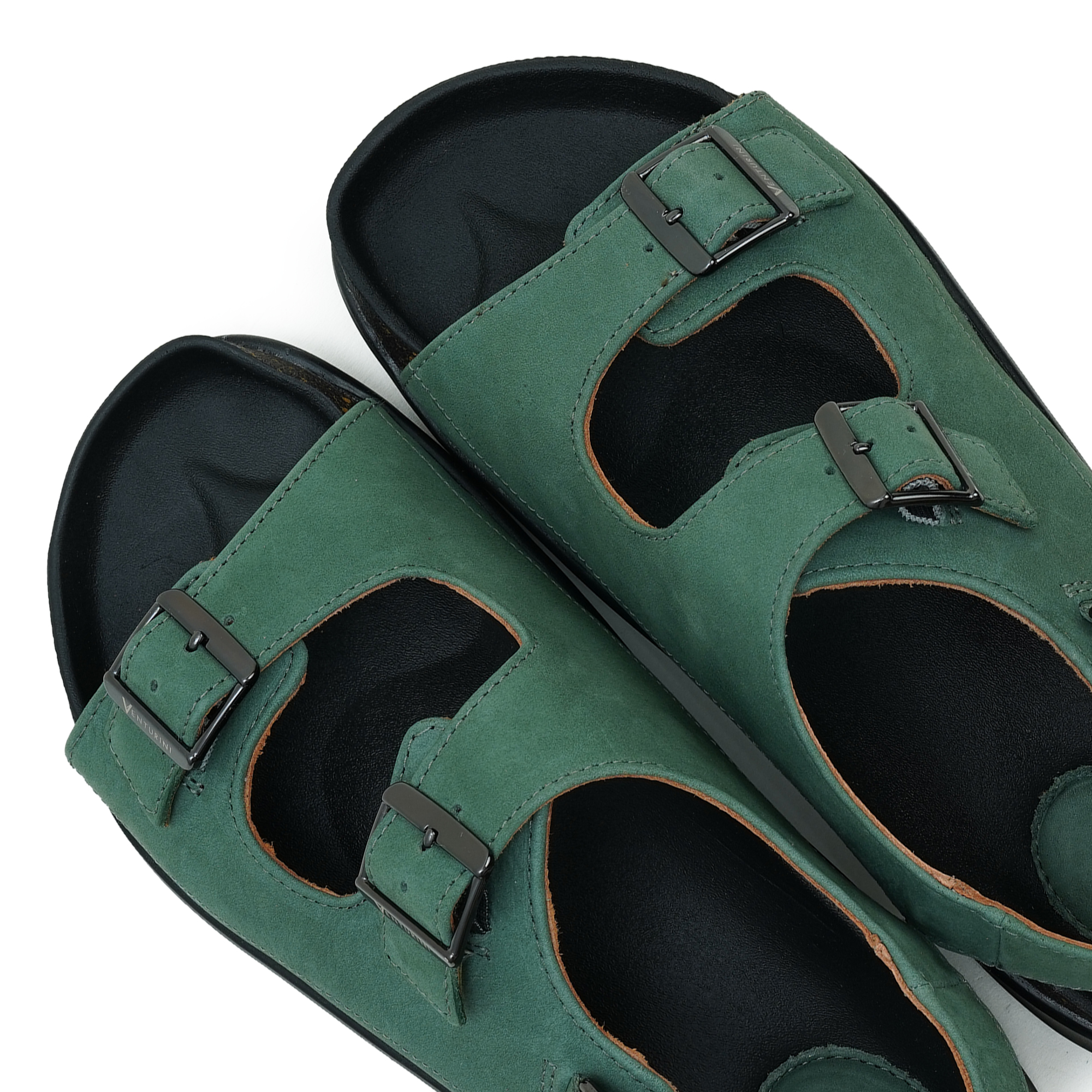Elevate your everyday ensemble with a statement of refined luxury. This olive leather sandal is a testament to Venturini’s exceptional craftsmanship and dedication to elegance. Meticulously constructed from the finest leather, it offers a velvety texture and rich depth of color that sets it apart. The structured silhouette with dual buckle accents enhances its modern character, while the contoured PU footbed ensures remarkable comfort. Engineered for durability and effortless sophistication, this sandal delivers unrivalled luxury for the discerning gentleman who appreciates premium quality and timeless design.