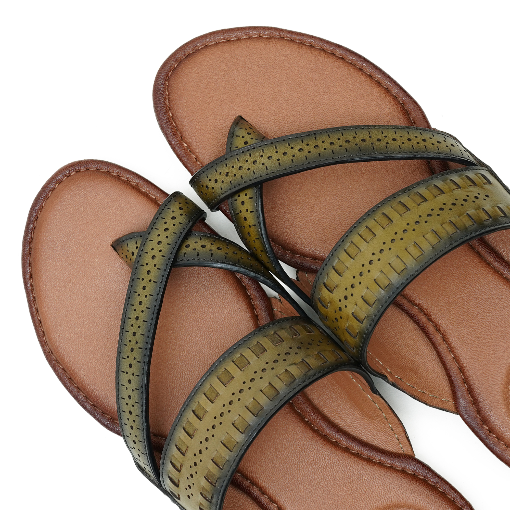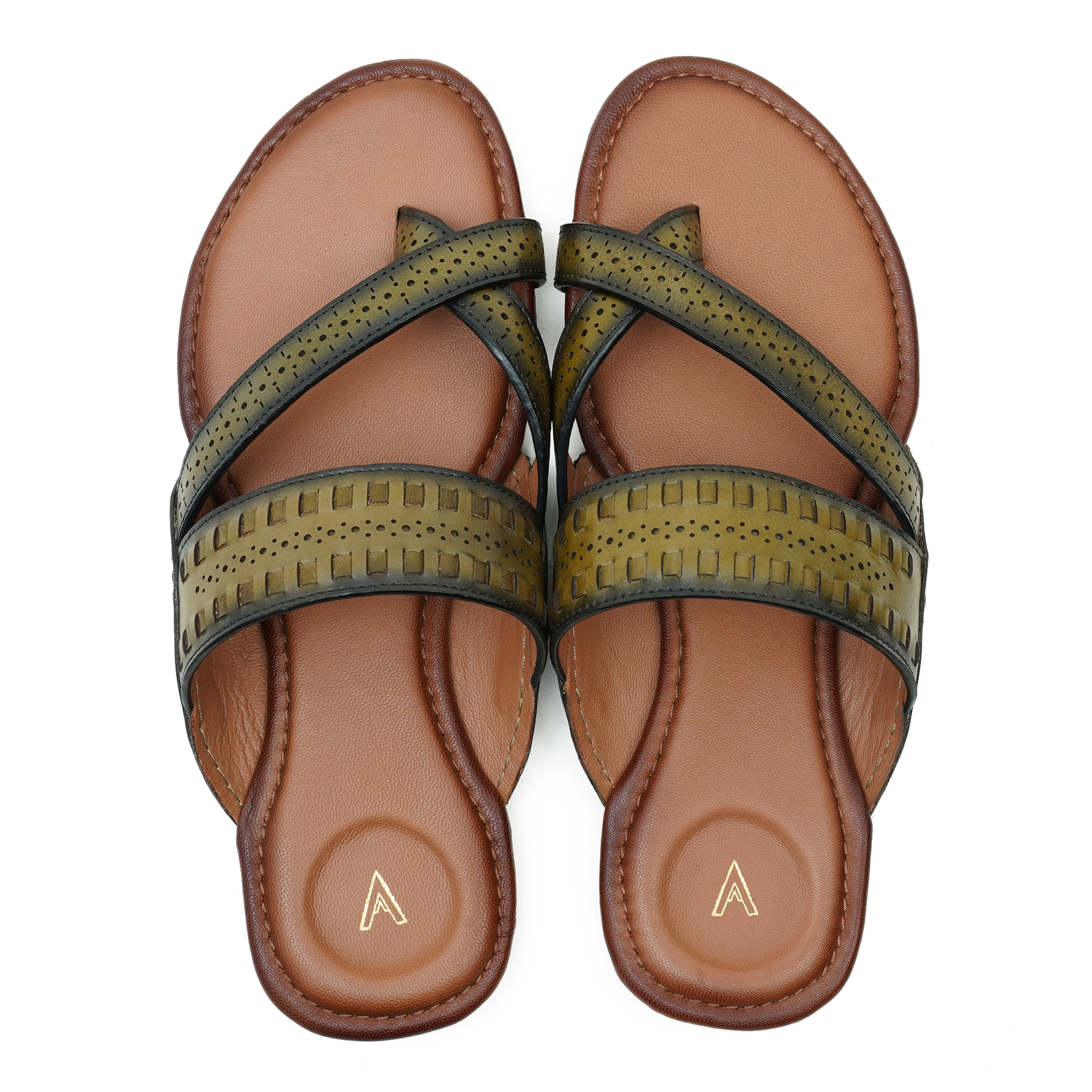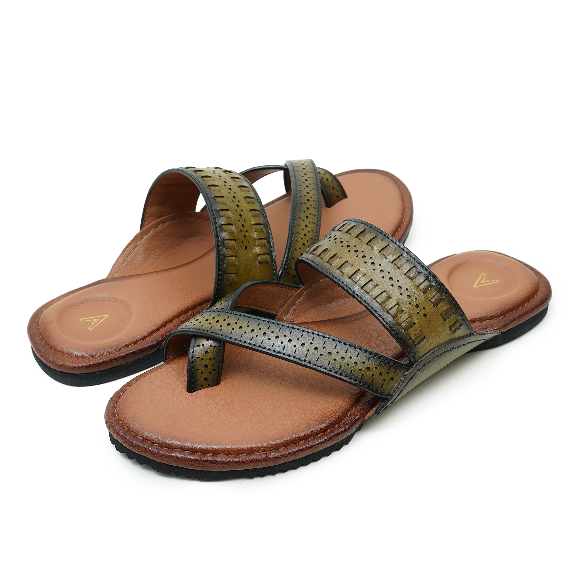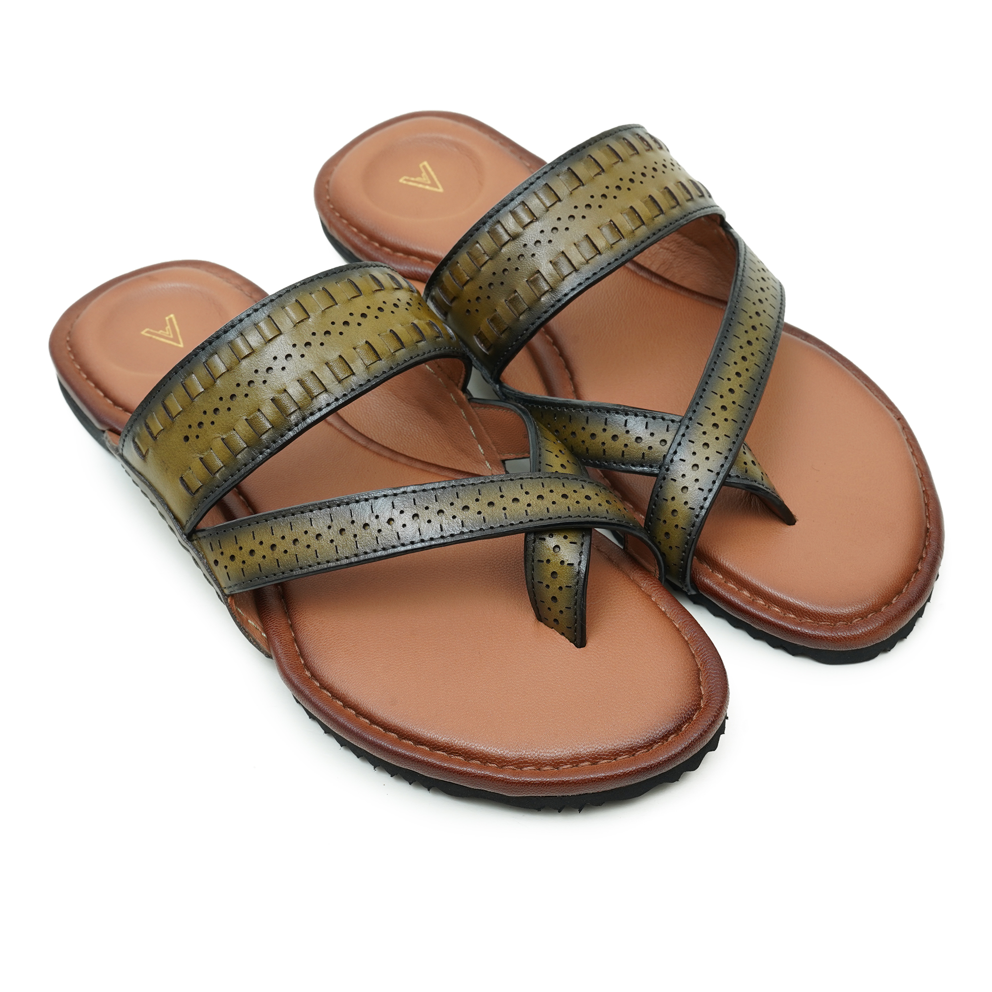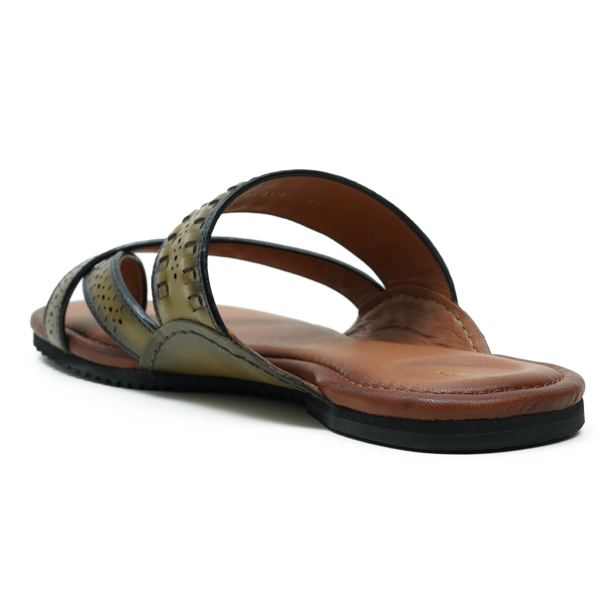 The Venturini Men’s Olive Leather Sandal combines premium craftsmanship with an elegant casual style. Made from high-quality leather, this sandal offers a refined and sophisticated look suitable for everyday wear. The stylish cross-strap design with subtle perforated detailing enhances breathability while adding a touch of modern elegance. Its cushioned footbed provides superior comfort for long hours, while the durable rubber outsole ensures stability and dependable traction. Perfect for men who appreciate premium comfort with a polished, fashionable appearance.
